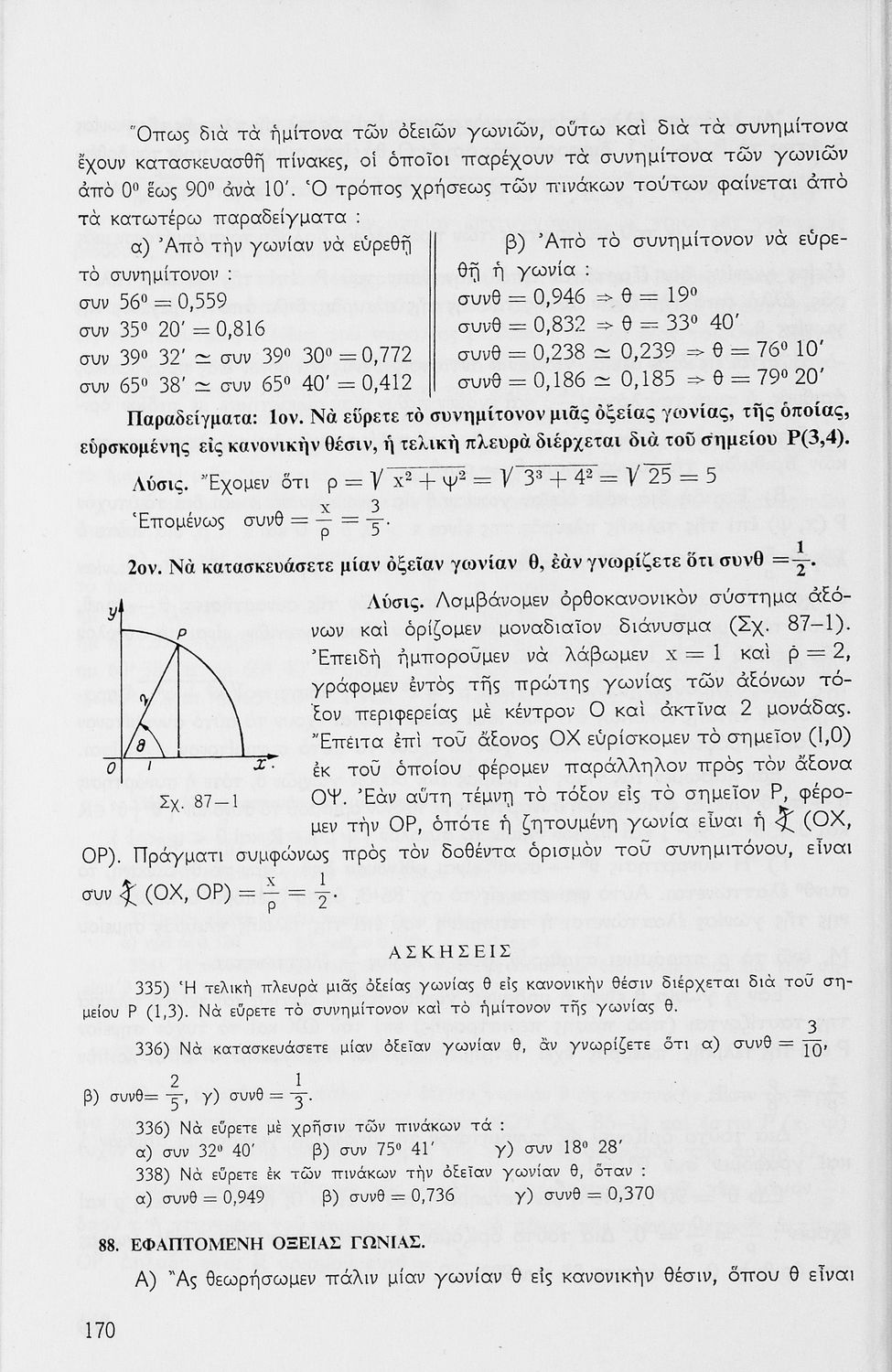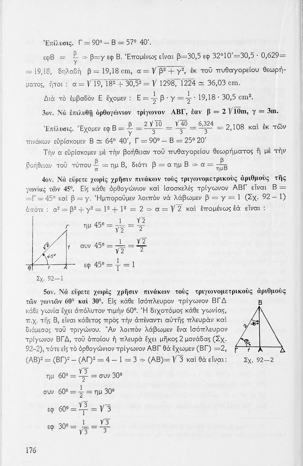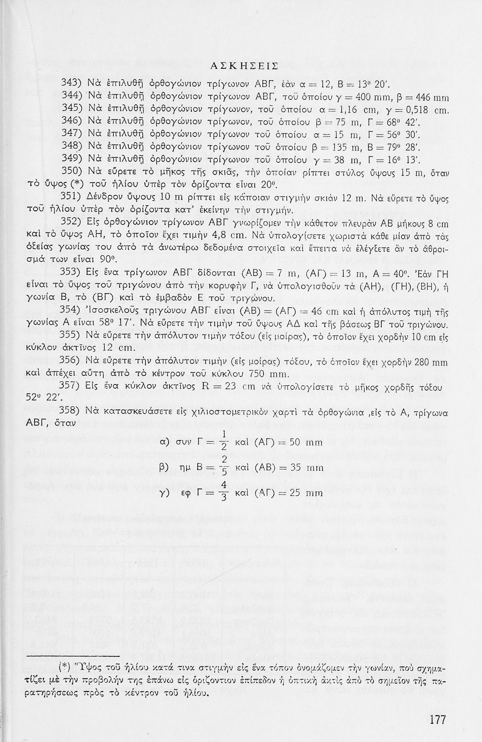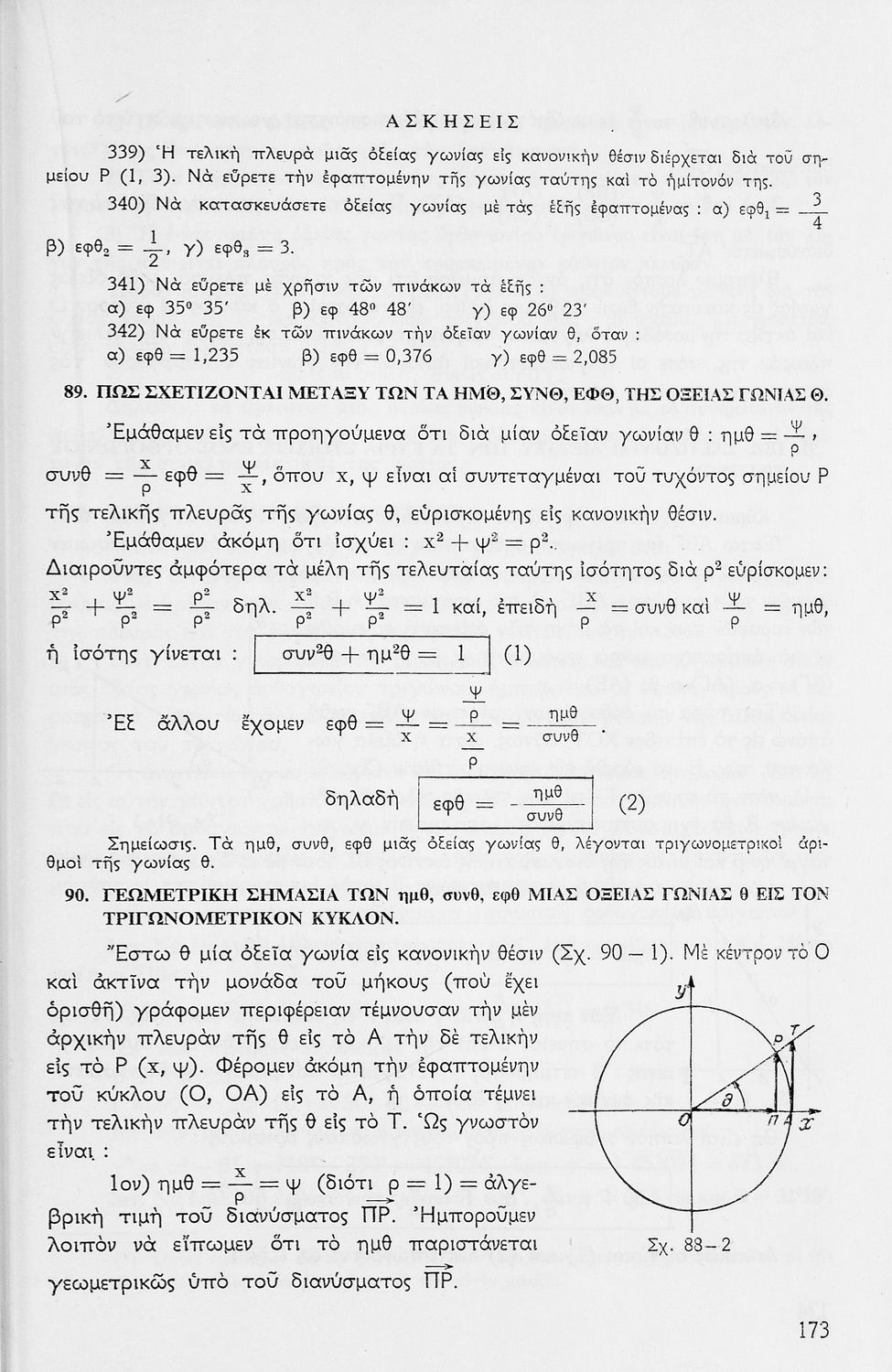 Σχολικό εγχειρίδιο Μαθηματικών για την Ε΄ Γυμνασίου, χωρισμένο σε προβλήματα, εφαρμογές και ασκήσεις, που εστιάζει στην Τριγωνομετρία. Φέρει το σύμβολο της δικτατορίας.