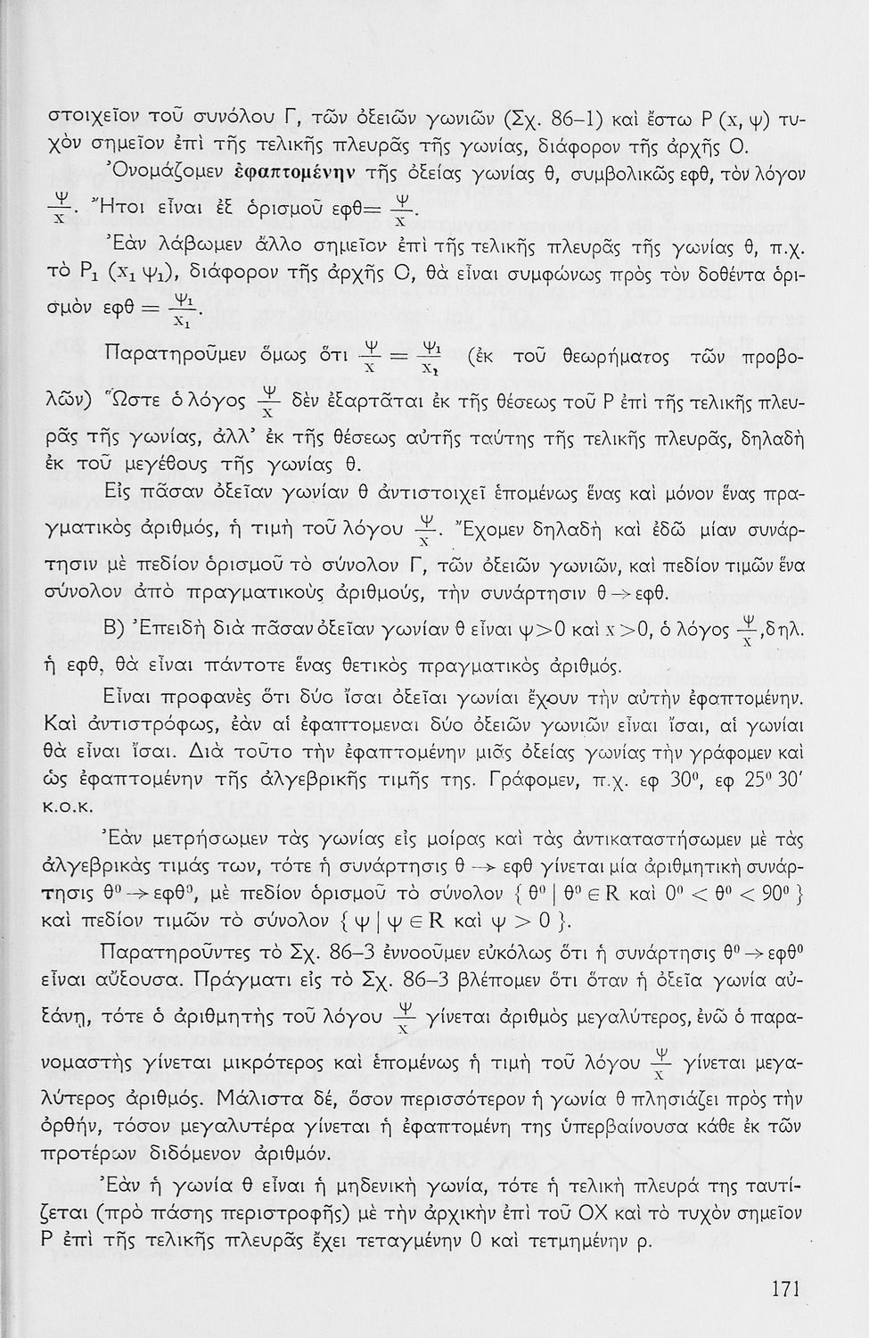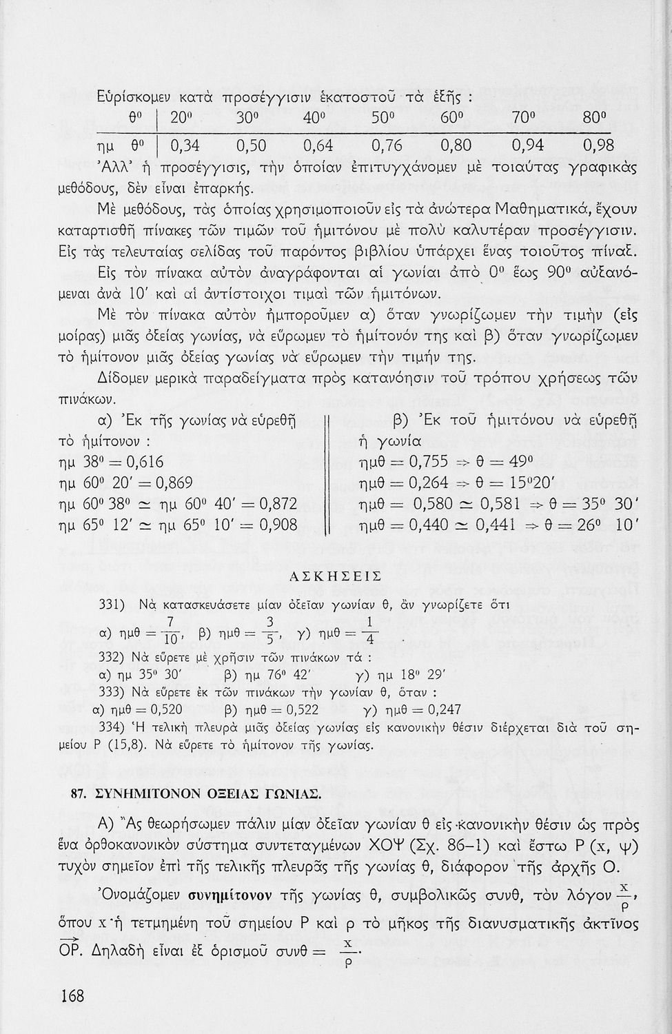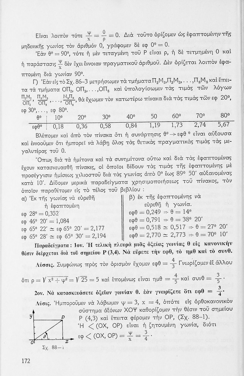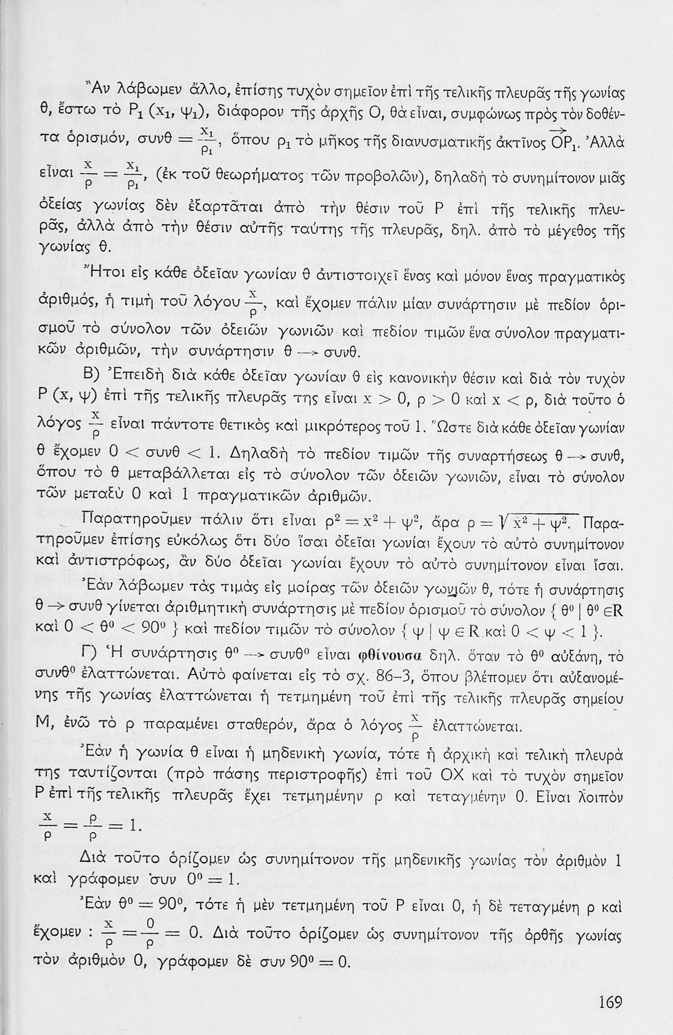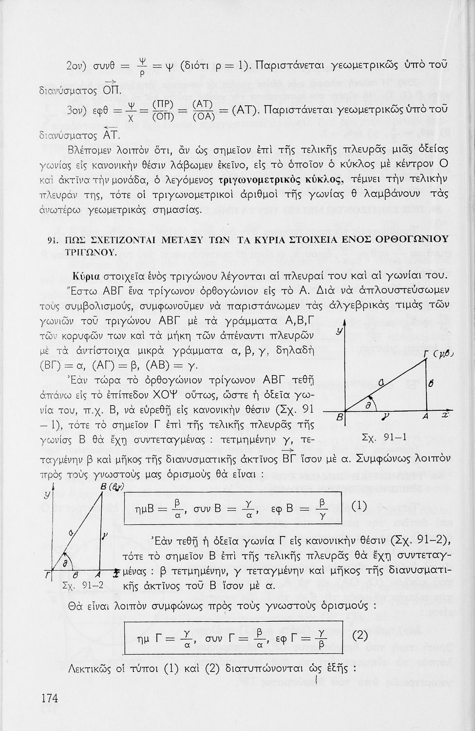 Σχολικό εγχειρίδιο Μαθηματικών για την Ε΄ Γυμνασίου, χωρισμένο σε προβλήματα, εφαρμογές και ασκήσεις, που εστιάζει στην Τριγωνομετρία. Φέρει το σύμβολο της δικτατορίας.