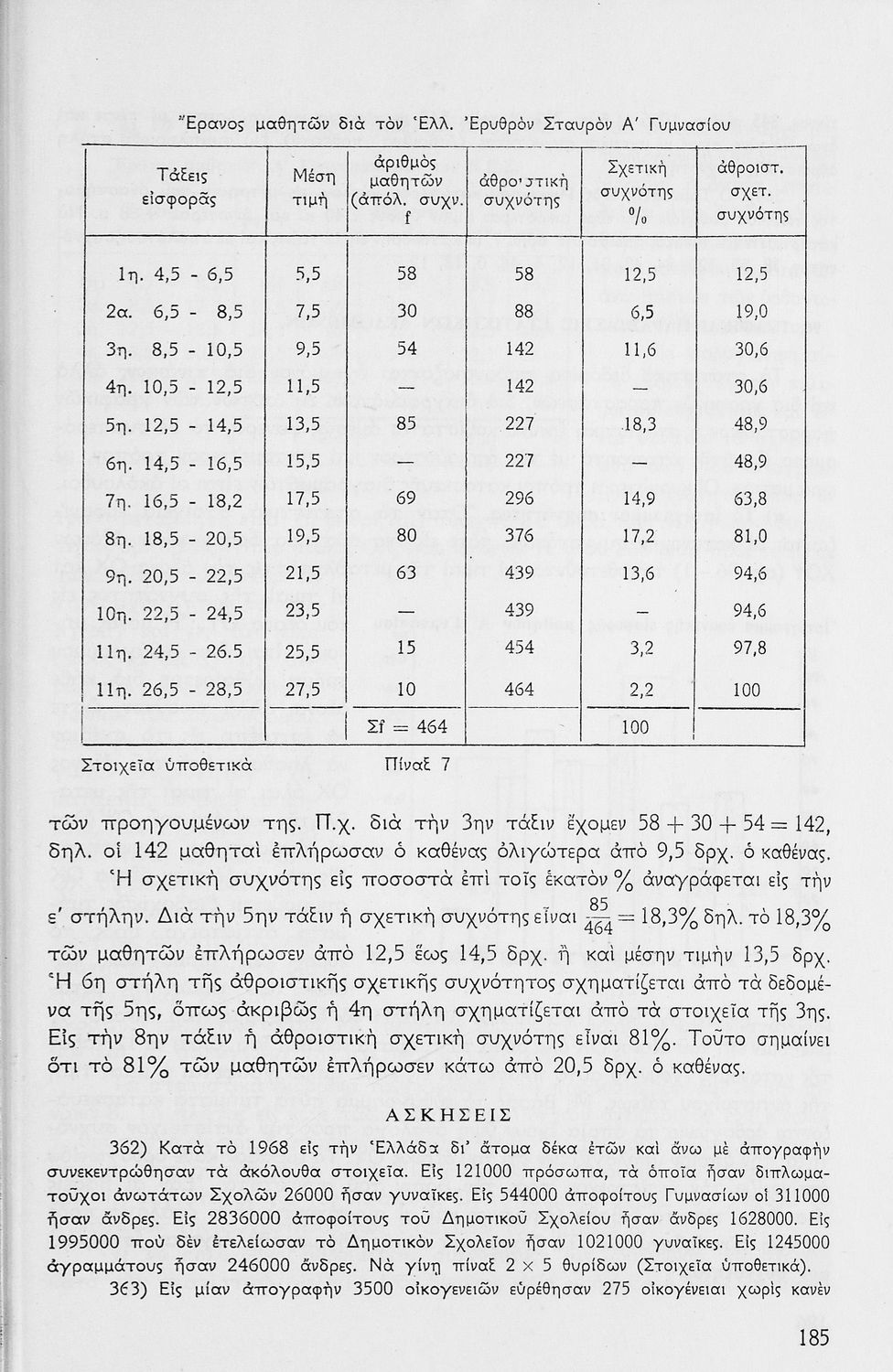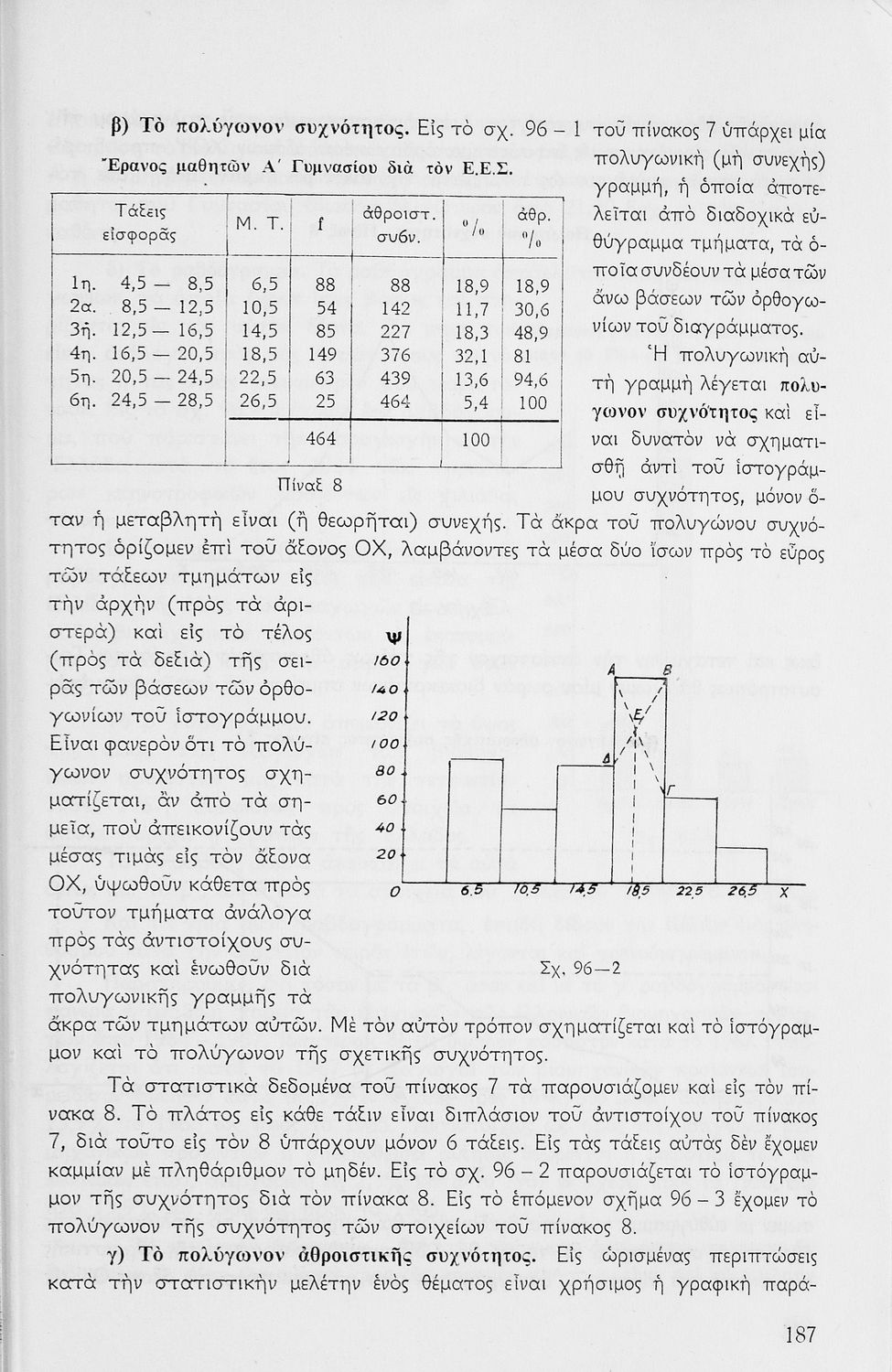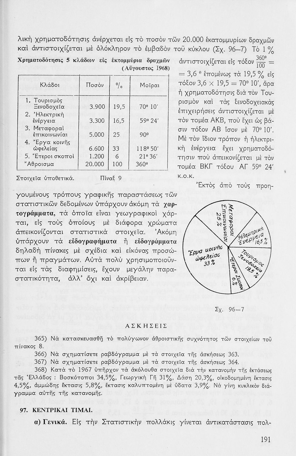 Σχολικό εγχειρίδιο Μαθηματικών για την Ε΄ Γυμνασίου, χωρισμένο σε προβλήματα, εφαρμογές και ασκήσεις, που εστιάζει στην Τριγωνομετρία. Φέρει το σύμβολο της δικτατορίας.