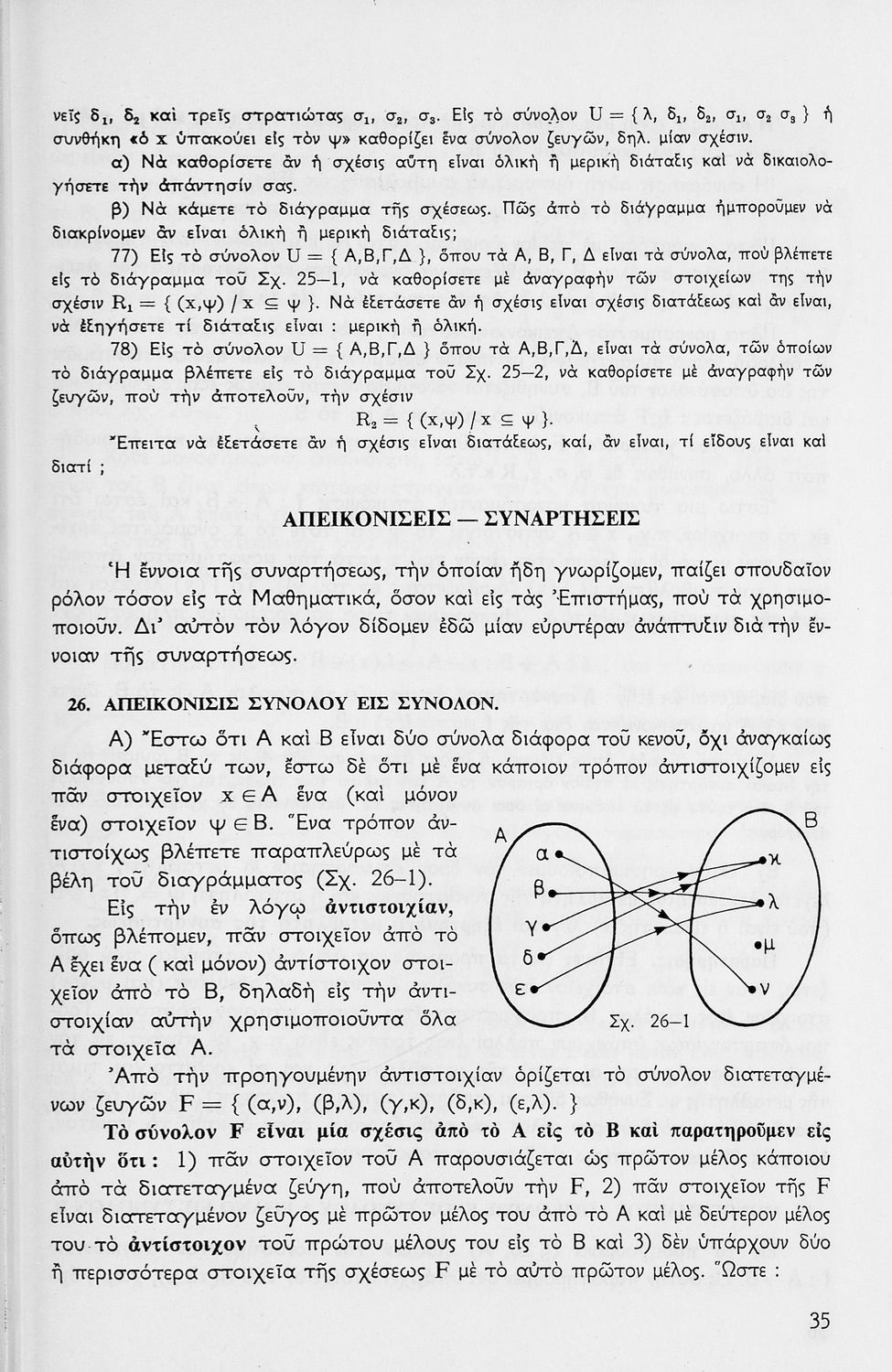 Σχολικό εγχειρίδιο μαθηματικών Γ΄ Γυμνασίου που περιλαμβάνει θεωρία, παραδείγματα και ασκήσεις. Φέρει το σύμβολο της δικτατορίας.