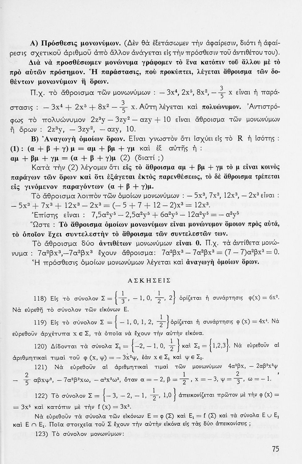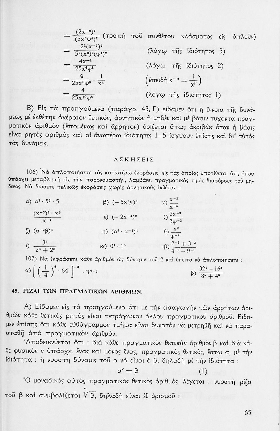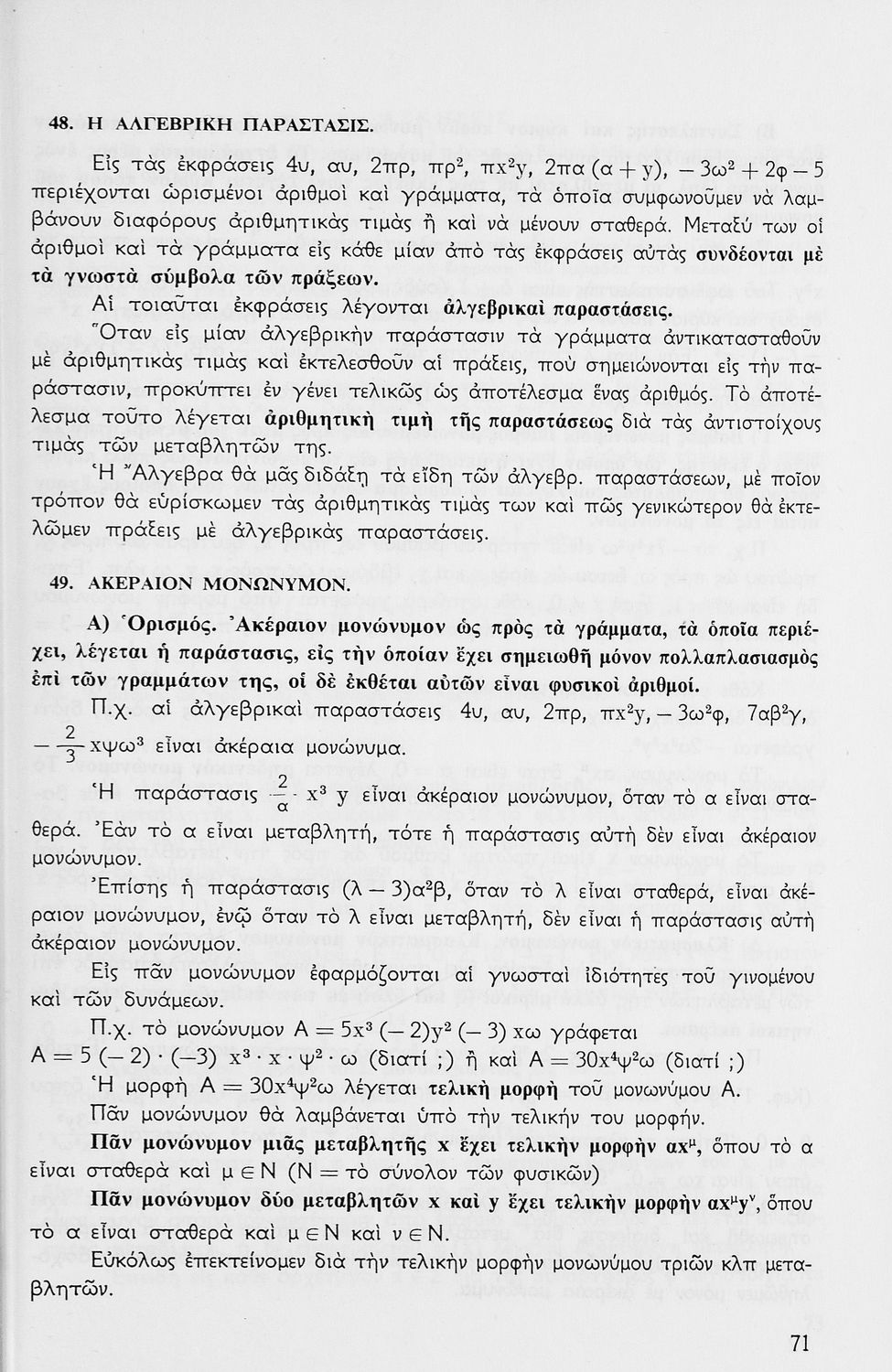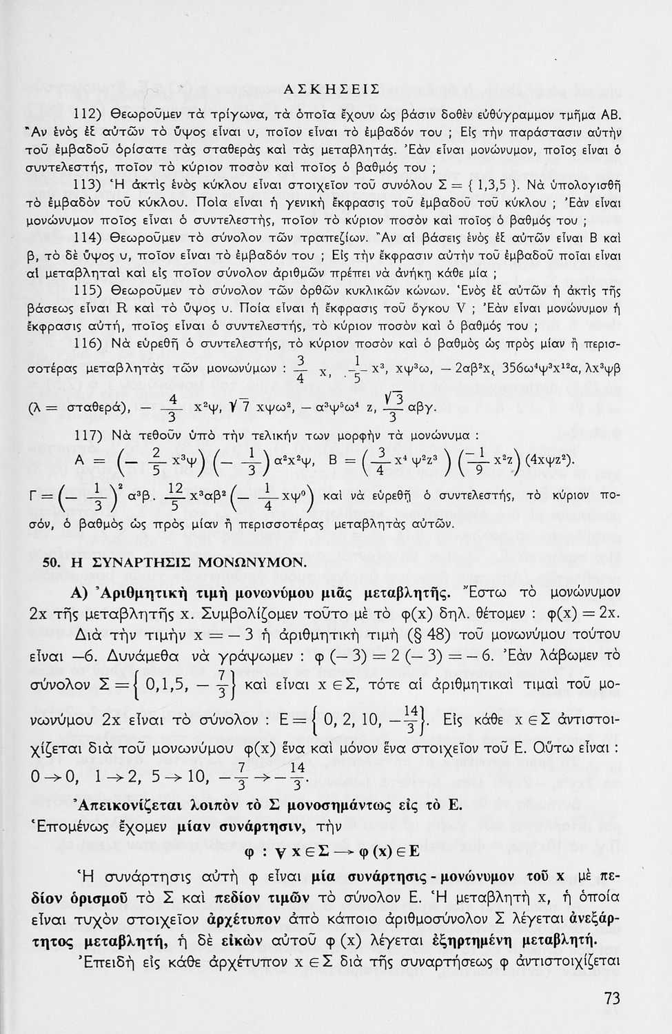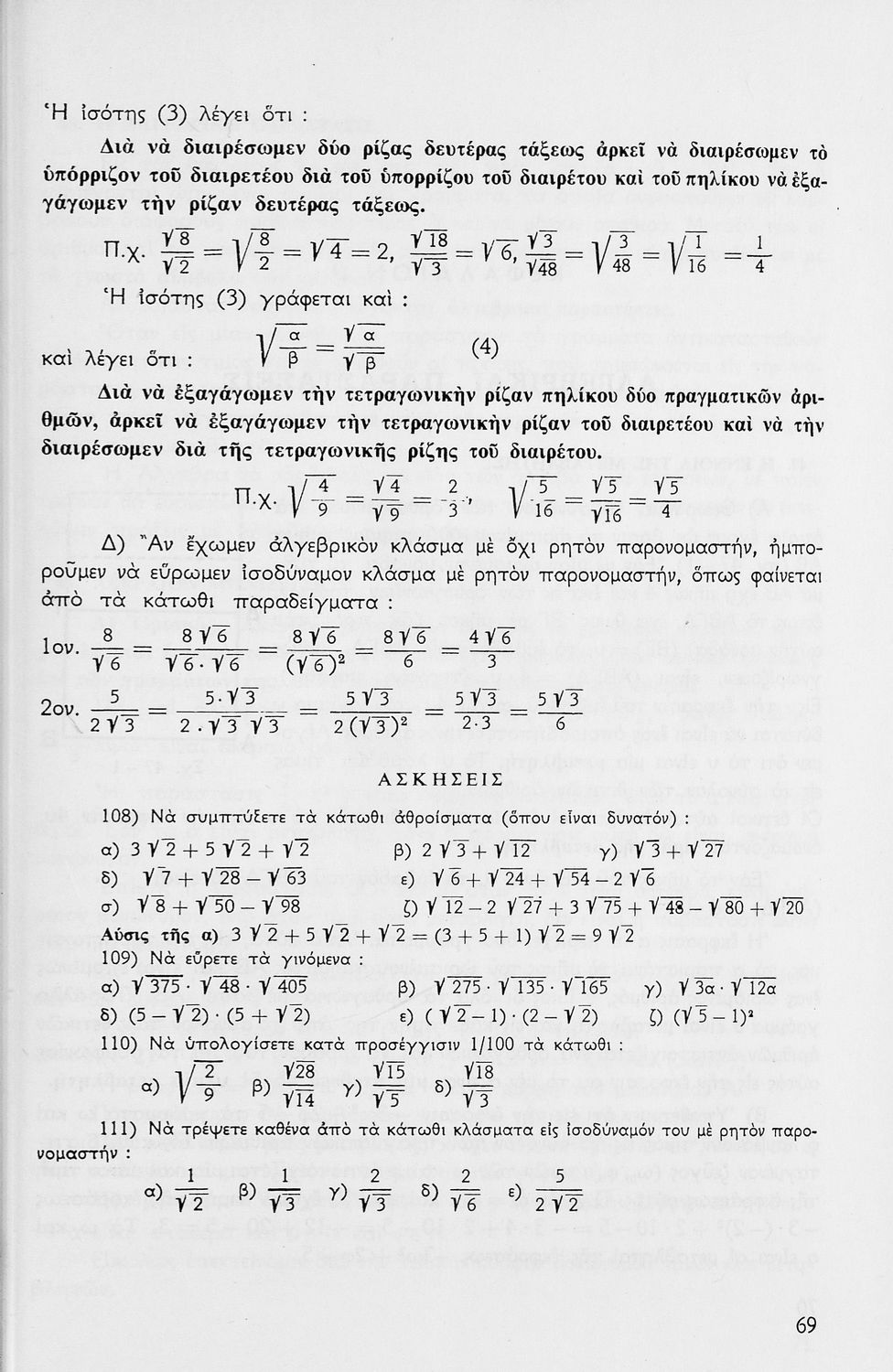 Σχολικό εγχειρίδιο μαθηματικών Γ΄ Γυμνασίου που περιλαμβάνει θεωρία, παραδείγματα και ασκήσεις. Φέρει το σύμβολο της δικτατορίας.