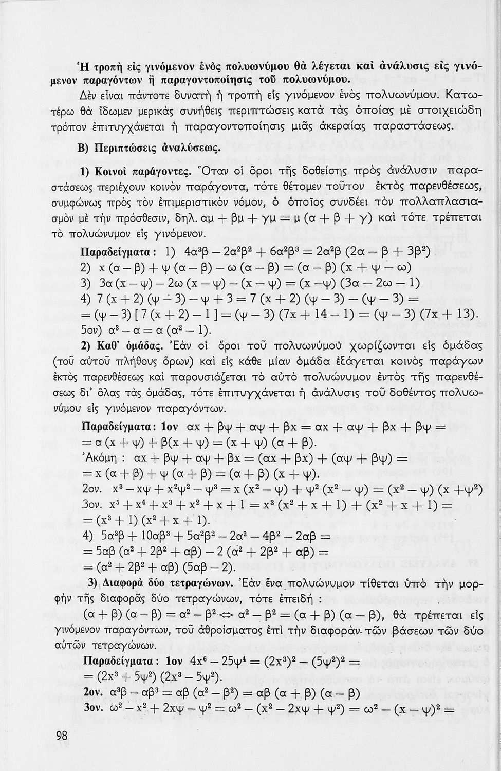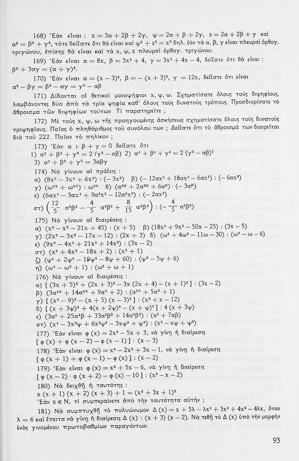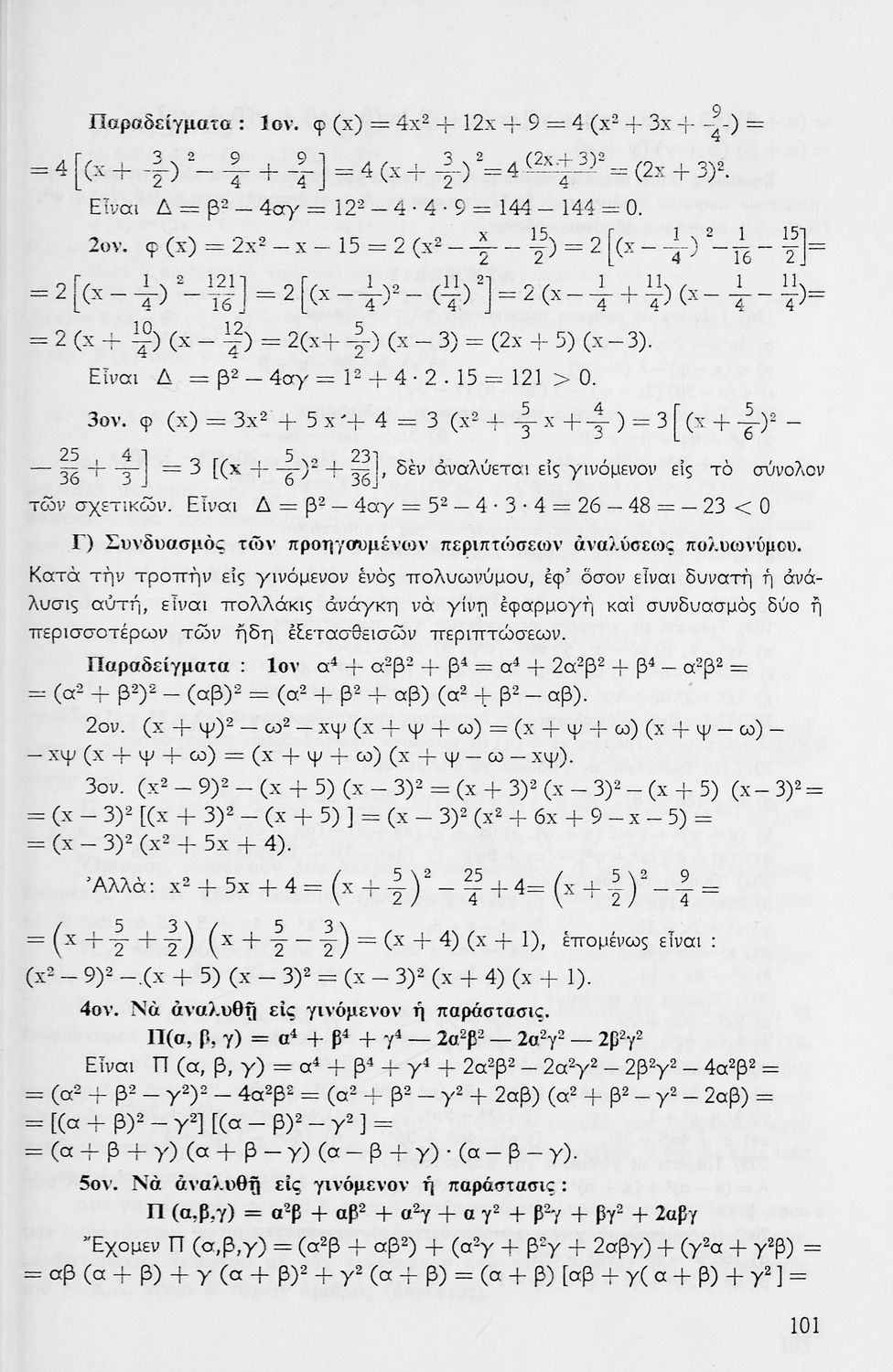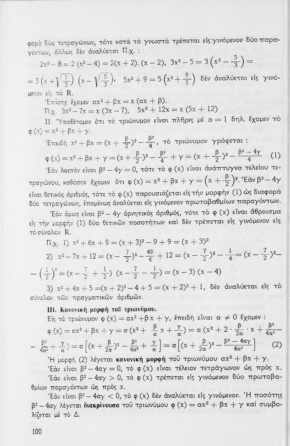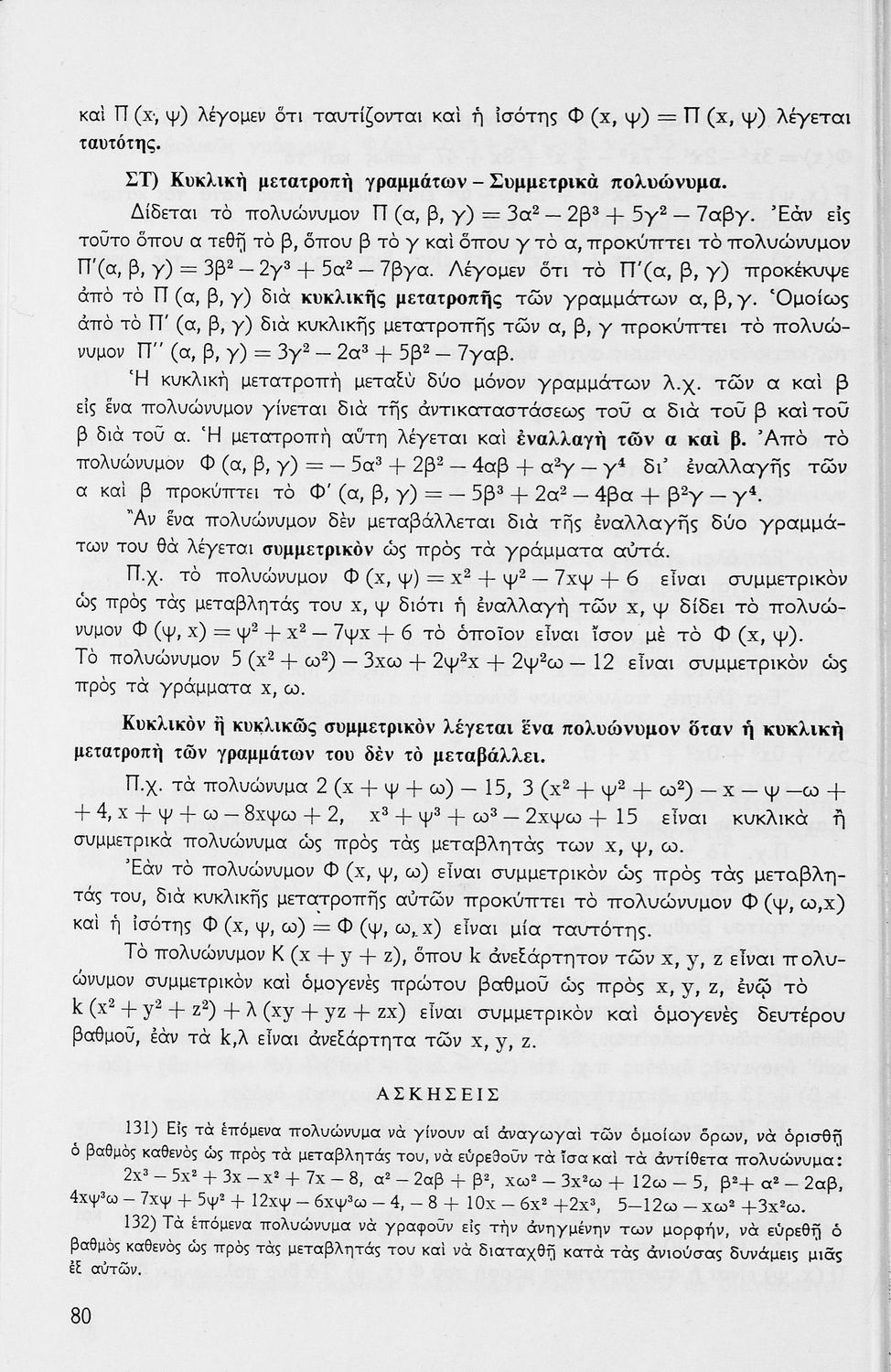 Σχολικό εγχειρίδιο μαθηματικών Γ΄ Γυμνασίου που περιλαμβάνει θεωρία, παραδείγματα και ασκήσεις. Φέρει το σύμβολο της δικτατορίας.