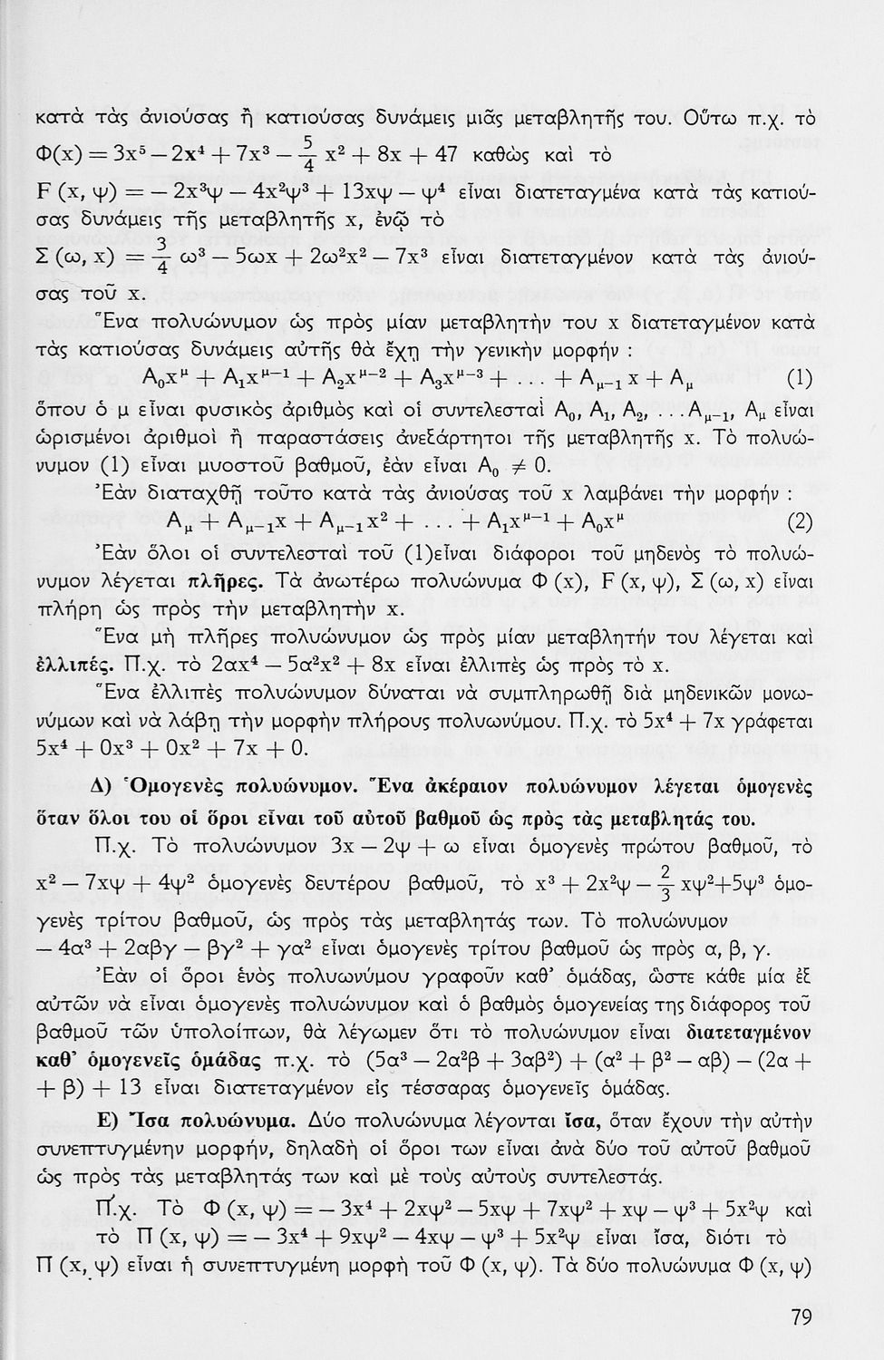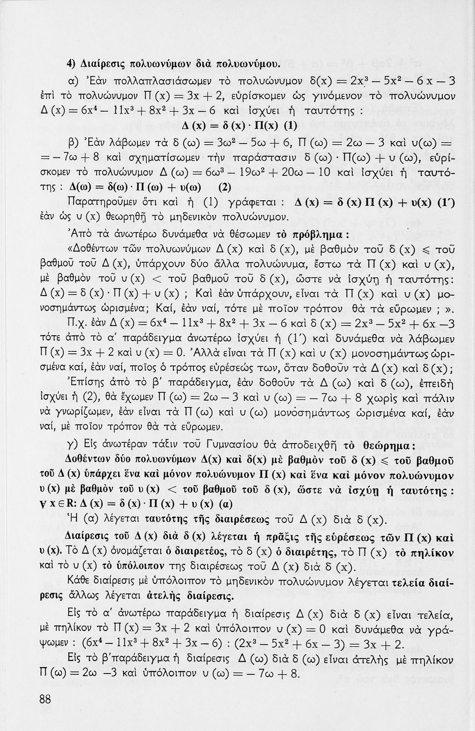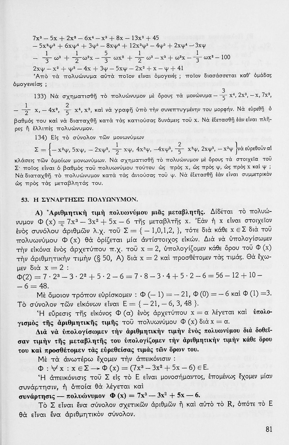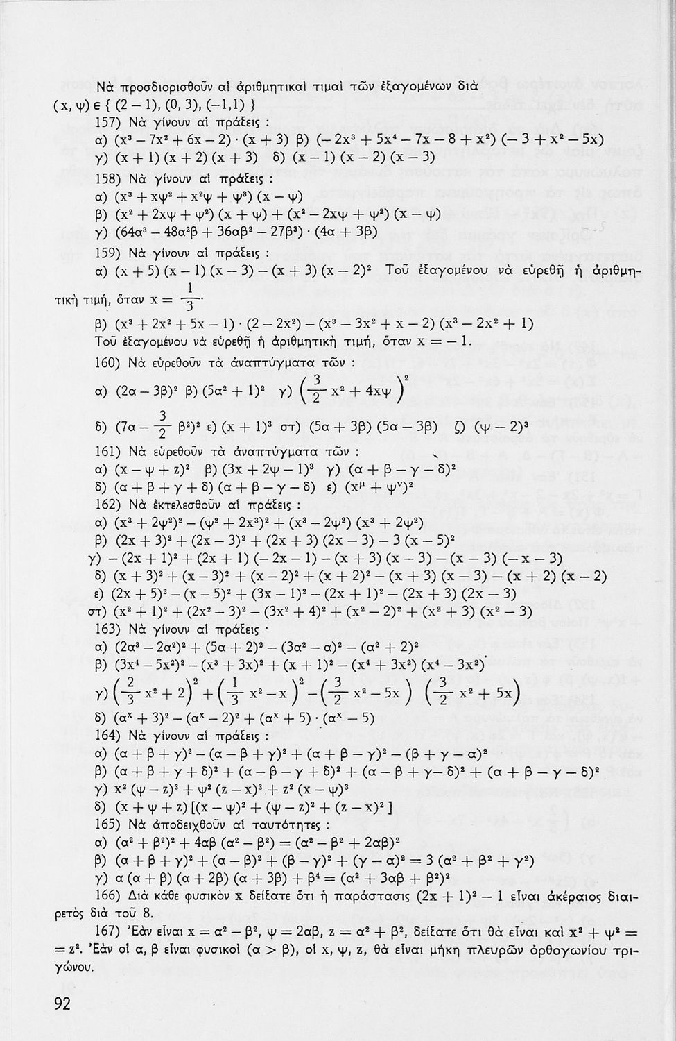Σχολικό εγχειρίδιο μαθηματικών Γ΄ Γυμνασίου που περιλαμβάνει θεωρία, παραδείγματα και ασκήσεις. Φέρει το σύμβολο της δικτατορίας.