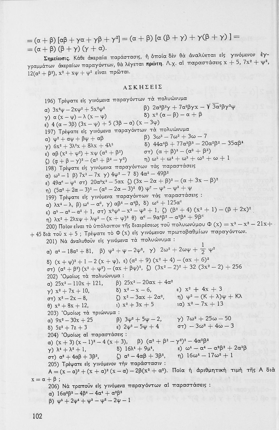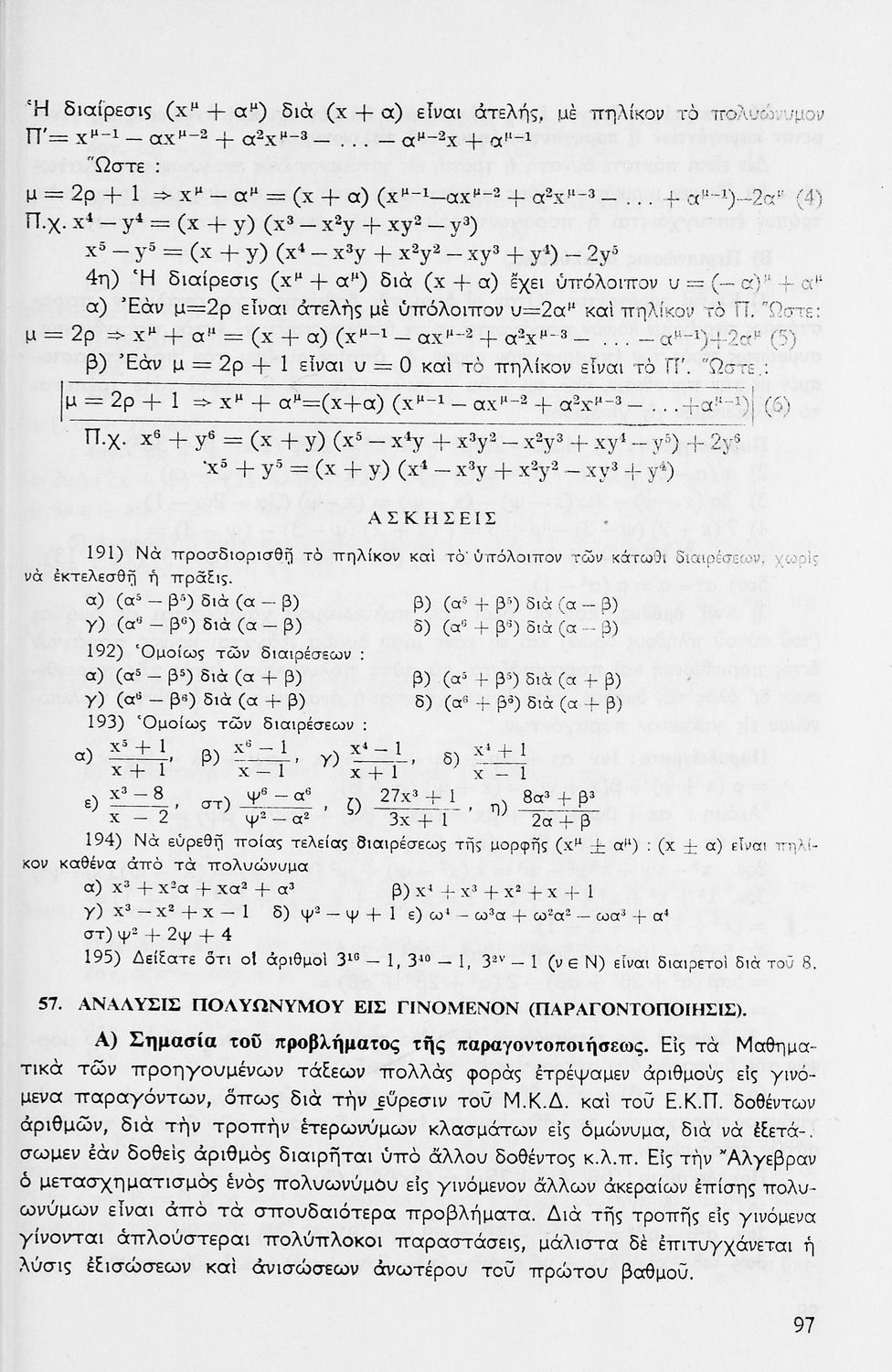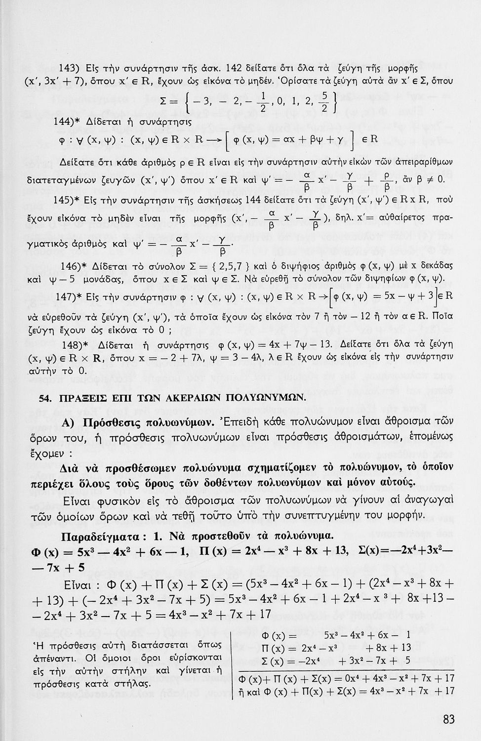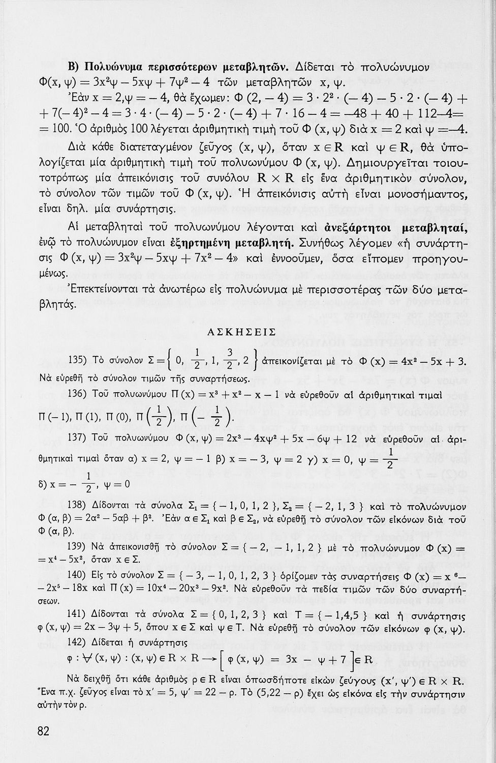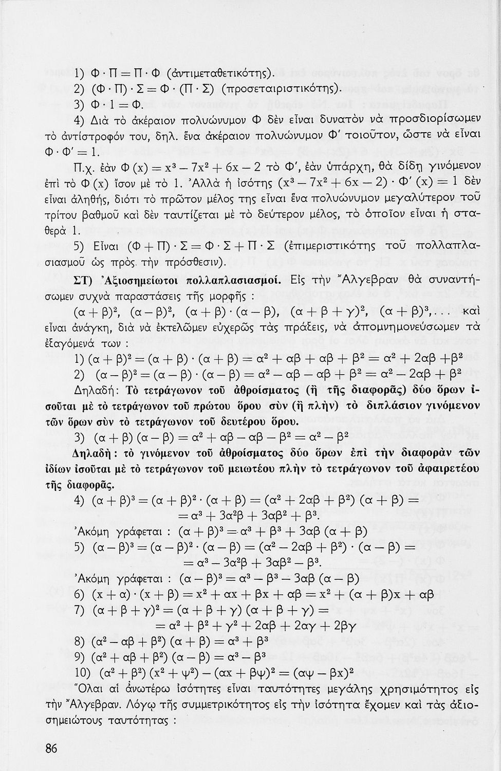 Σχολικό εγχειρίδιο μαθηματικών Γ΄ Γυμνασίου που περιλαμβάνει θεωρία, παραδείγματα και ασκήσεις. Φέρει το σύμβολο της δικτατορίας.