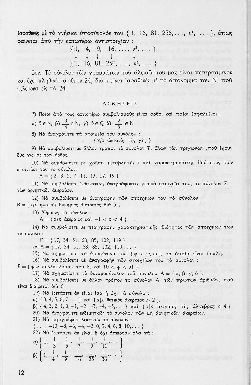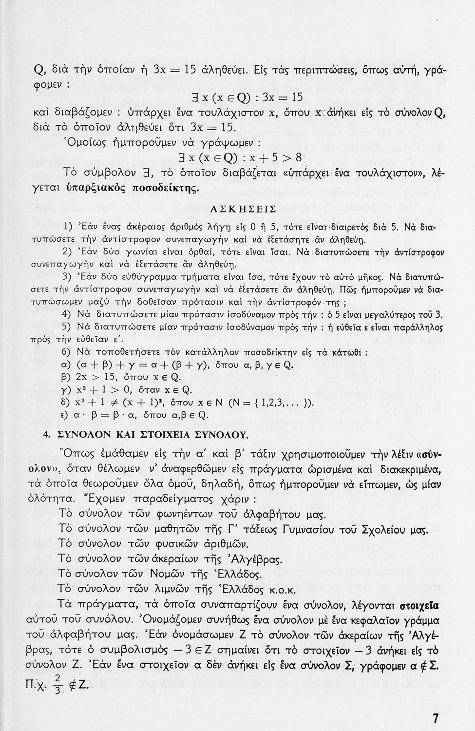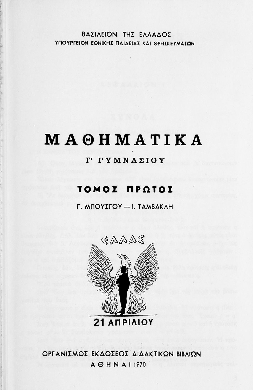 Σχολικό εγχειρίδιο Μαθηματικών Γ΄ Γυμνασίου που περιλαμβάνει θεωρία, παραδείγματα και ασκήσεις. Φέρει το σύμβολο της δικτατορίας.