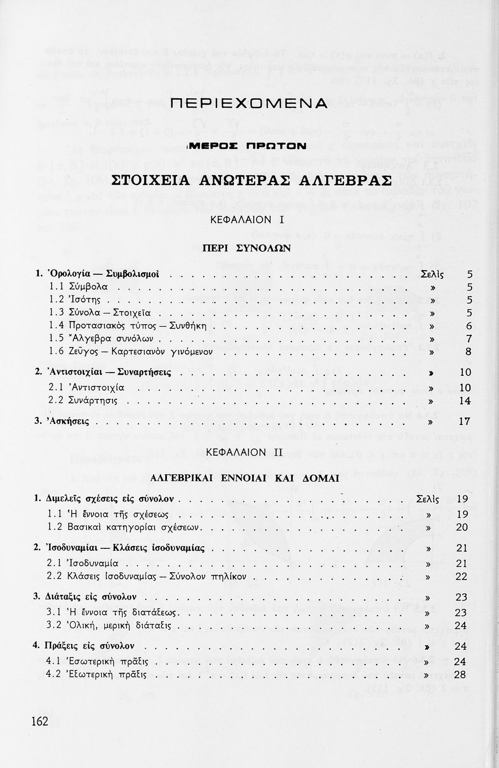 Σχολικό εγχειρίδιο Μαθηματικών ΣΤ΄ Γυμνασίου που είναι χωρισμένο σε θεωρήματα, παραδείγματα και ασκήσεις και περιλαμβάνει στοιχεία Ανώτερης Άλγεβρας και Μαθηματικής Ανάλυσης.