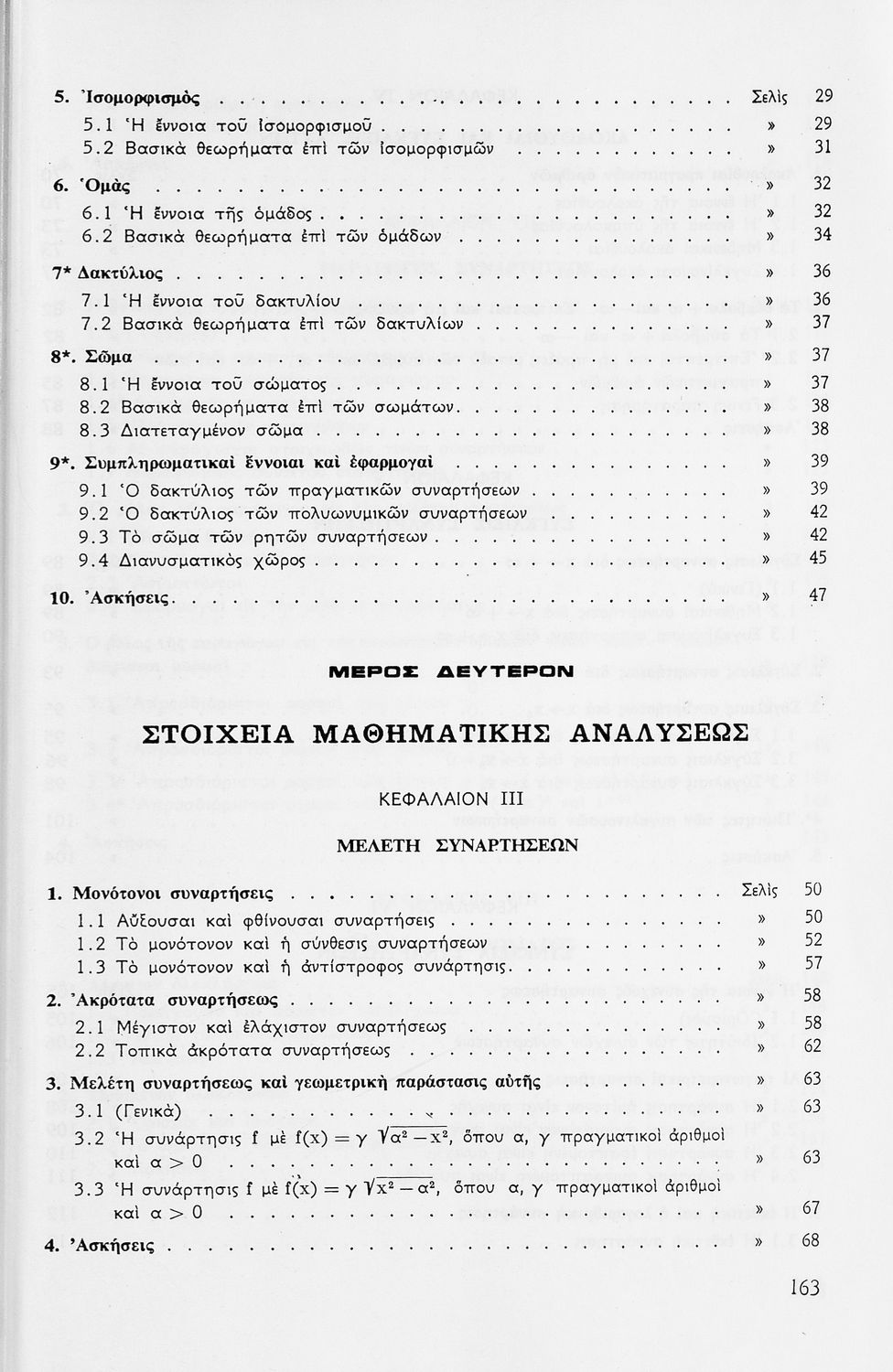 Σχολικό εγχειρίδιο Μαθηματικών Γυμνασίου που είναι χωρισμένο σε θεωρήματα, παραδείγματα και ασκήσεις και περιλαμβάνει στοιχεία Ανώτερης Άλγεβρας και Μαθηματικής Ανάλυσης.
