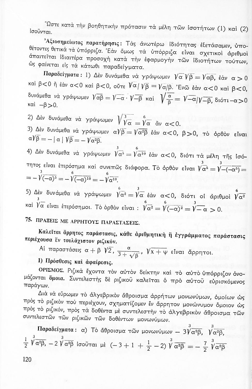 Σχολικό εγχειρίδιο Μαθηματικών ΣΤ΄ Γυμνασίου που είναι χωρισμένο σε θεωρήματα, παραδείγματα και ασκήσεις και περιλαμβάνει στοιχεία Ανώτερης Άλγεβρας και Μαθηματικής Ανάλυσης.
