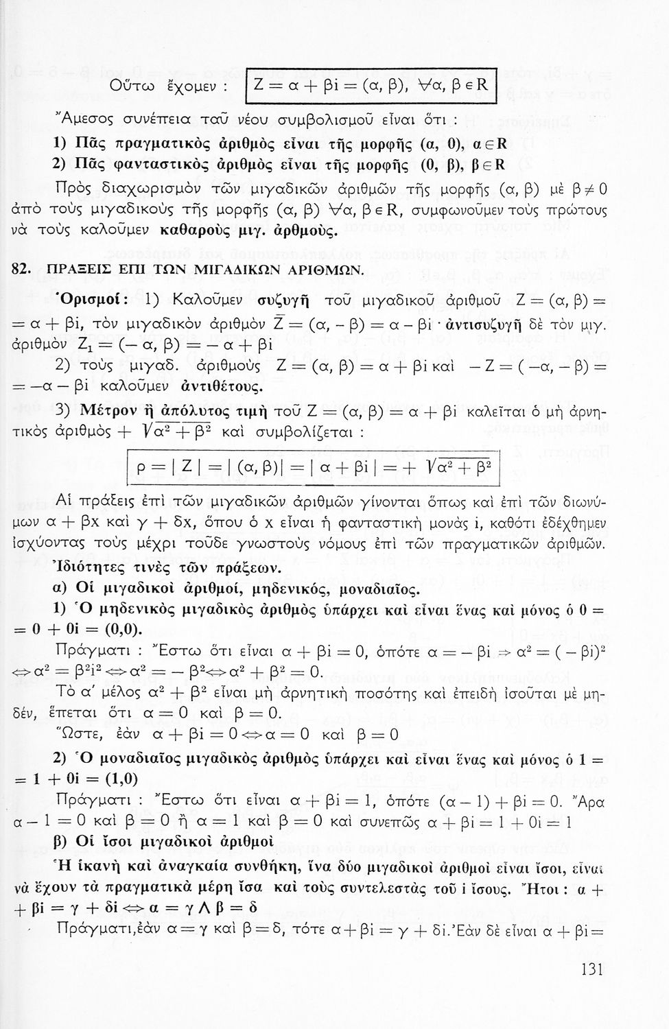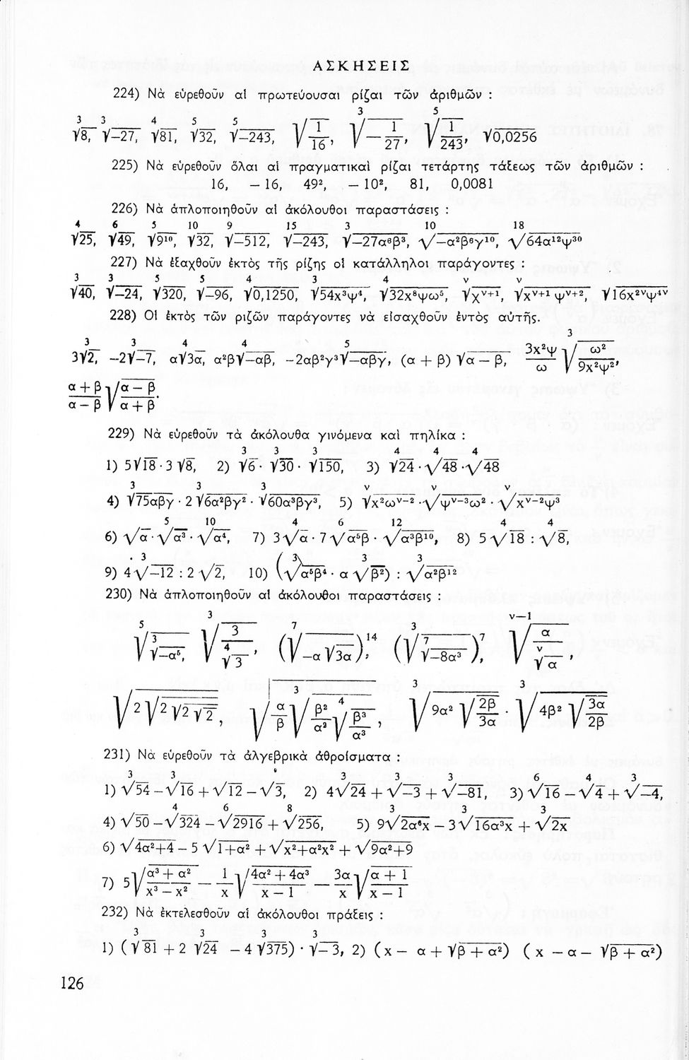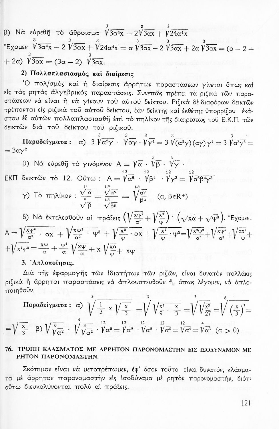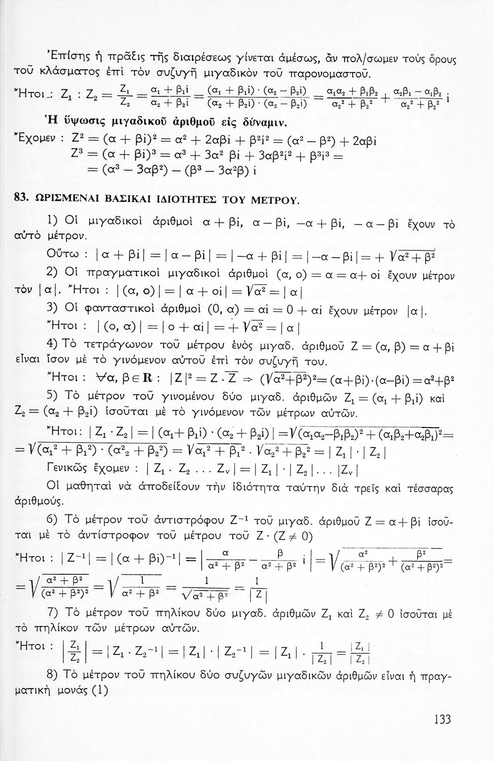 Σχολικό εγχειρίδιο Μαθηματικών Γυμνασίου που είναι χωρισμένο σε θεωρήματα, παραδείγματα και ασκήσεις και περιλαμβάνει στοιχεία Ανώτερης Άλγεβρας και Μαθηματικής Ανάλυσης.