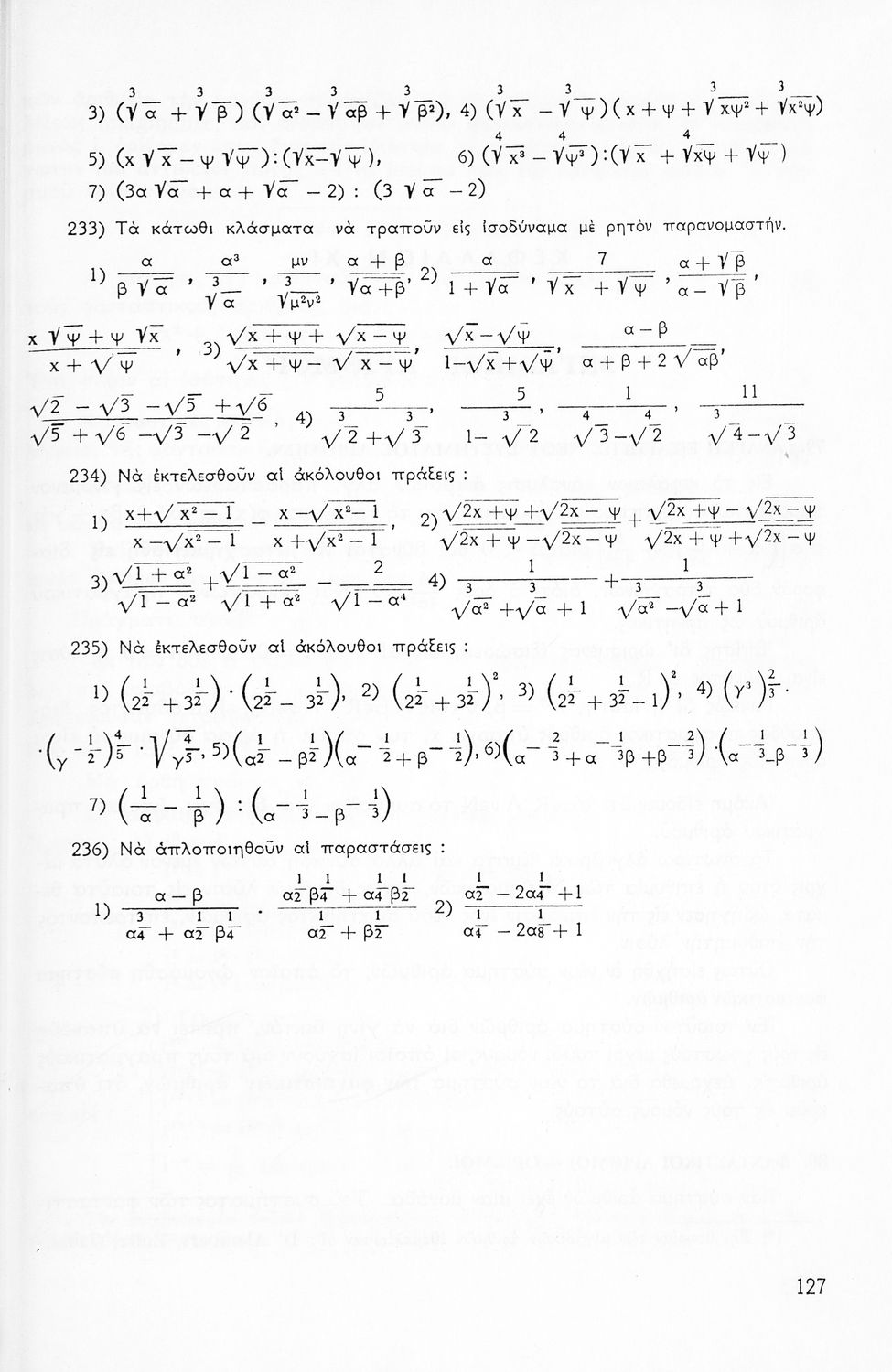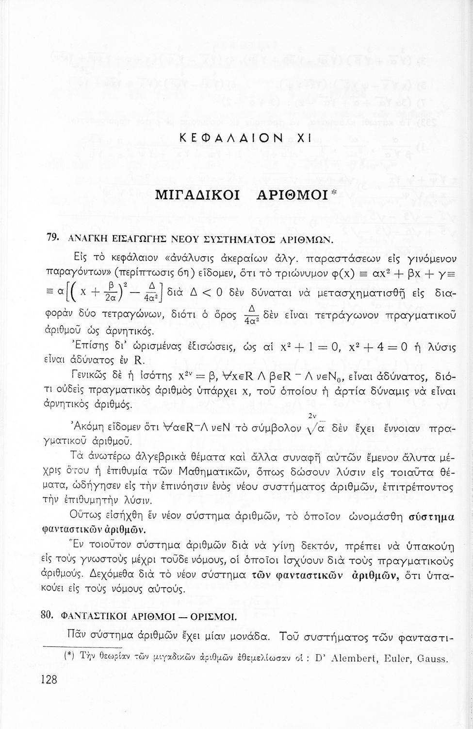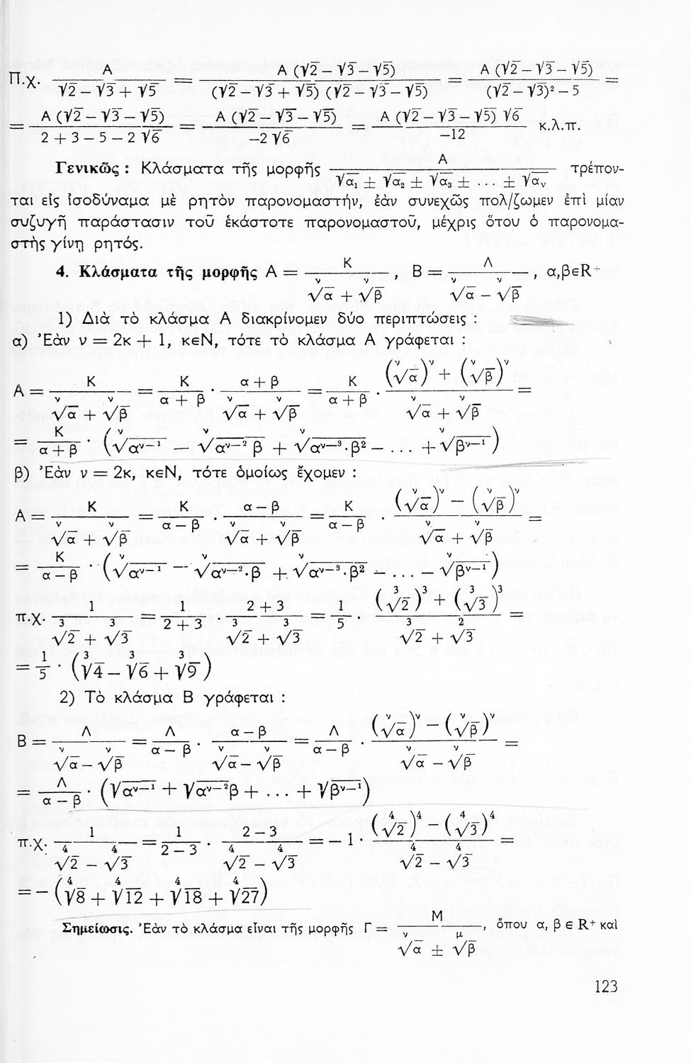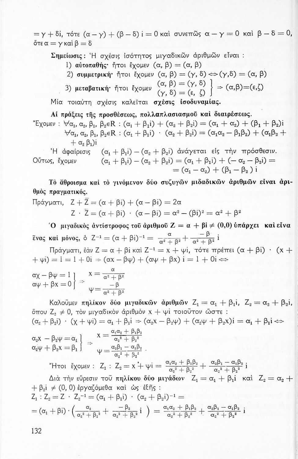 Σχολικό εγχειρίδιο Μαθηματικών Γυμνασίου που είναι χωρισμένο σε θεωρήματα, παραδείγματα και ασκήσεις και περιλαμβάνει στοιχεία Ανώτερης Άλγεβρας και Μαθηματικής Ανάλυσης.