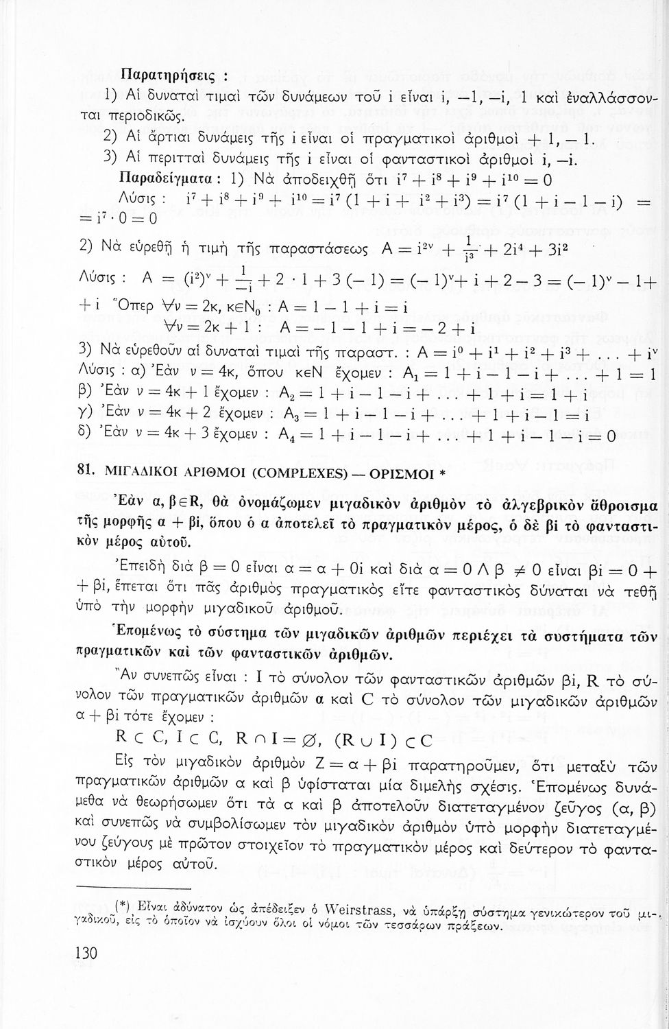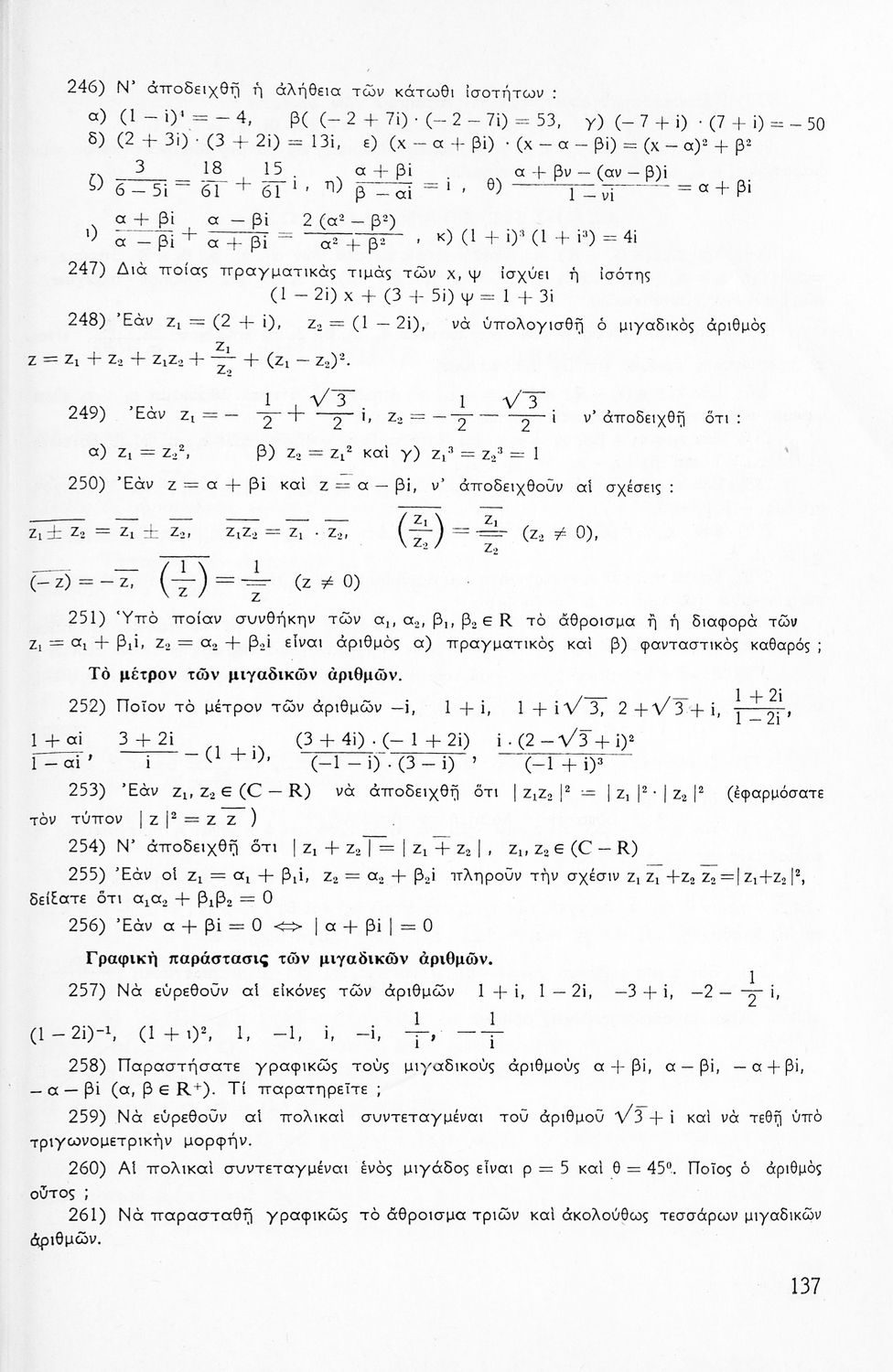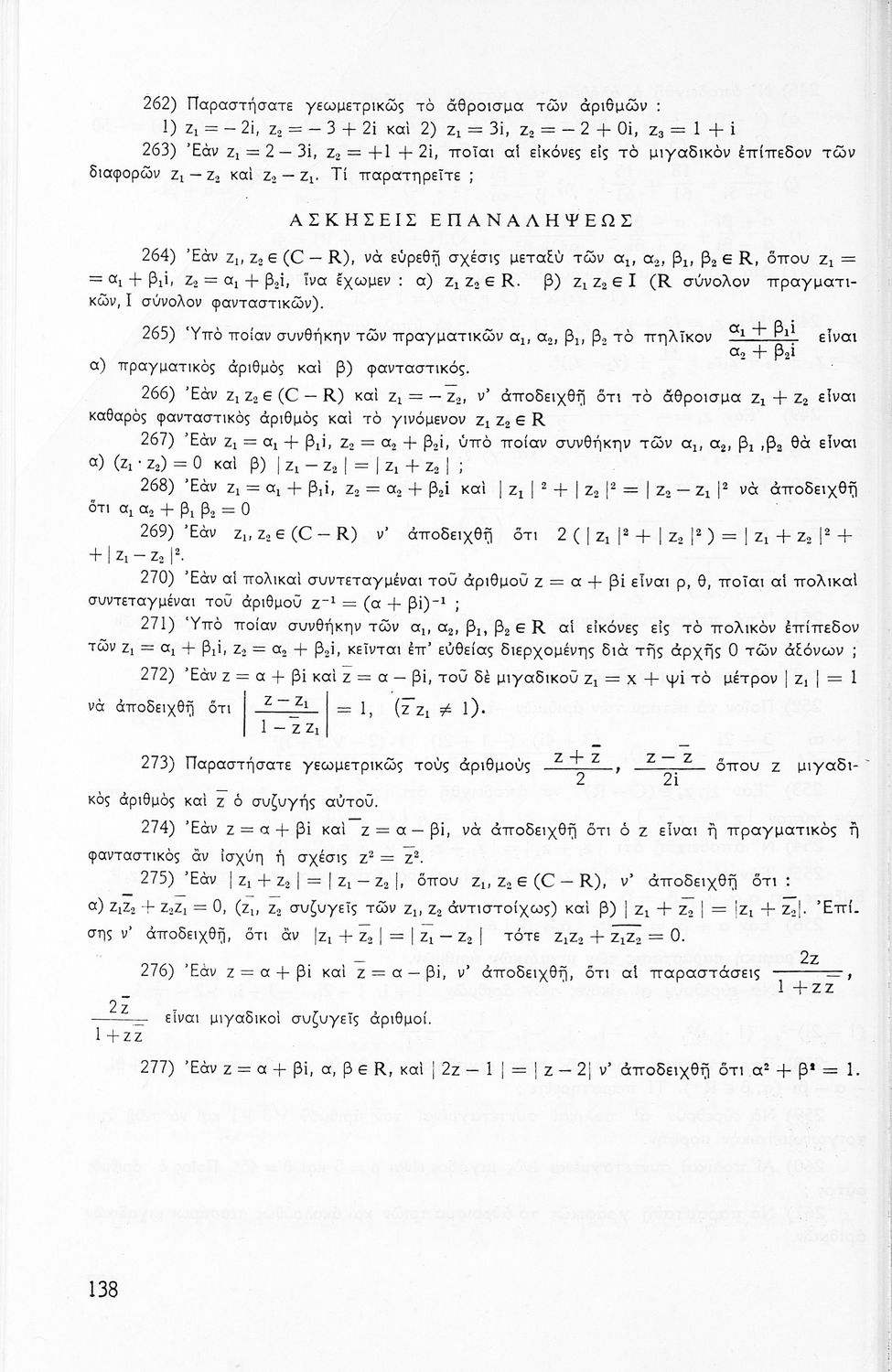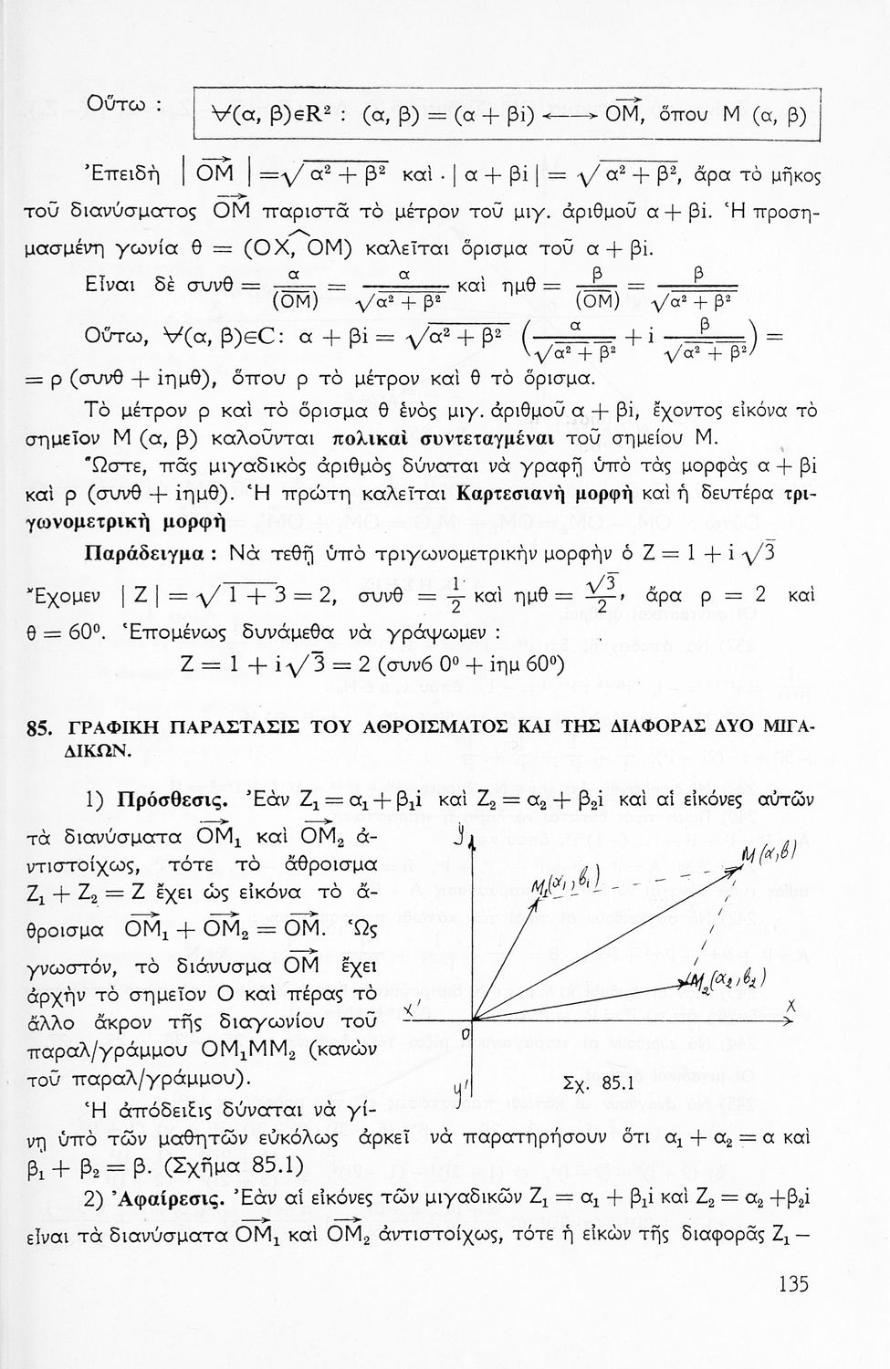 Σχολικό εγχειρίδιο Μαθηματικών Γ΄ Λυκείου που είναι χωρισμένο σε θεωρήματα, παραδείγματα και ασκήσεις και περιλαμβάνει στοιχεία Ανώτερης Άλγεβρας και Μαθηματικής Ανάλυσης.