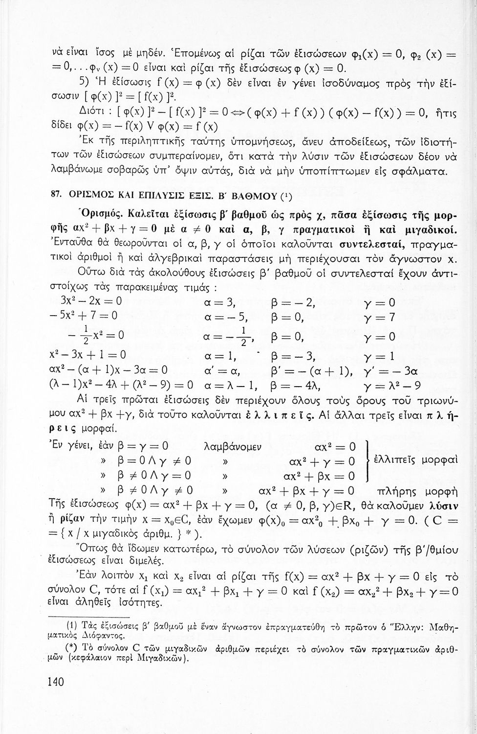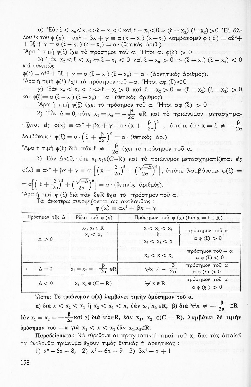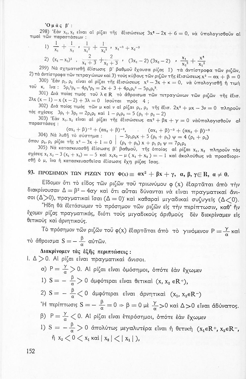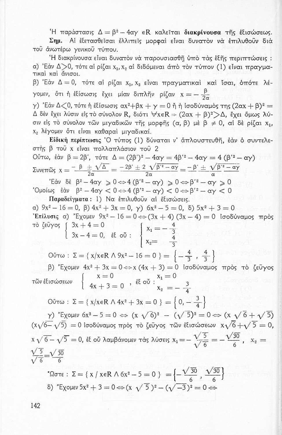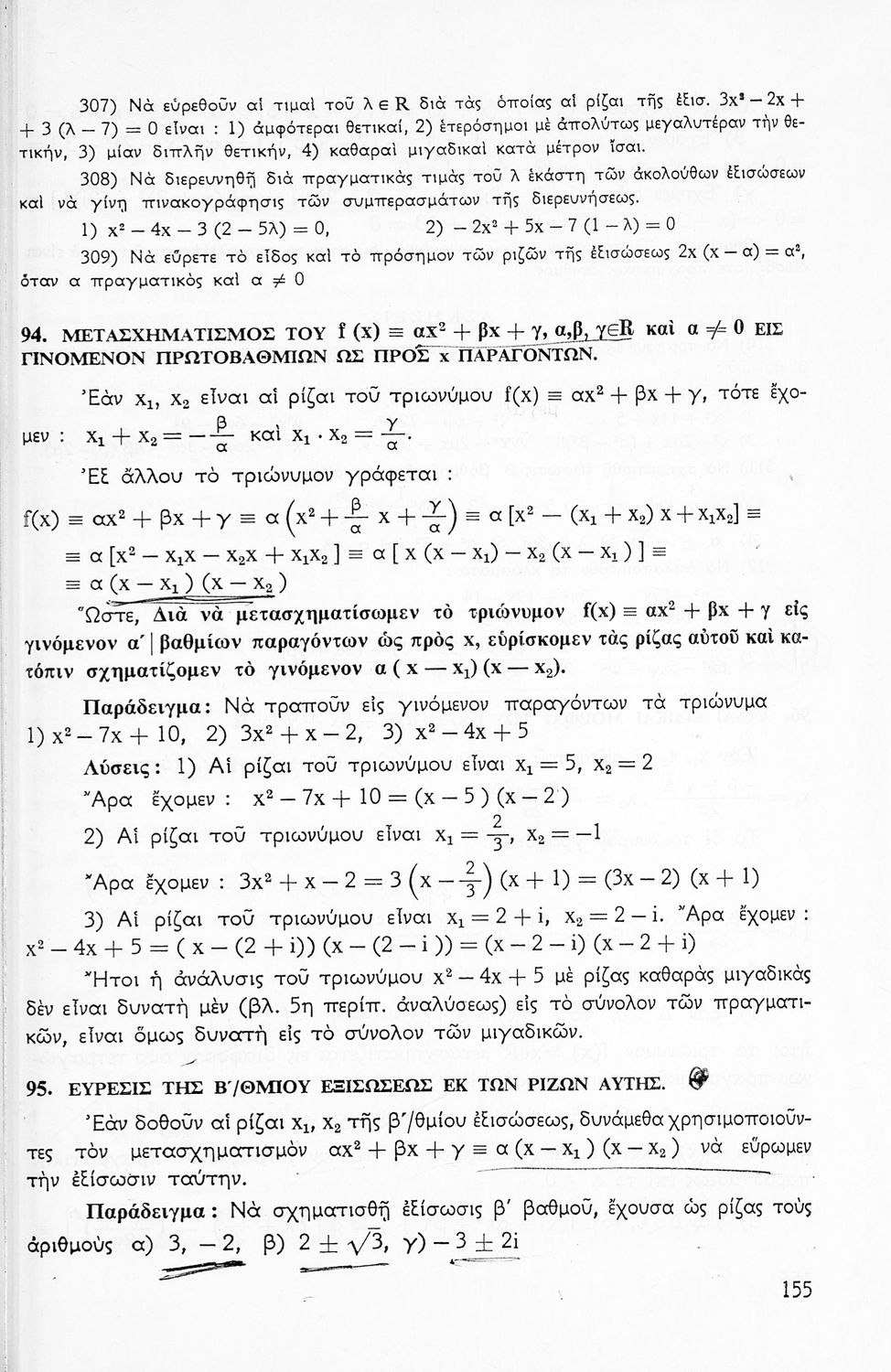 Σχολικό εγχειρίδιο Μαθηματικών Γυμνασίου που είναι χωρισμένο σε θεωρήματα, παραδείγματα και ασκήσεις και περιλαμβάνει στοιχεία Ανώτερης Άλγεβρας και Μαθηματικής Ανάλυσης.