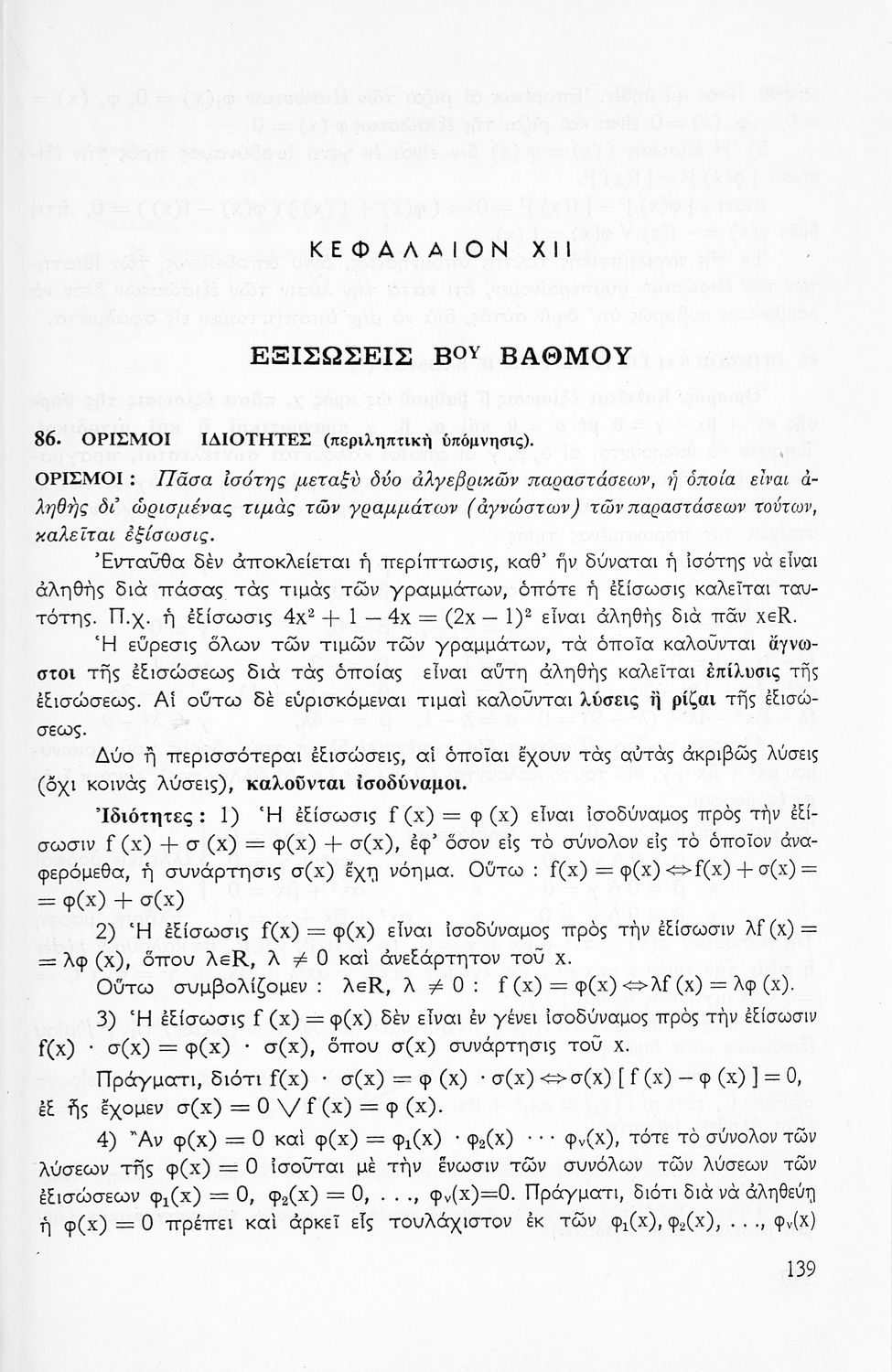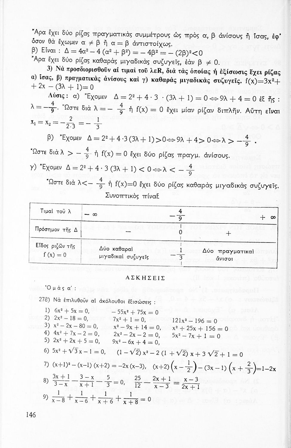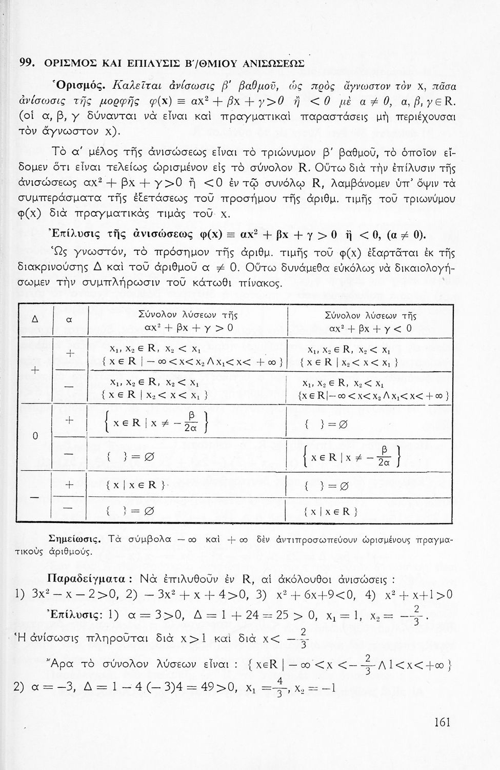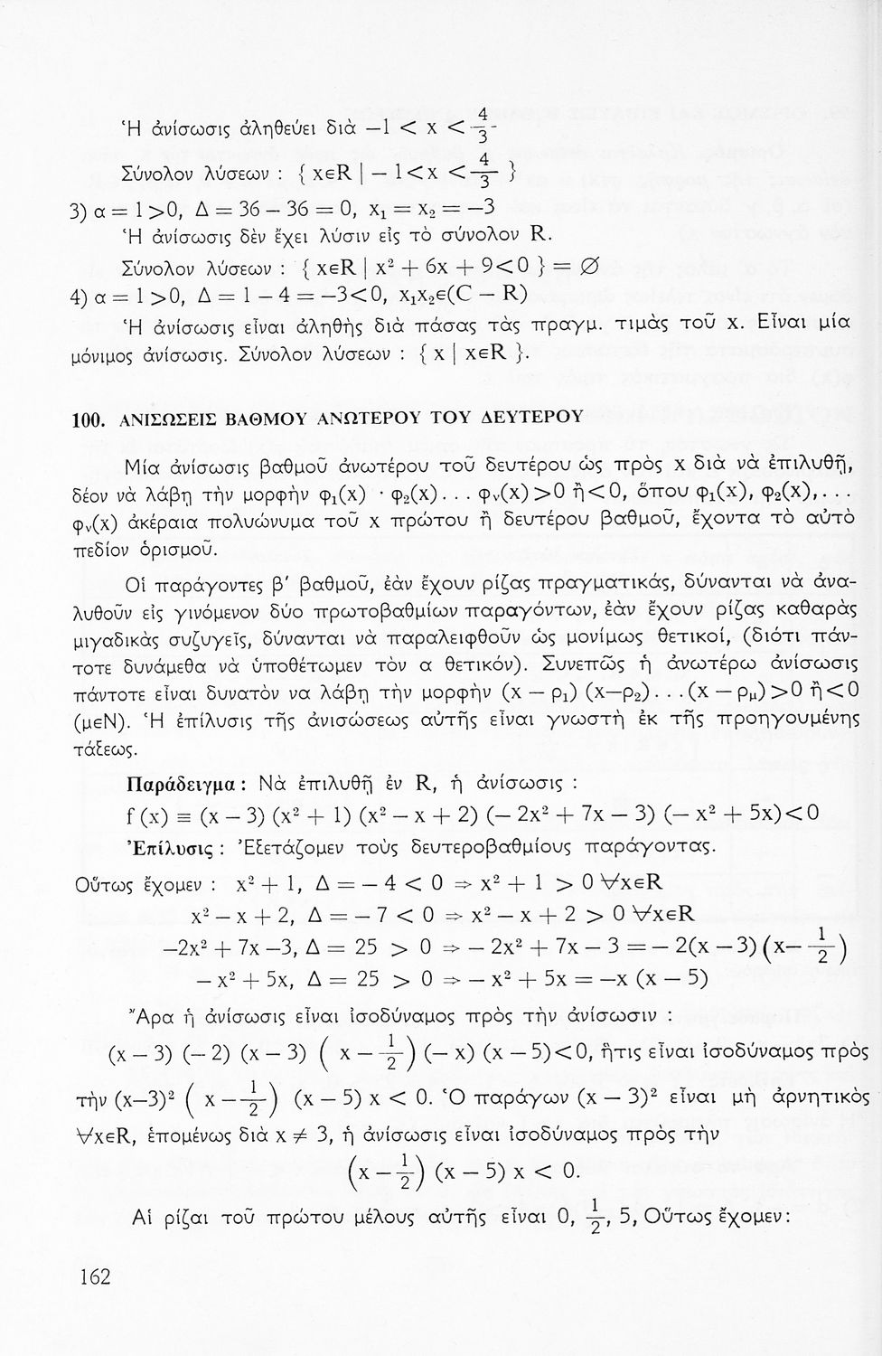 Σχολικό εγχειρίδιο Μαθηματικών Γυμνασίου που είναι χωρισμένο σε θεωρήματα, παραδείγματα και ασκήσεις και περιλαμβάνει στοιχεία Ανώτερης Άλγεβρας και Μαθηματικής Ανάλυσης.