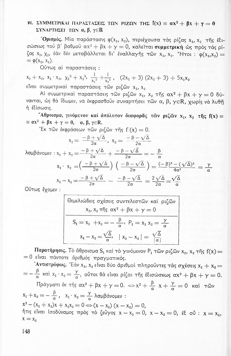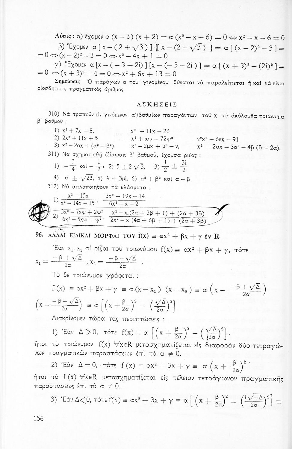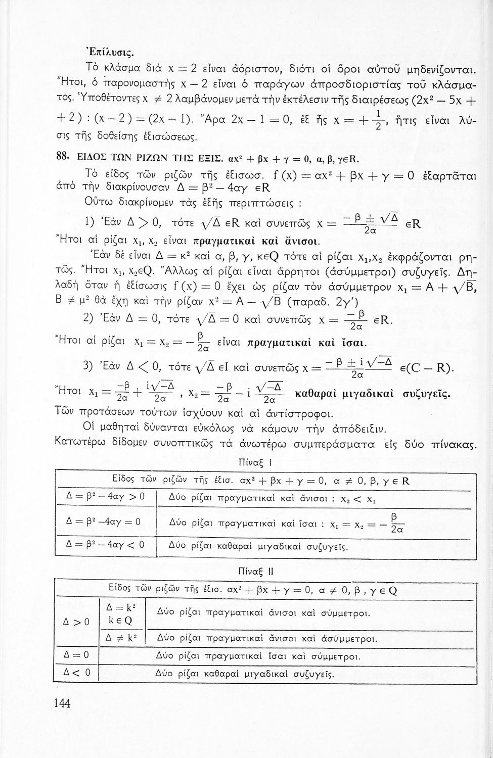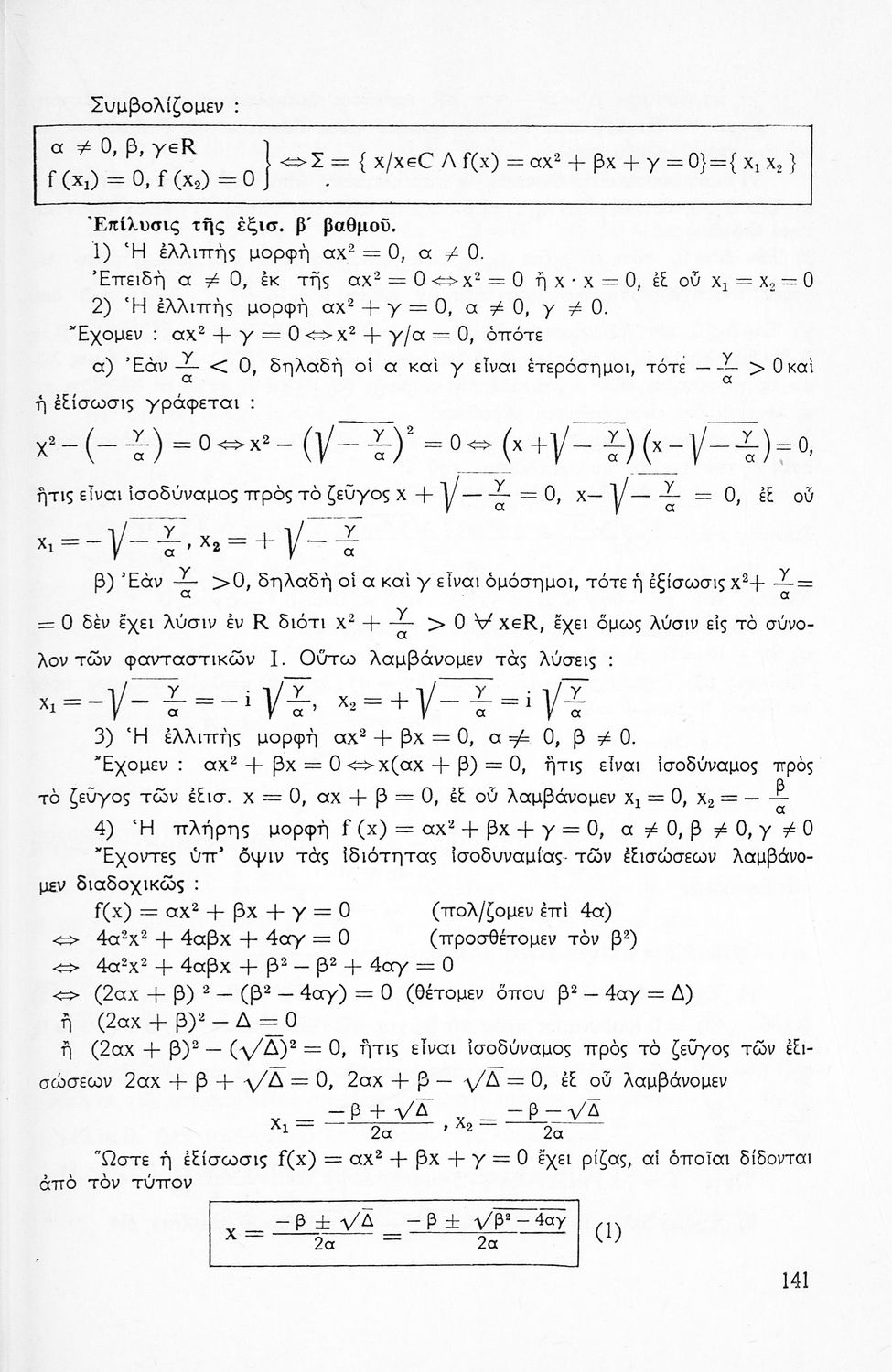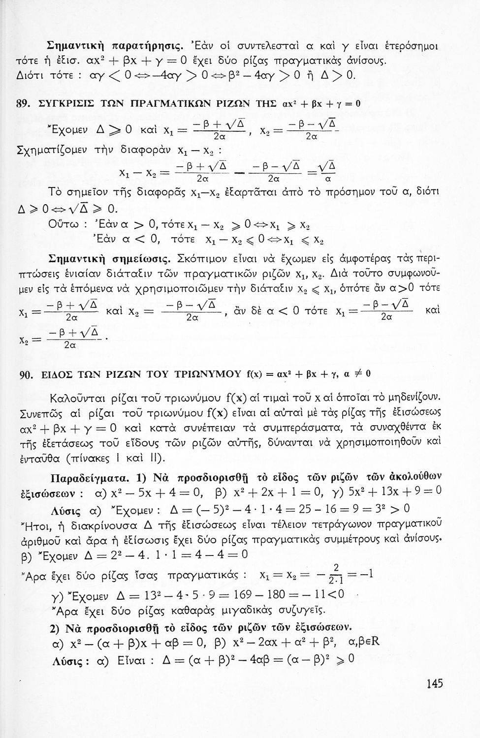 Σχολικό εγχειρίδιο Μαθηματικών Γυμνασίου που είναι χωρισμένο σε θεωρήματα, παραδείγματα και ασκήσεις και περιλαμβάνει στοιχεία Ανώτερης Άλγεβρας και Μαθηματικής Ανάλυσης.