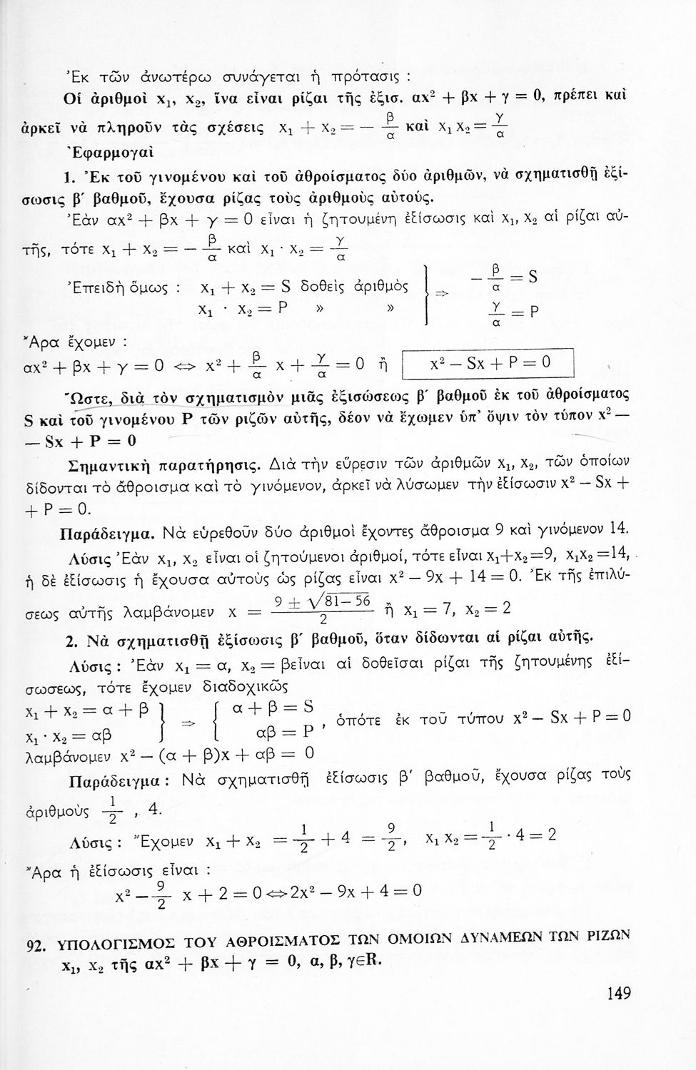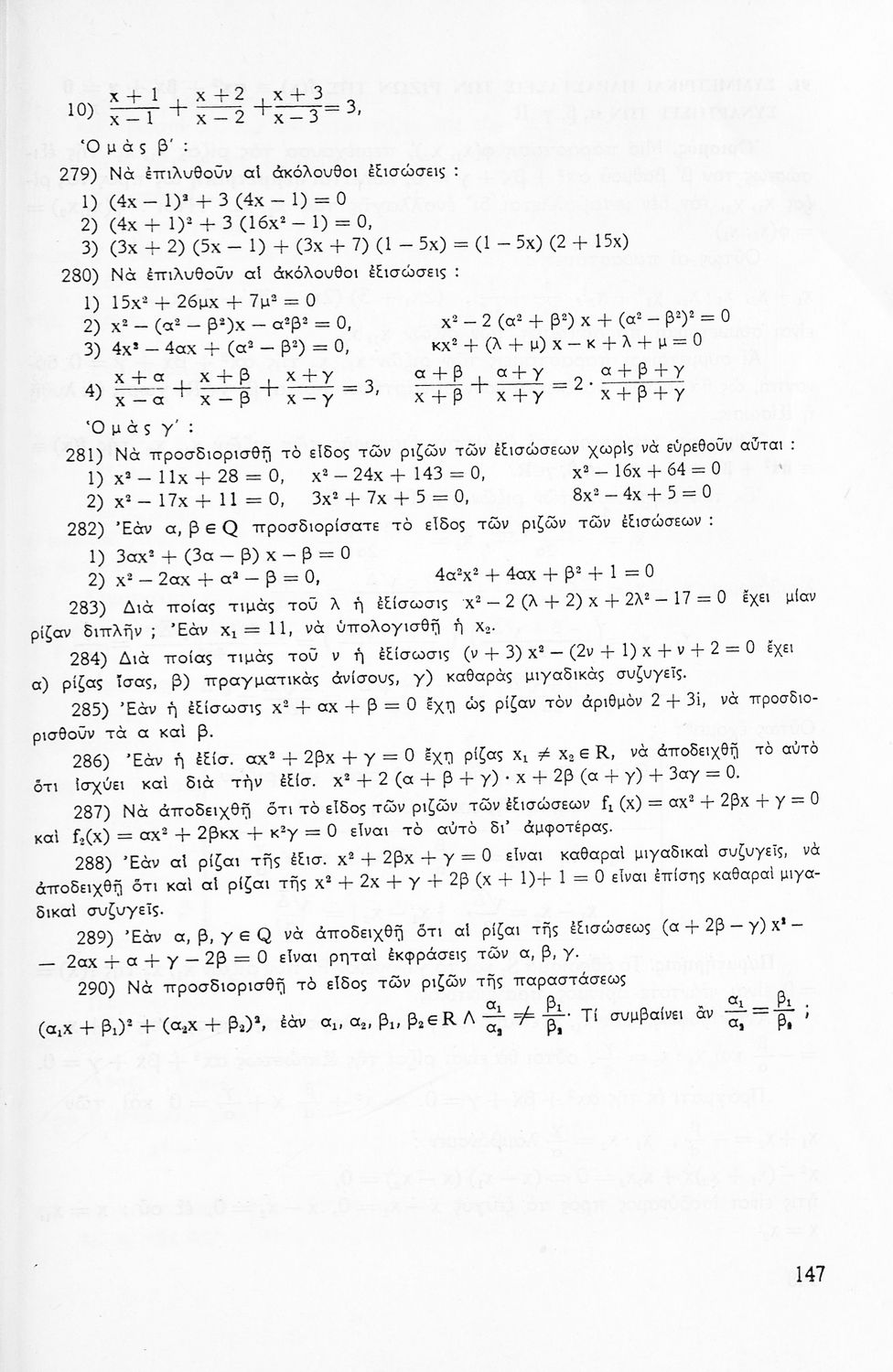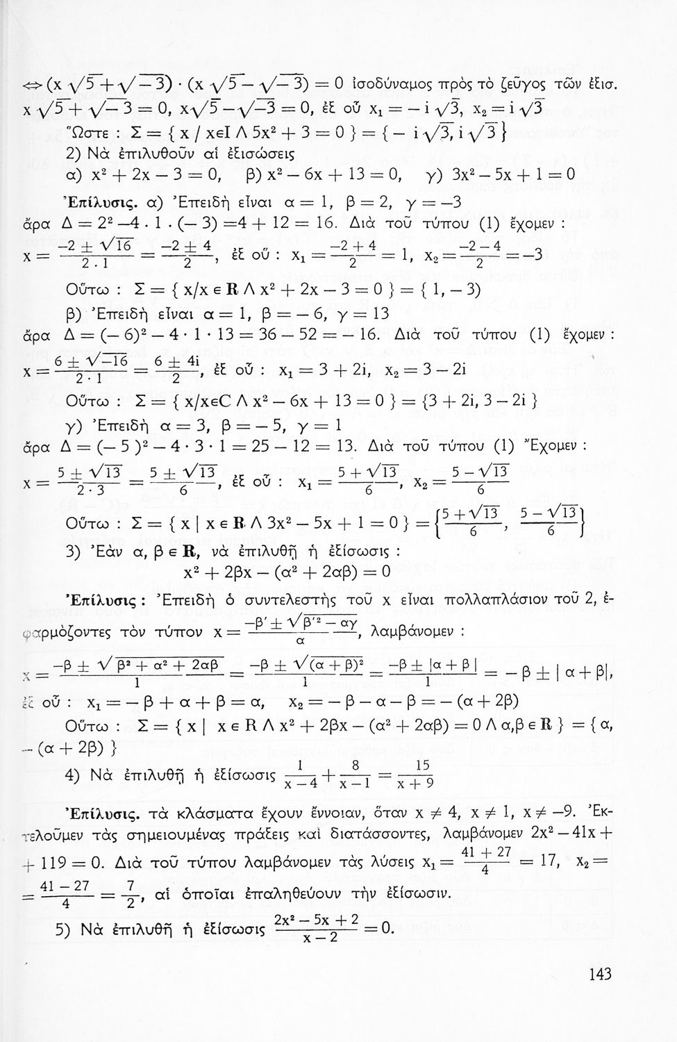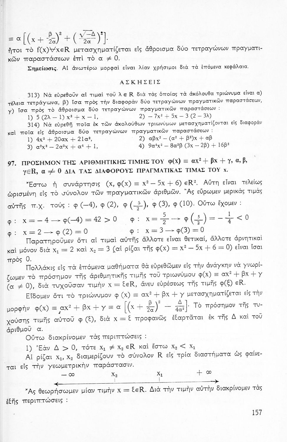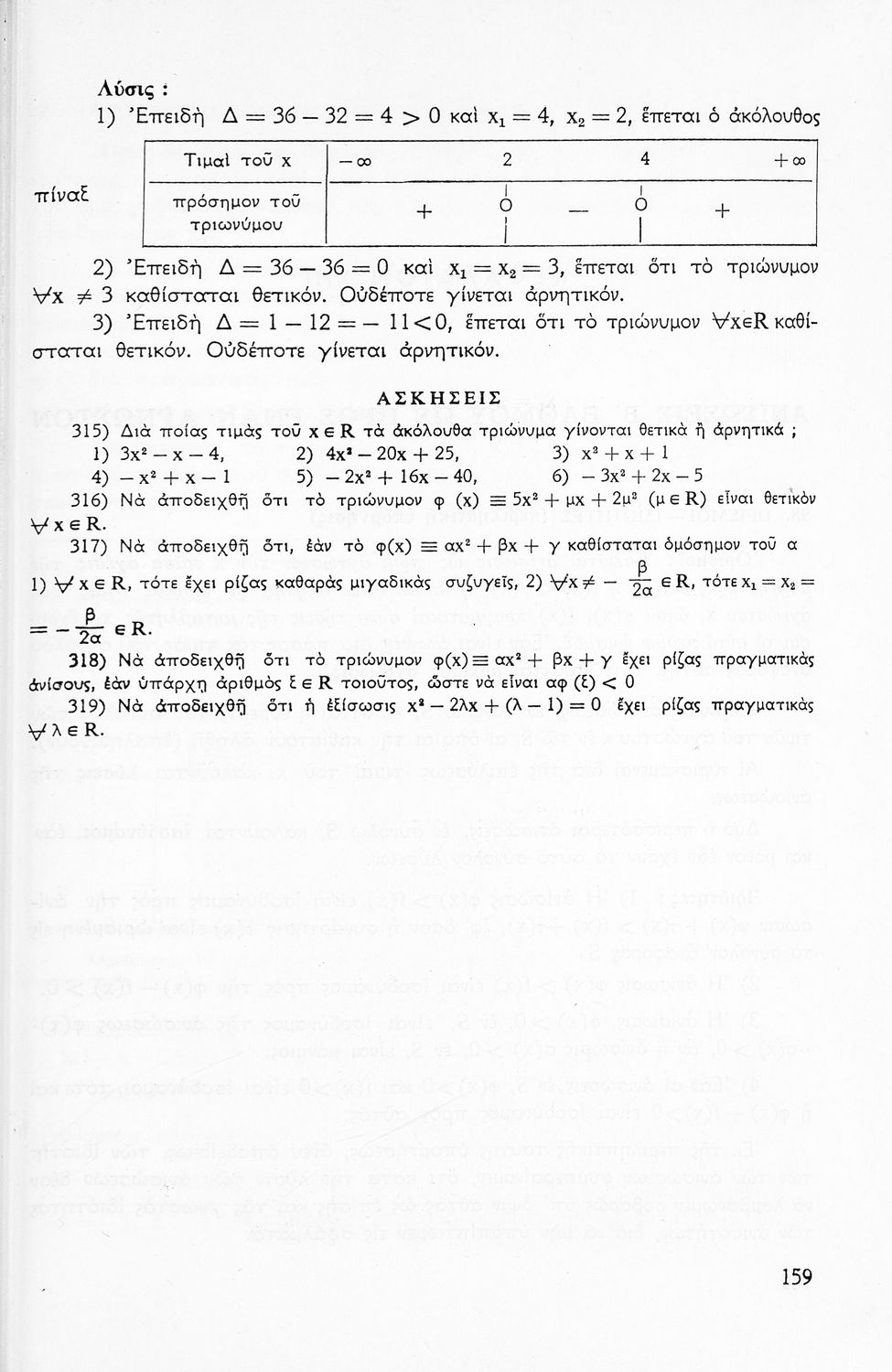 Σχολικό εγχειρίδιο Μαθηματικών Γυμνασίου που είναι χωρισμένο σε θεωρήματα, παραδείγματα και ασκήσεις και περιλαμβάνει στοιχεία Ανώτερης Άλγεβρας και Μαθηματικής Ανάλυσης.