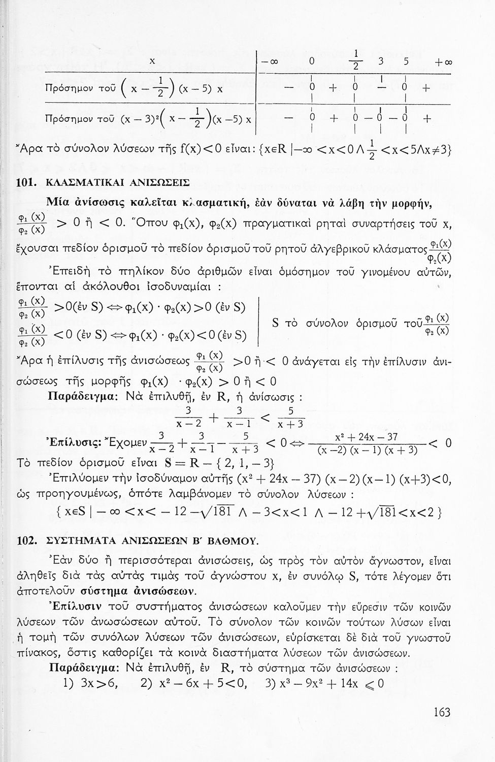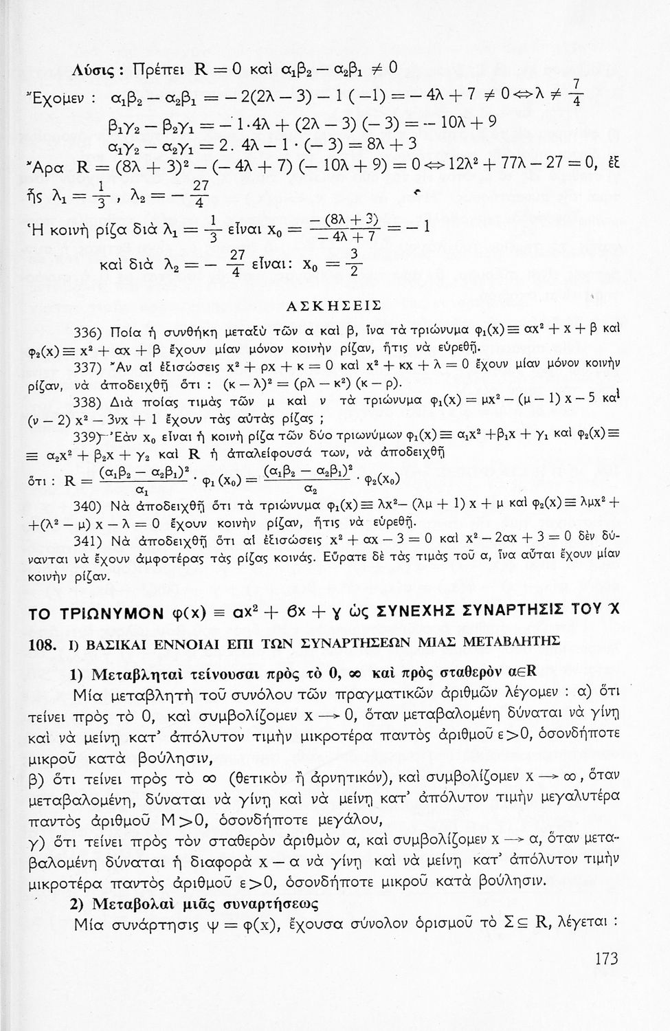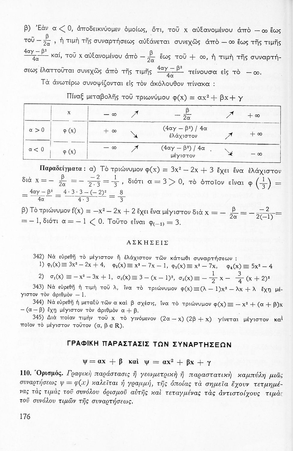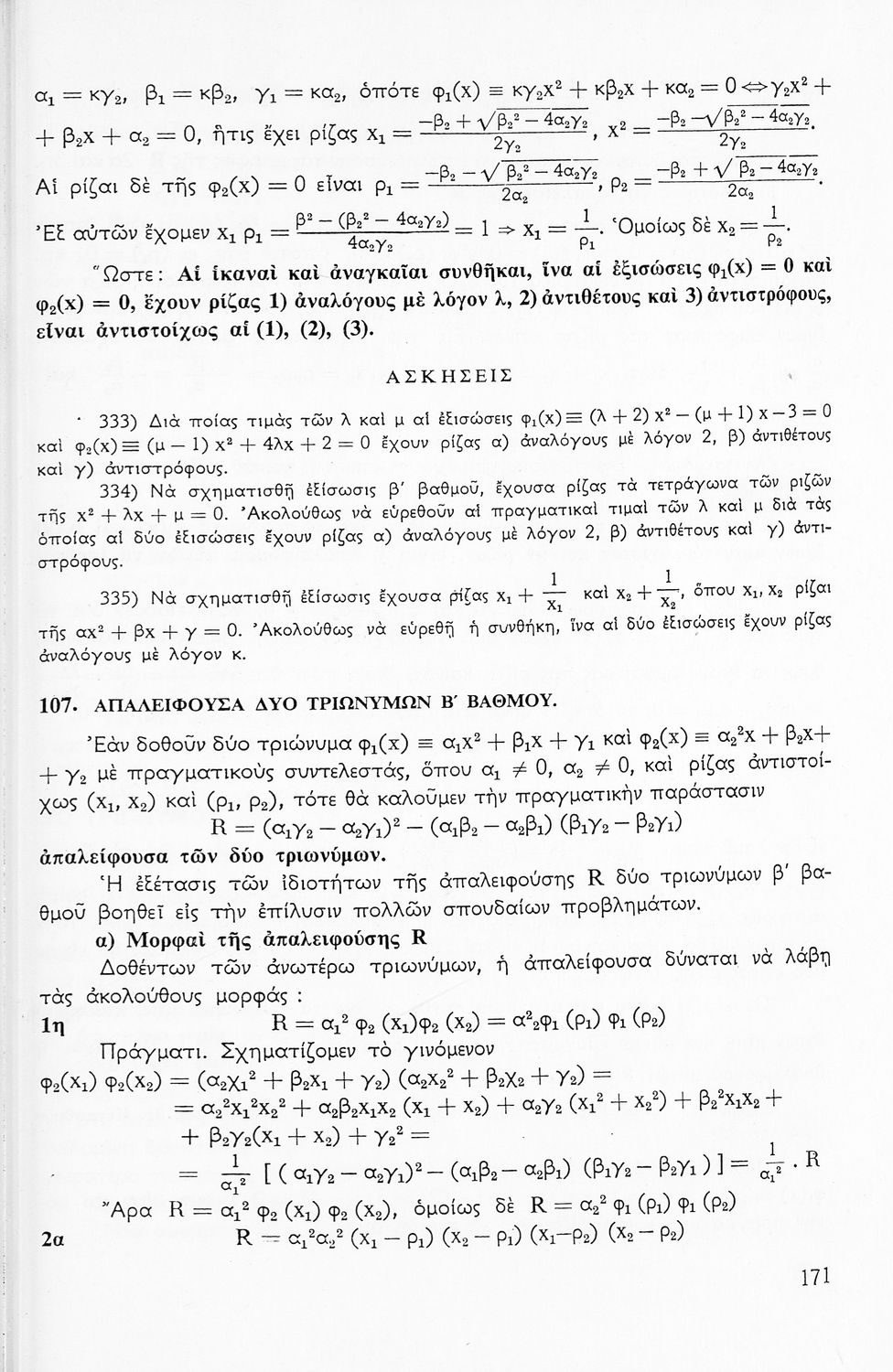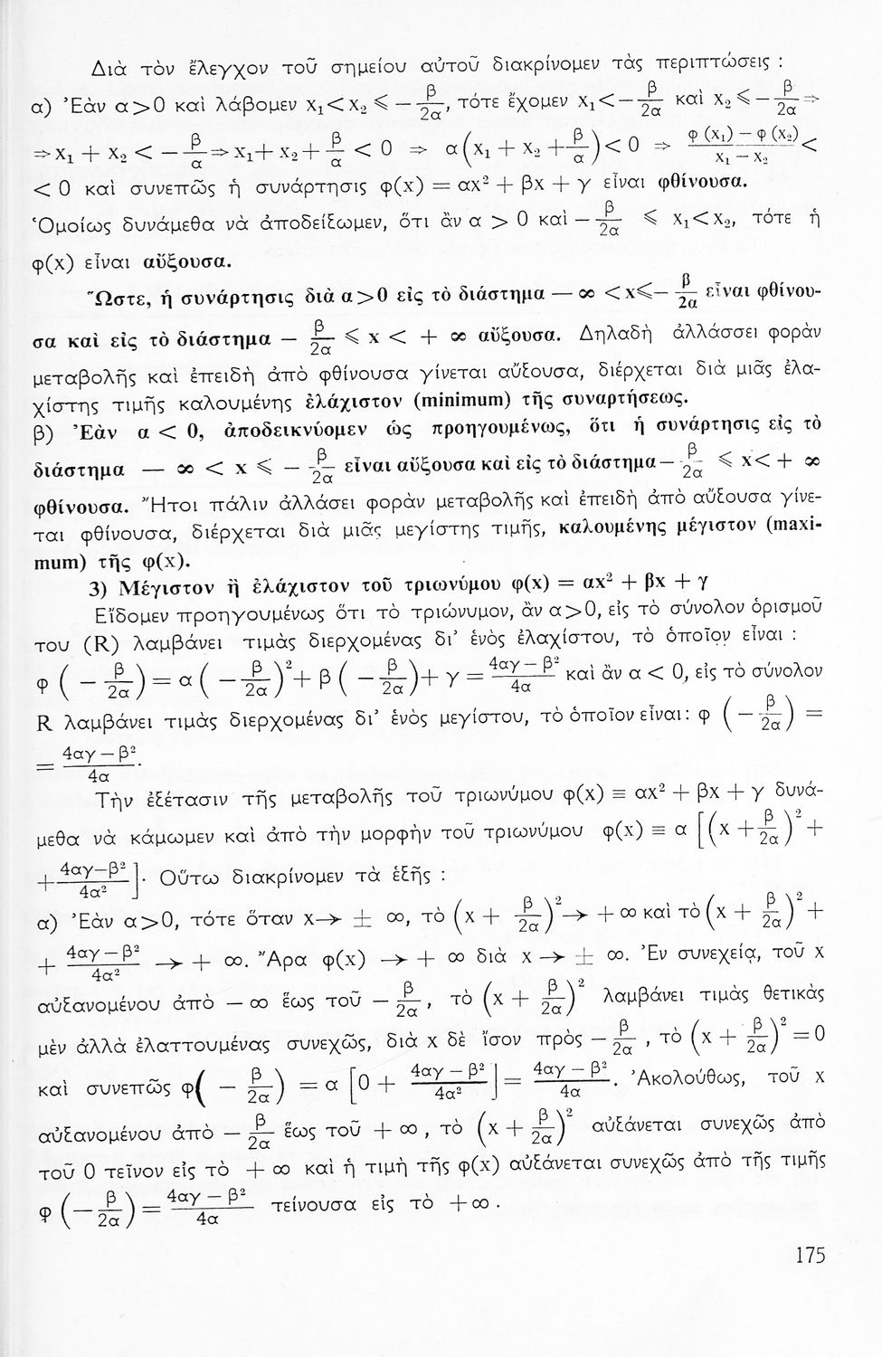 Σχολικό εγχειρίδιο Μαθηματικών Γυμνασίου που είναι χωρισμένο σε θεωρήματα, παραδείγματα και ασκήσεις και περιλαμβάνει στοιχεία Ανώτερης Άλγεβρας και Μαθηματικής Ανάλυσης.