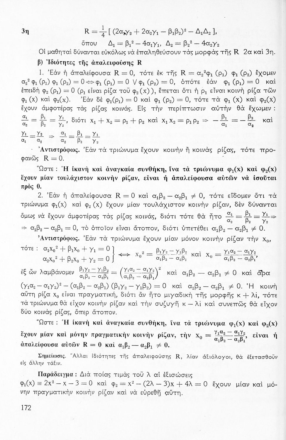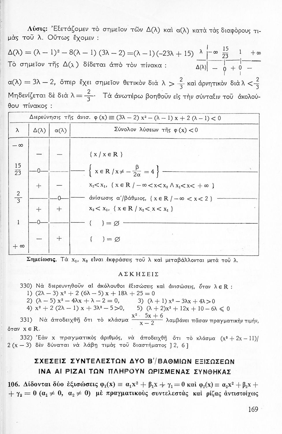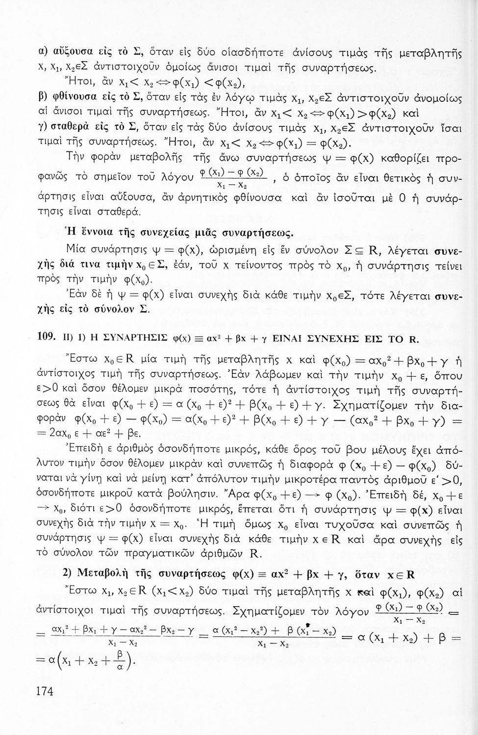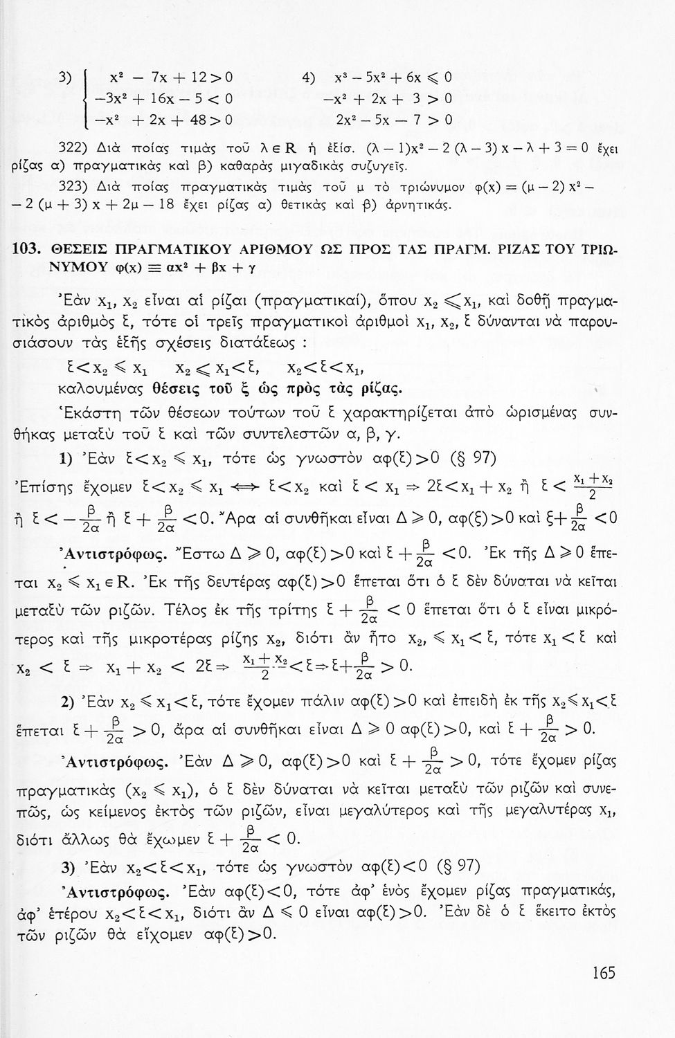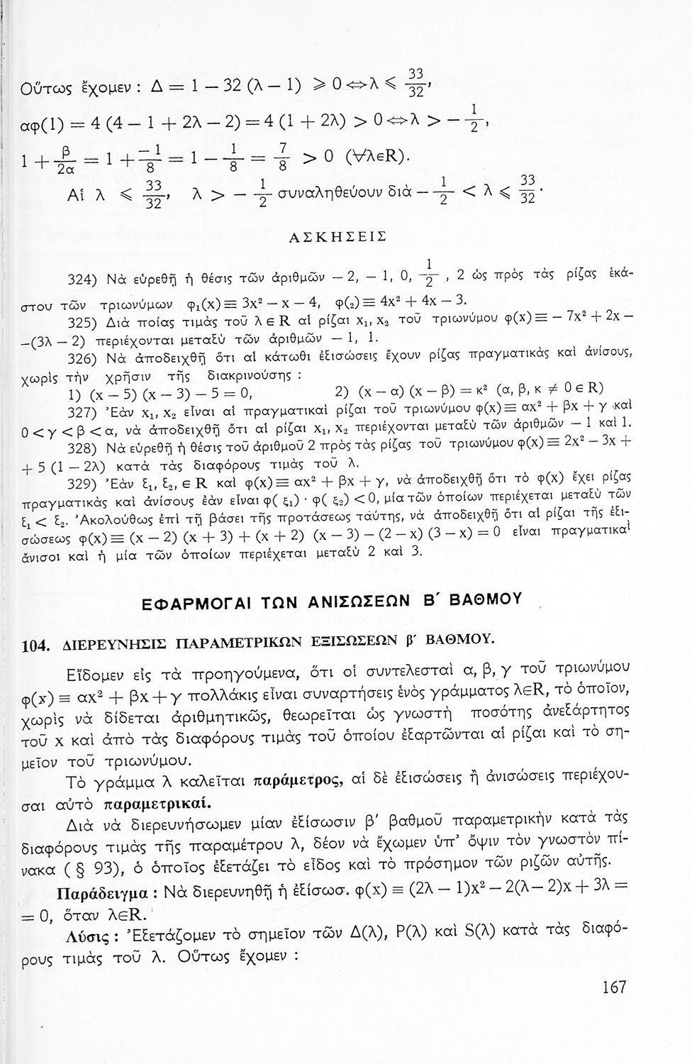 Σχολικό εγχειρίδιο Μαθηματικών Γυμνασίου που είναι χωρισμένο σε θεωρήματα, παραδείγματα και ασκήσεις και περιλαμβάνει στοιχεία Ανώτερης Άλγεβρας και Μαθηματικής Ανάλυσης.