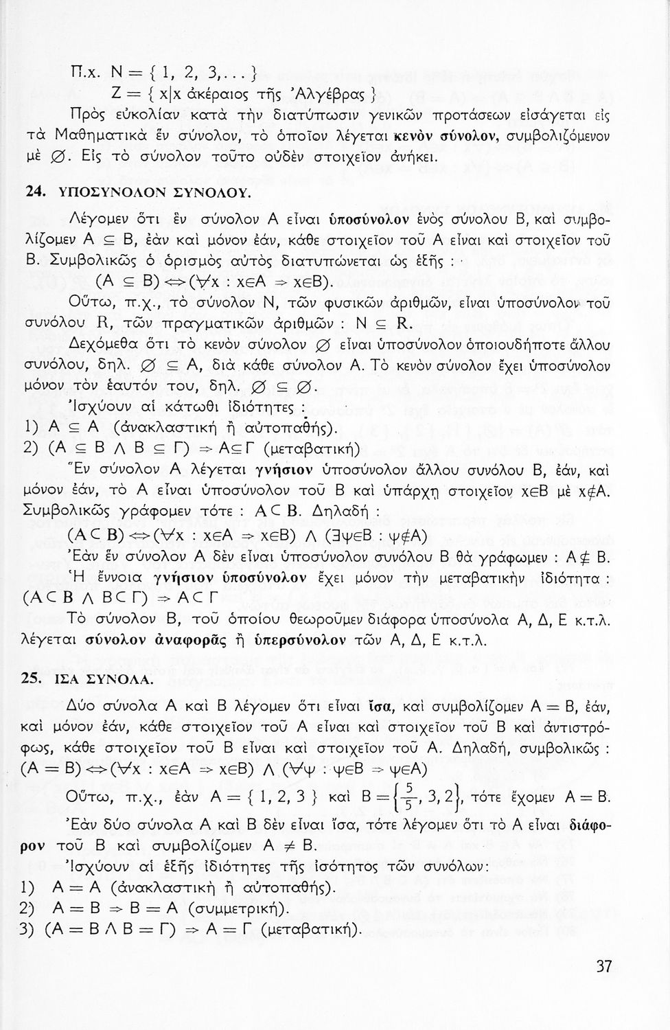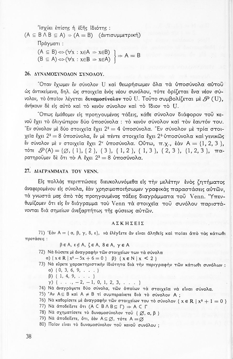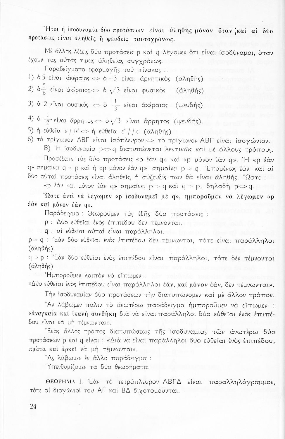 Σχολικό εγχειρίδιο Μαθηματικών Γυμνασίου που είναι χωρισμένο σε θεωρήματα, παραδείγματα και ασκήσεις και περιλαμβάνει στοιχεία Ανώτερης Άλγεβρας και Μαθηματικής Ανάλυσης.