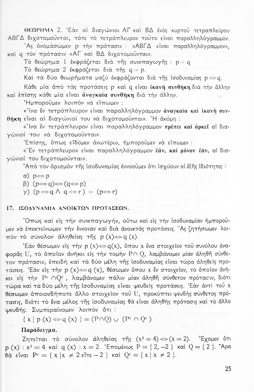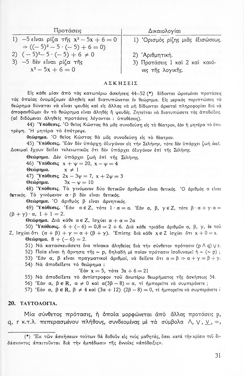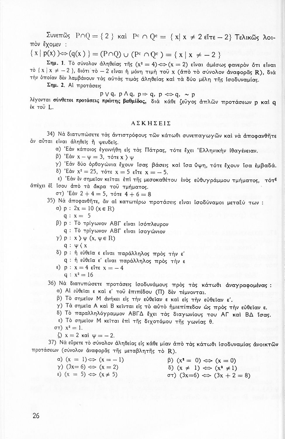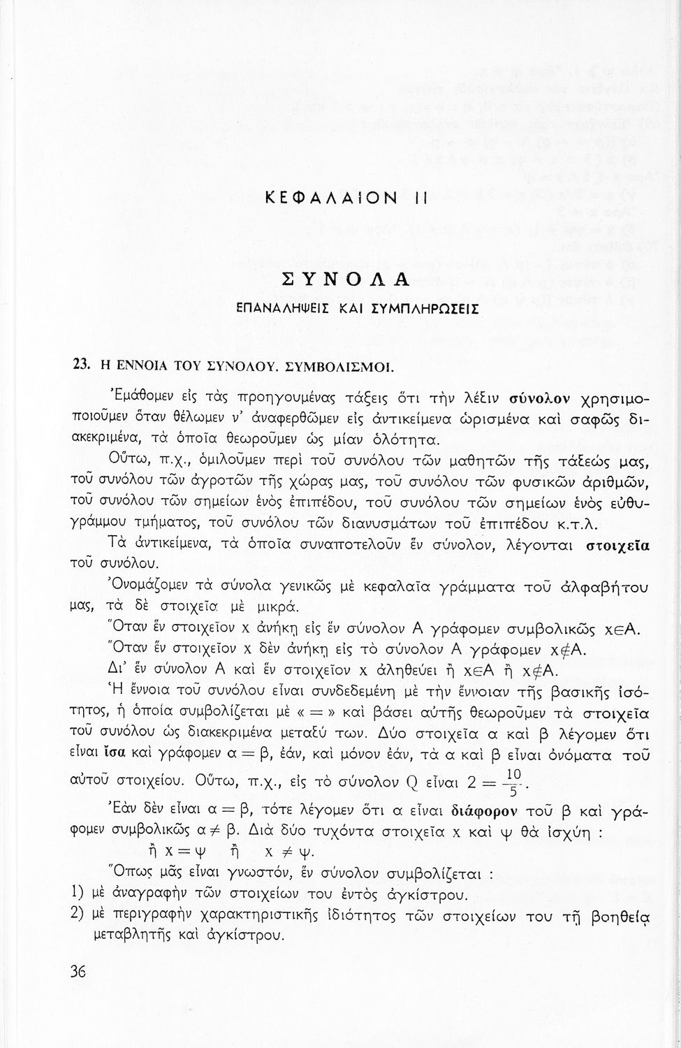Σχολικό εγχειρίδιο Μαθηματικών ΣΤ΄ Γυμνασίου που είναι χωρισμένο σε θεωρήματα, παραδείγματα και ασκήσεις και περιλαμβάνει στοιχεία Ανώτερης Άλγεβρας και Μαθηματικής Ανάλυσης.