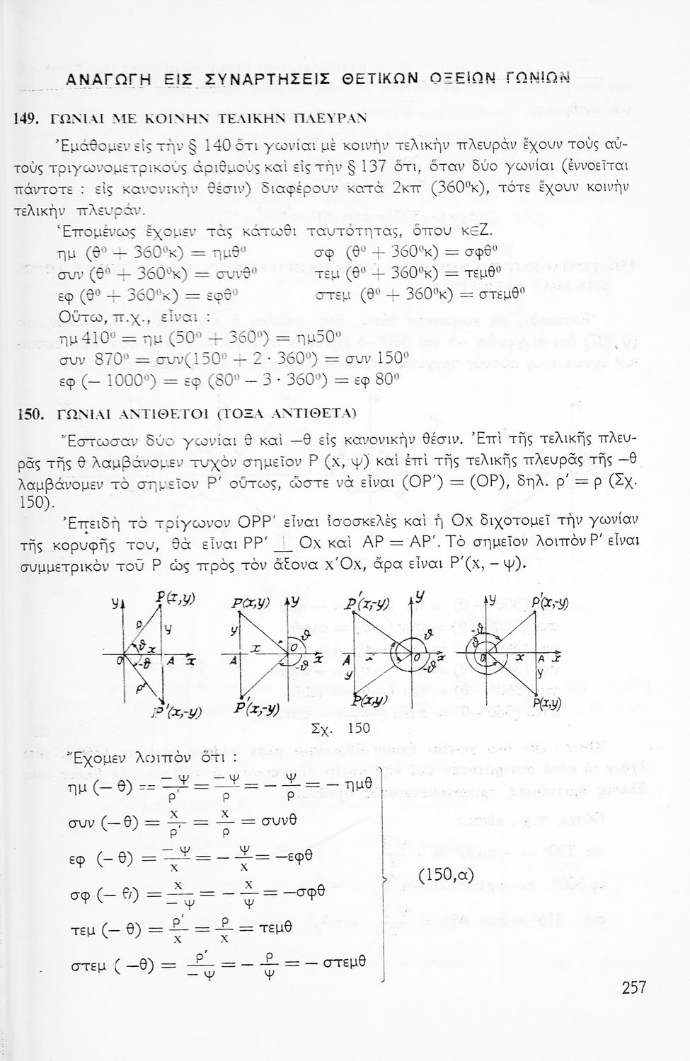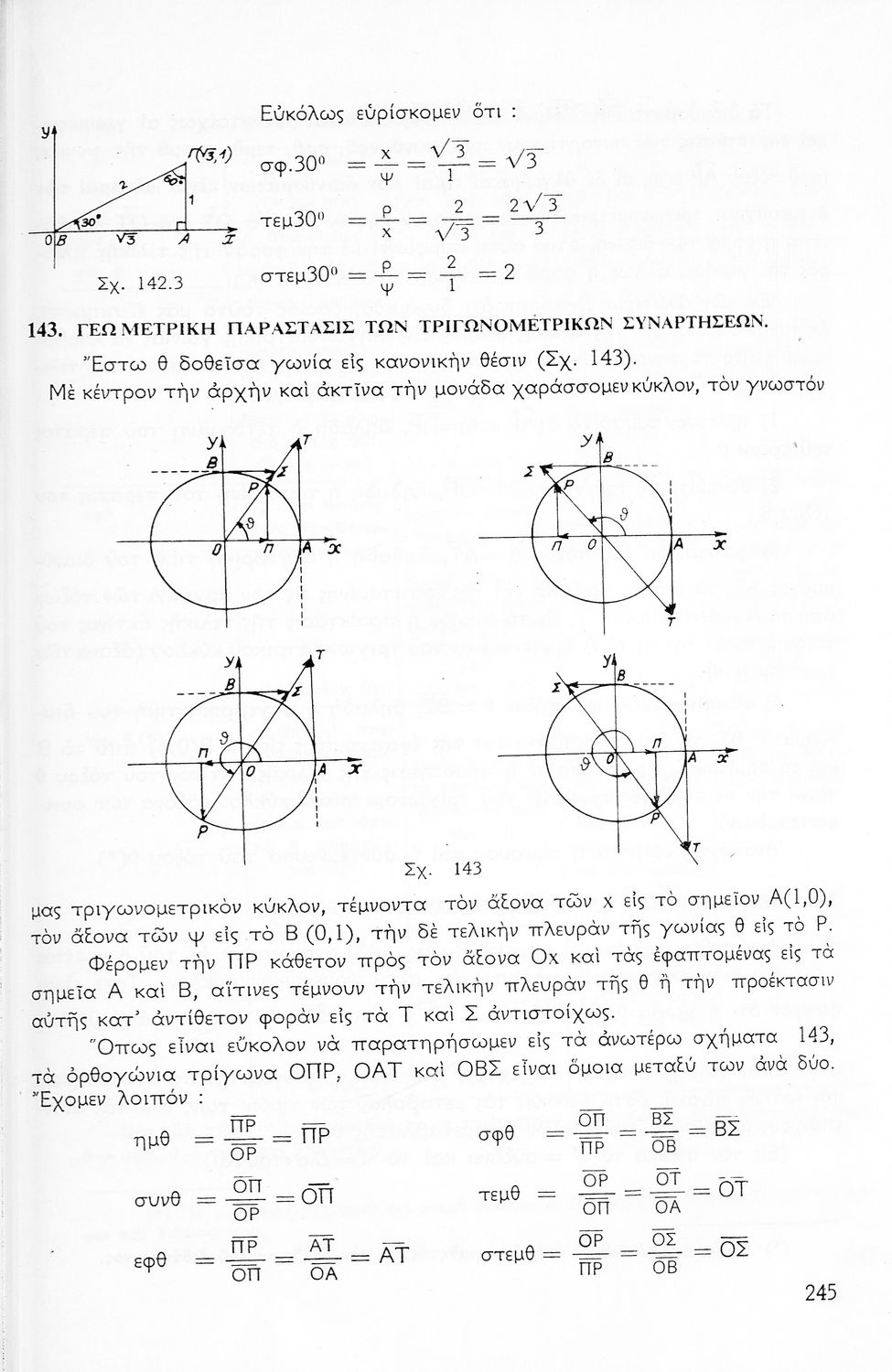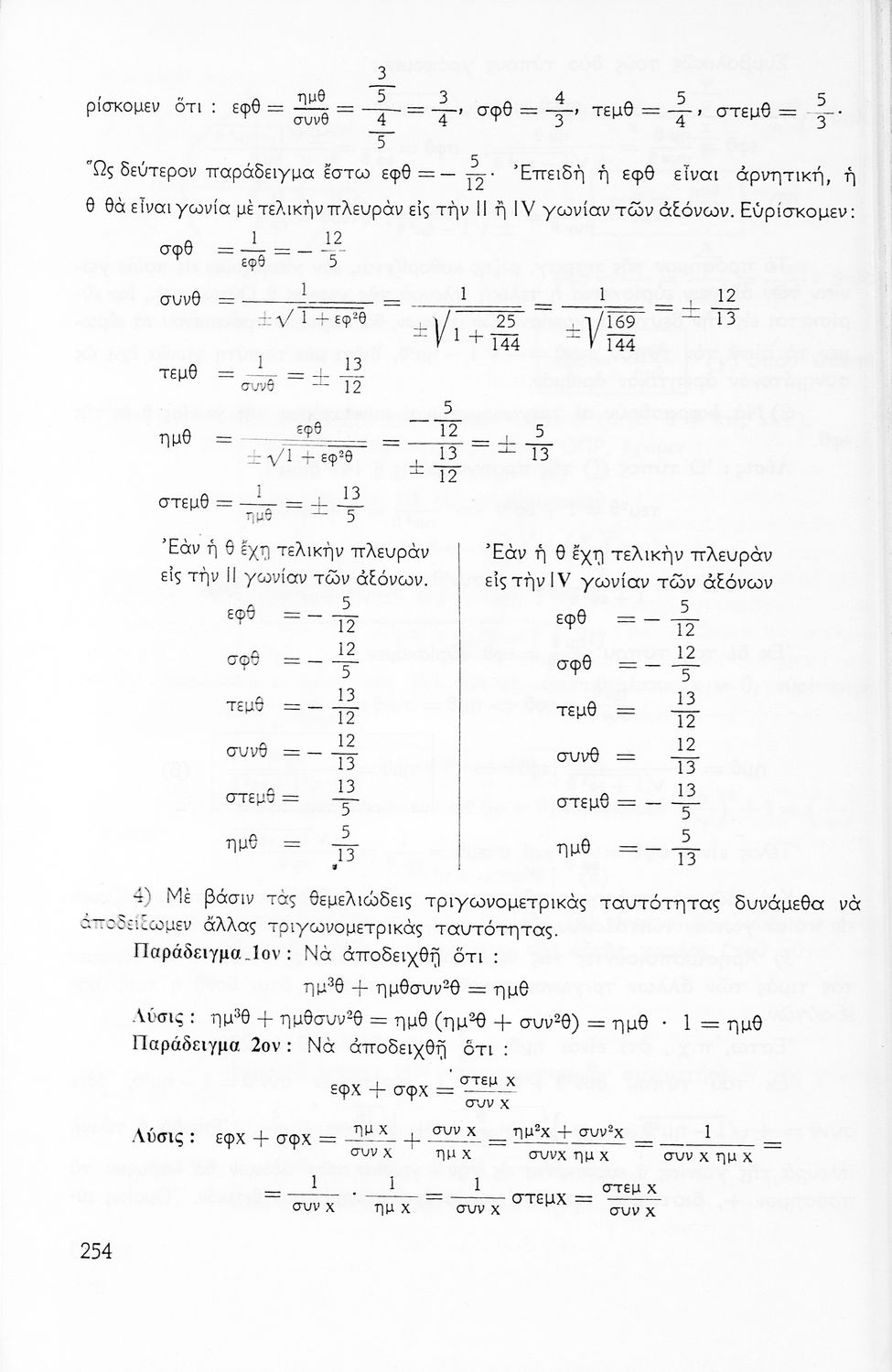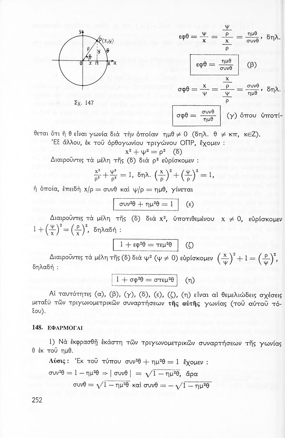 Σχολικό εγχειρίδιο Μαθηματικών για την Ε΄ Γυμνασίου, χωρισμένο σε προβλήματα, εφαρμογές και ασκήσεις, που εστιάζει στην Τριγωνομετρία. Φέρει το σύμβολο της δικτατορίας.