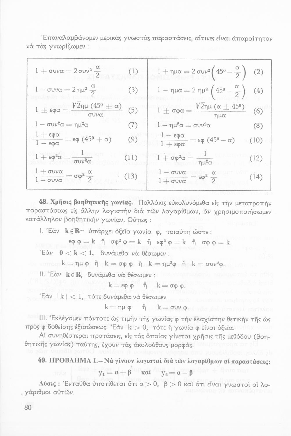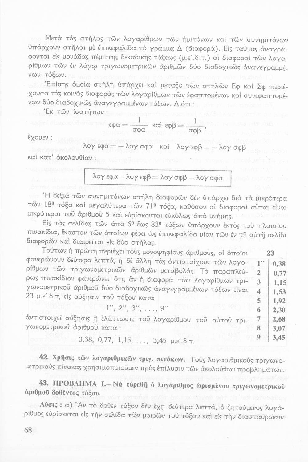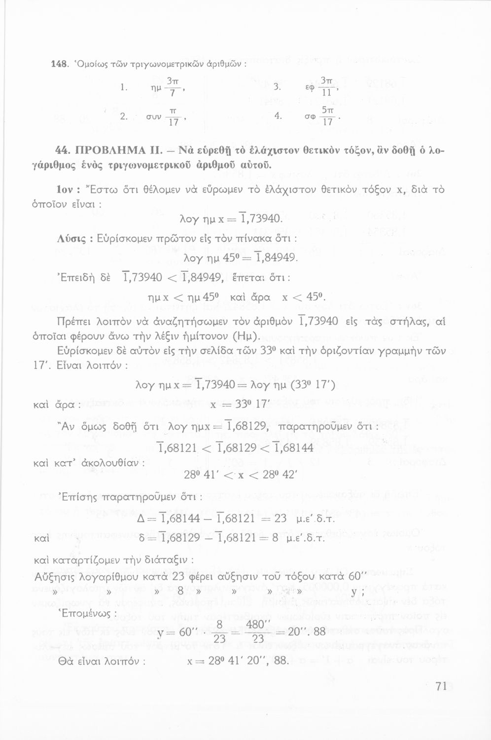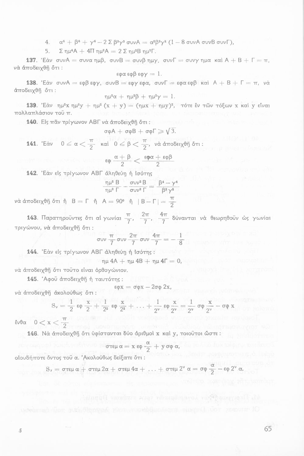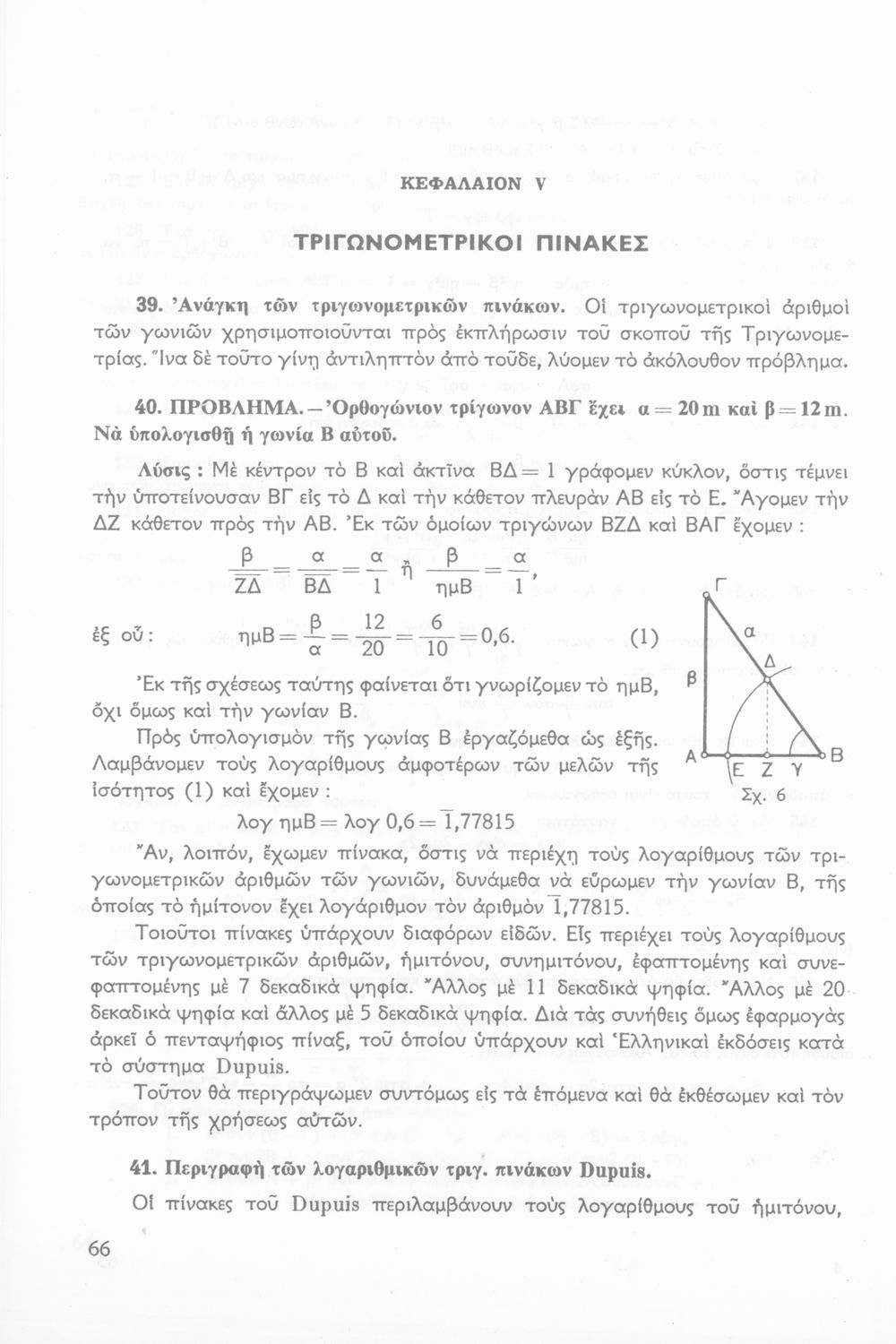 Σχολικό εγχειρίδιο Μαθηματικών για την Ε΄ Γυμνασίου, χωρισμένο σε προβλήματα, εφαρμογές και ασκήσεις, που εστιάζει στην Τριγωνομετρία. Φέρει το σύμβολο της δικτατορίας.