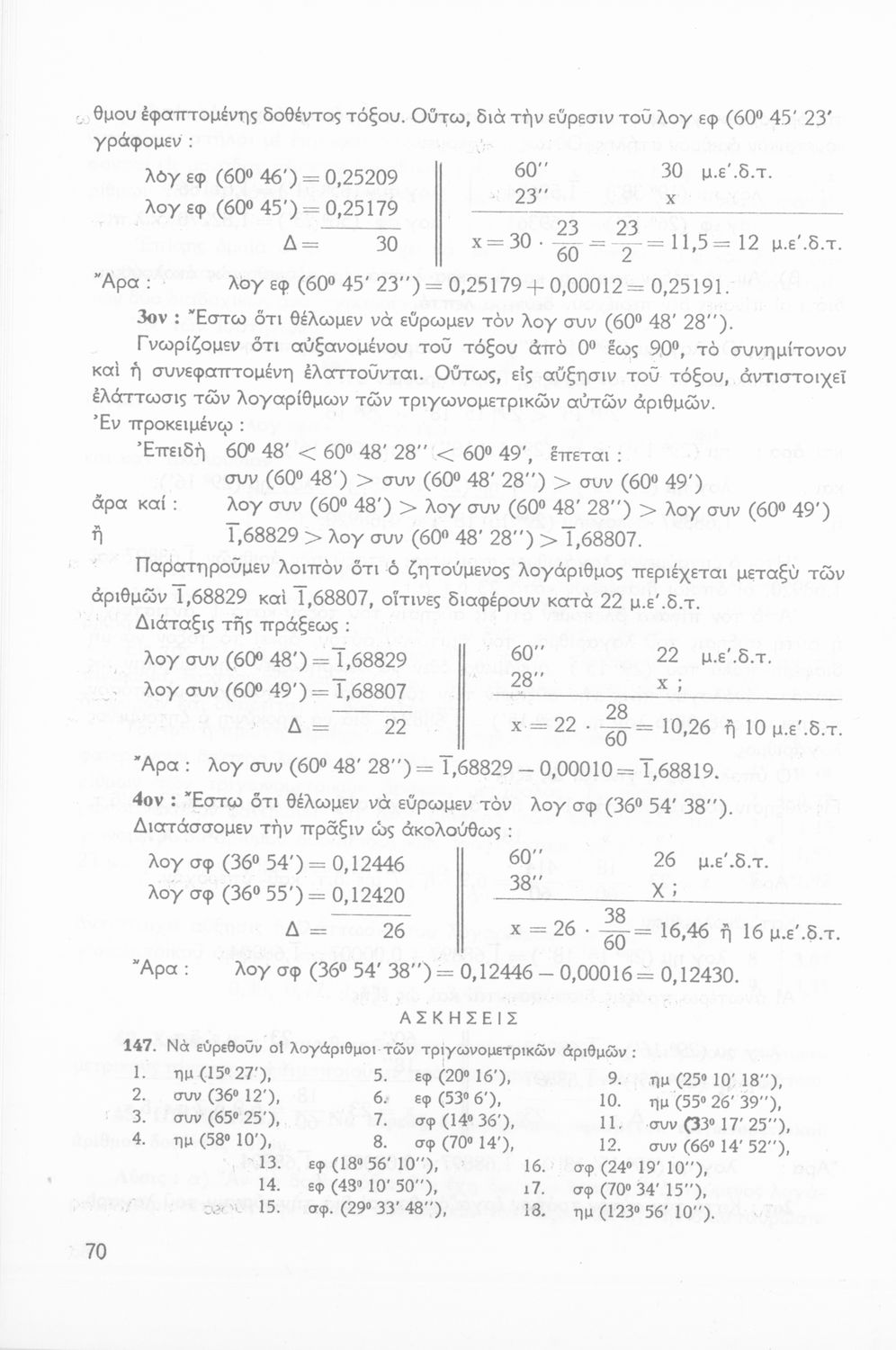 Σχολικό εγχειρίδιο Μαθηματικών για την Ε΄ Γυμνασίου χωρισμένο σε προβλήματα, εφαρμογές και ασκήσεις που εστιάζει στην Τριγωνομετρία.