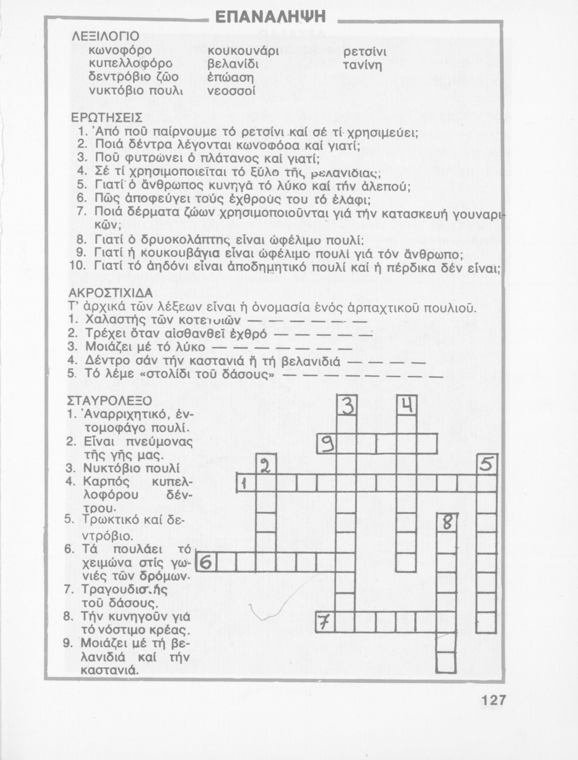 Φυτά και ζώα της πατρίδας μας, Δ΄ Τάξης Δημοτικού
