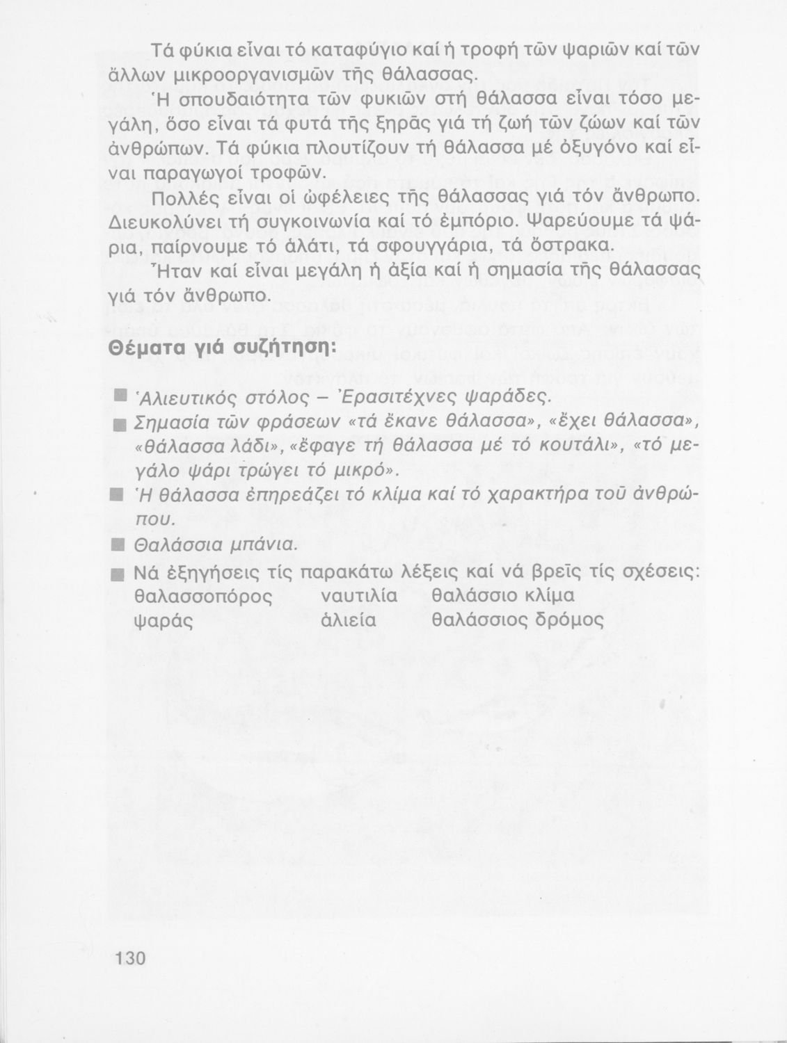 Σχολικό εγχειρίδιο Φυτολογίας για τη Δ' Δημοτικού. Πληροφορεί τους μαθητές για τον τρόπο παρατήρησης του περιβάλλοντος και δίνει στοιχεία για φυτά και ζώα που υπάρχουν στο ελληνικό φυσικό περιβάλλον. Κάθε ενότητα έχει θέματα για συζήτηση ενώ στο τέλος δίνονται πληροφορίες για την υγεία και την υγιεινή των μαθητών.