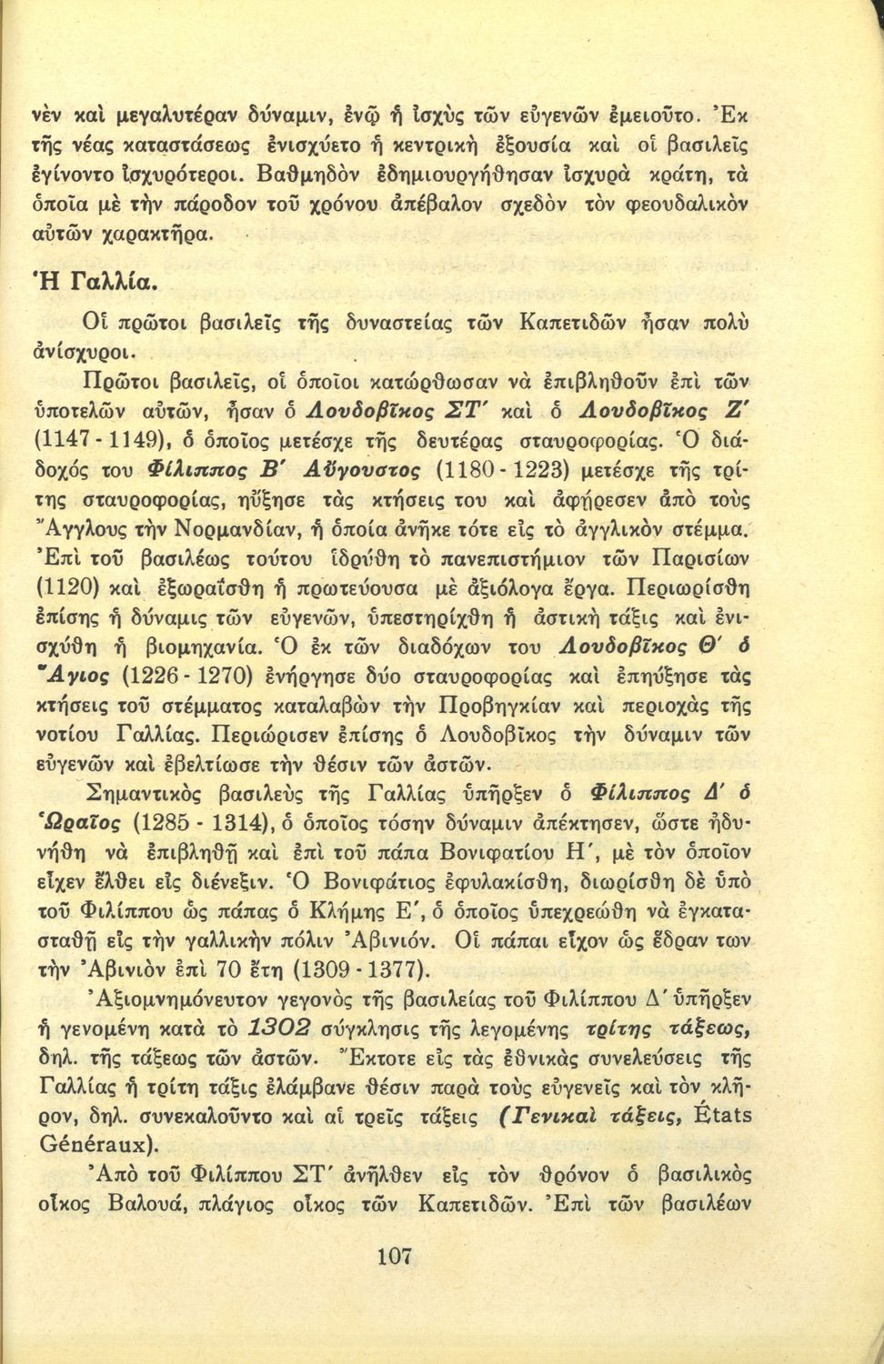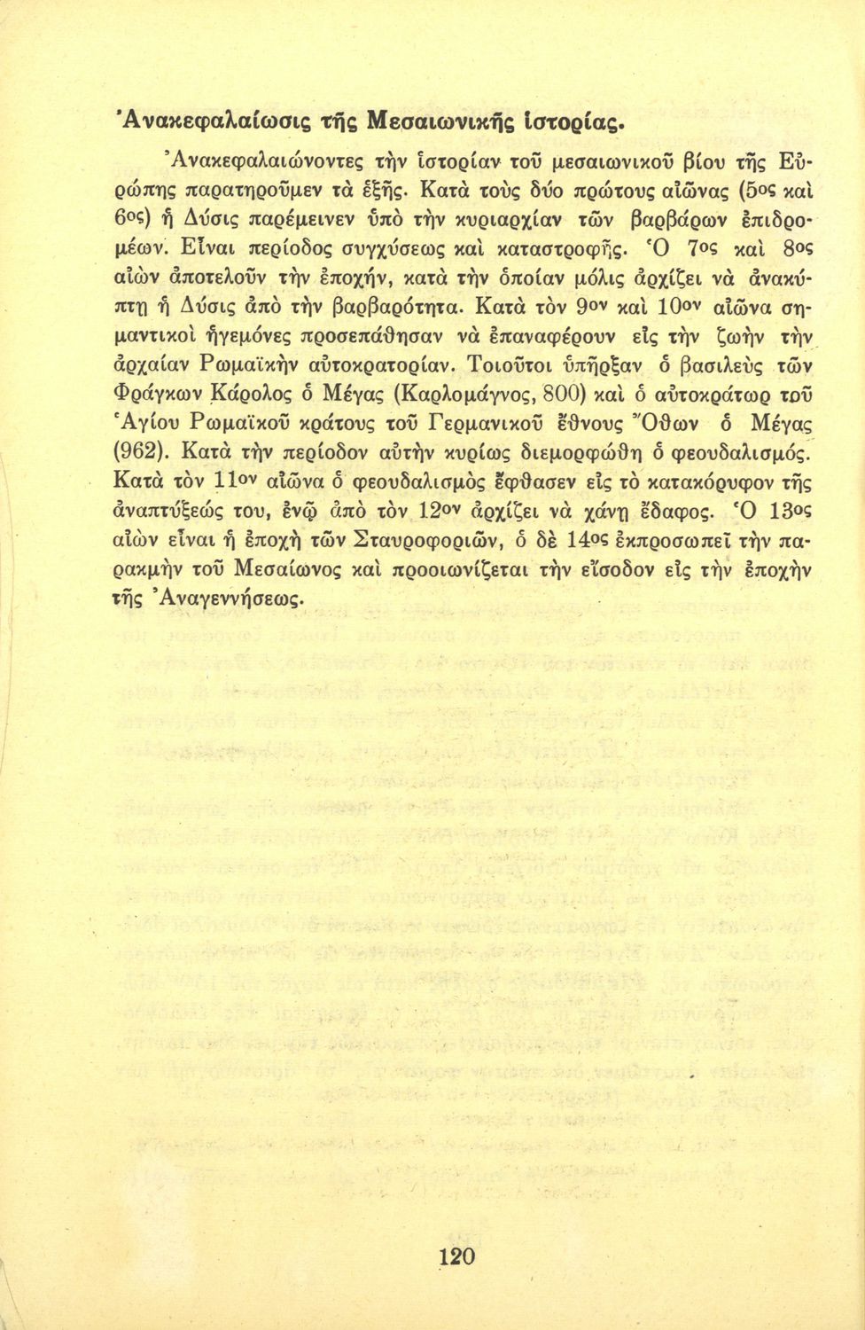 Σχολικό εγχειρίδιο Ιστορίας Β' Ελληνικού Σχολείου που καλύπτει την χρονική περίοδο από τα ελληνιστικά χρόνια, μέχρι την άλωση της Κωνσταντινούπολης από τους Φράγκους. Ο συγγραφέας ήταν Καθηγητής Πανεπιστημίου.