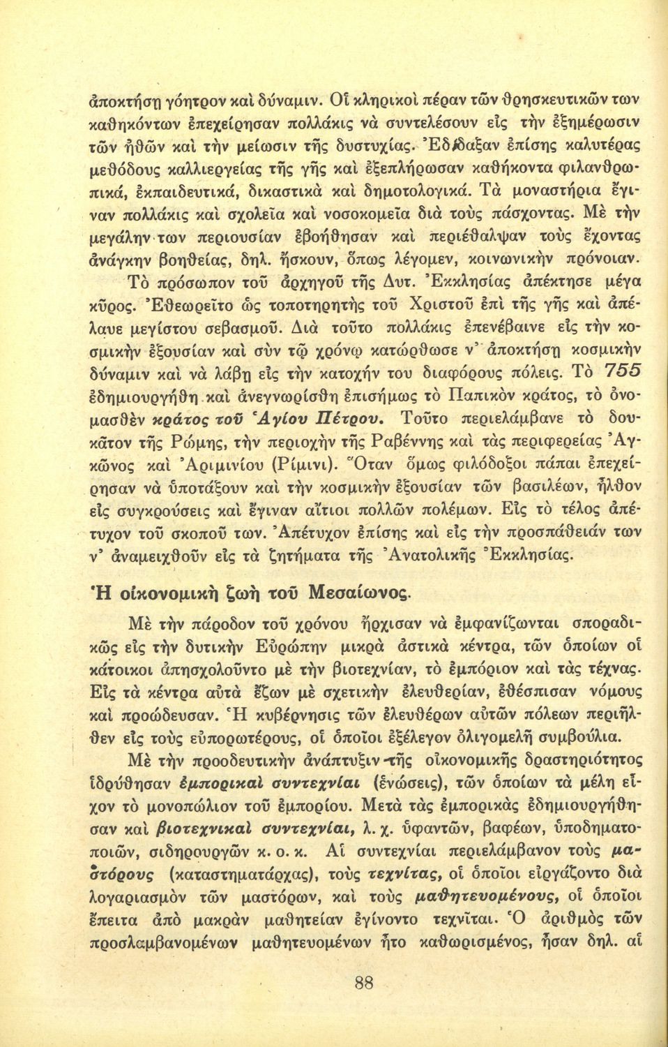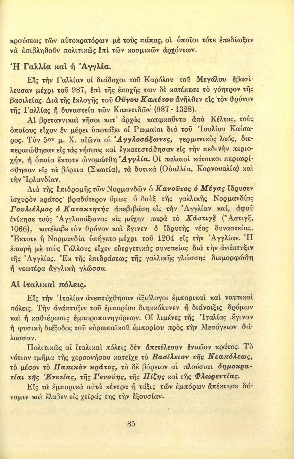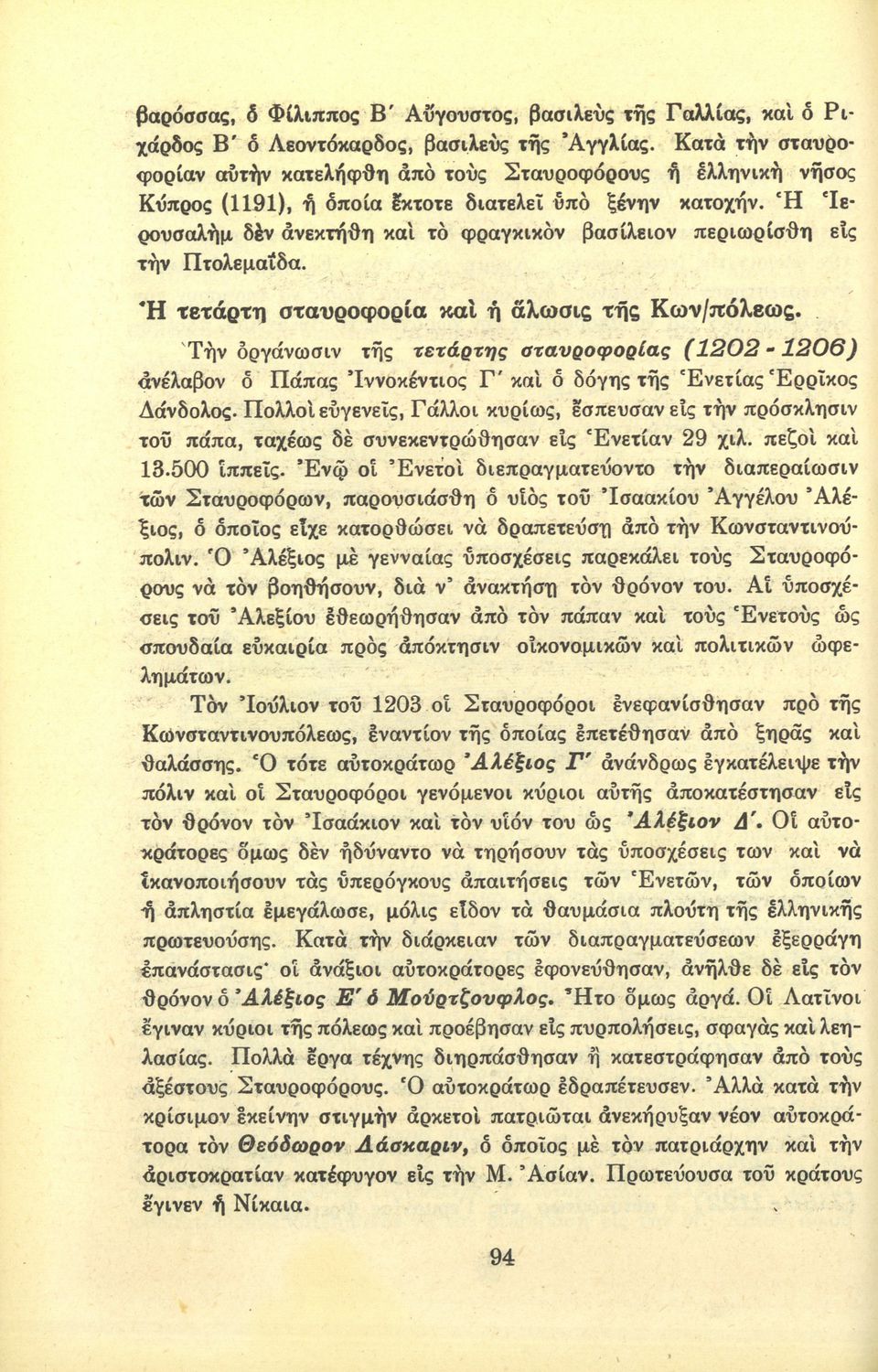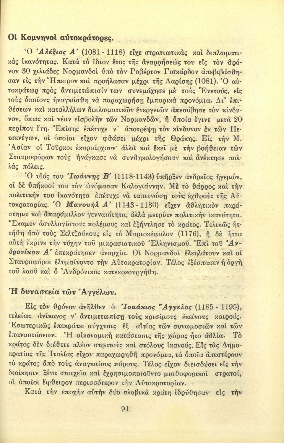 Σχολικό εγχειρίδιο Ιστορίας Β' Ελληνικού Σχολείου που καλύπτει την χρονική περίοδο από τα ελληνιστικά χρόνια, μέχρι την άλωση της Κωνσταντινούπολης από τους Φράγκους. Ο συγγραφέας ήταν Καθηγητής Πανεπιστημίου.