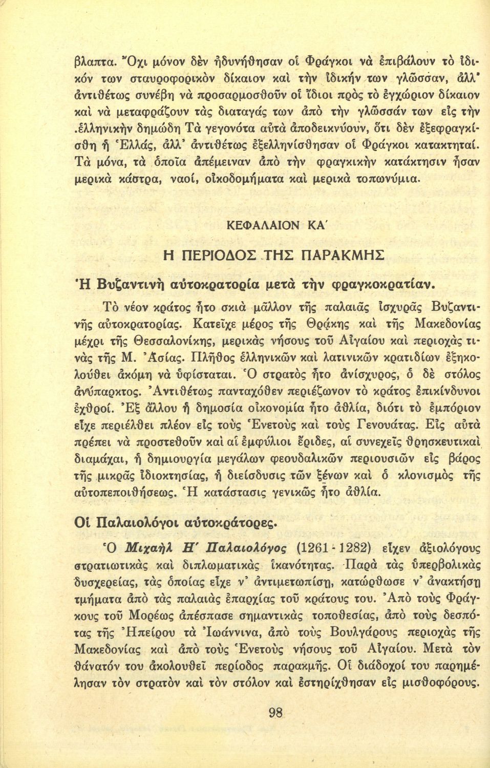 Σχολικό εγχειρίδιο Ιστορίας Β' Ελληνικού Σχολείου και Παρθεναγωγείου που καλύπτει την περίοδο από την ίδρυση της Μακεδονικής Ηγεμονίας μέχρι την άλωση της Κωνσταντινούπολης από τους Φράγκους.