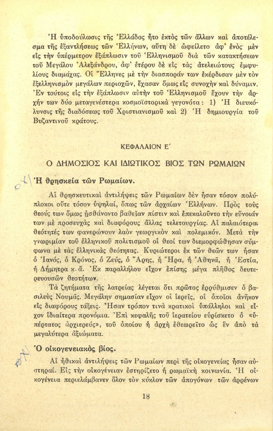 Ιστορία ρωμαϊκή και βυζαντινή δια την Β΄ τάξιν των Γυμνασίων