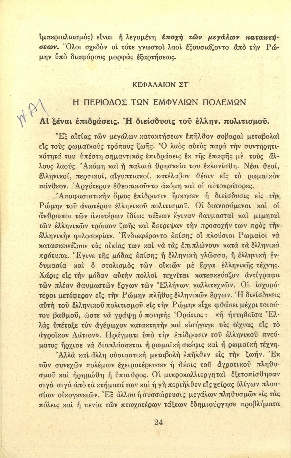 Σχολικό εγχειρίδιο Ιστορίας Β΄ Γυμνασίου που καλύπτει την περίοδο από την κατάρρευση της Μακεδονικής Ηγεμονίας μέχρι τα χρόνια του Μ. Κωνσταντίνου και του Θεοδοσίου του Μεγάλου. Περιέχει χρονολογικό πίνακα των