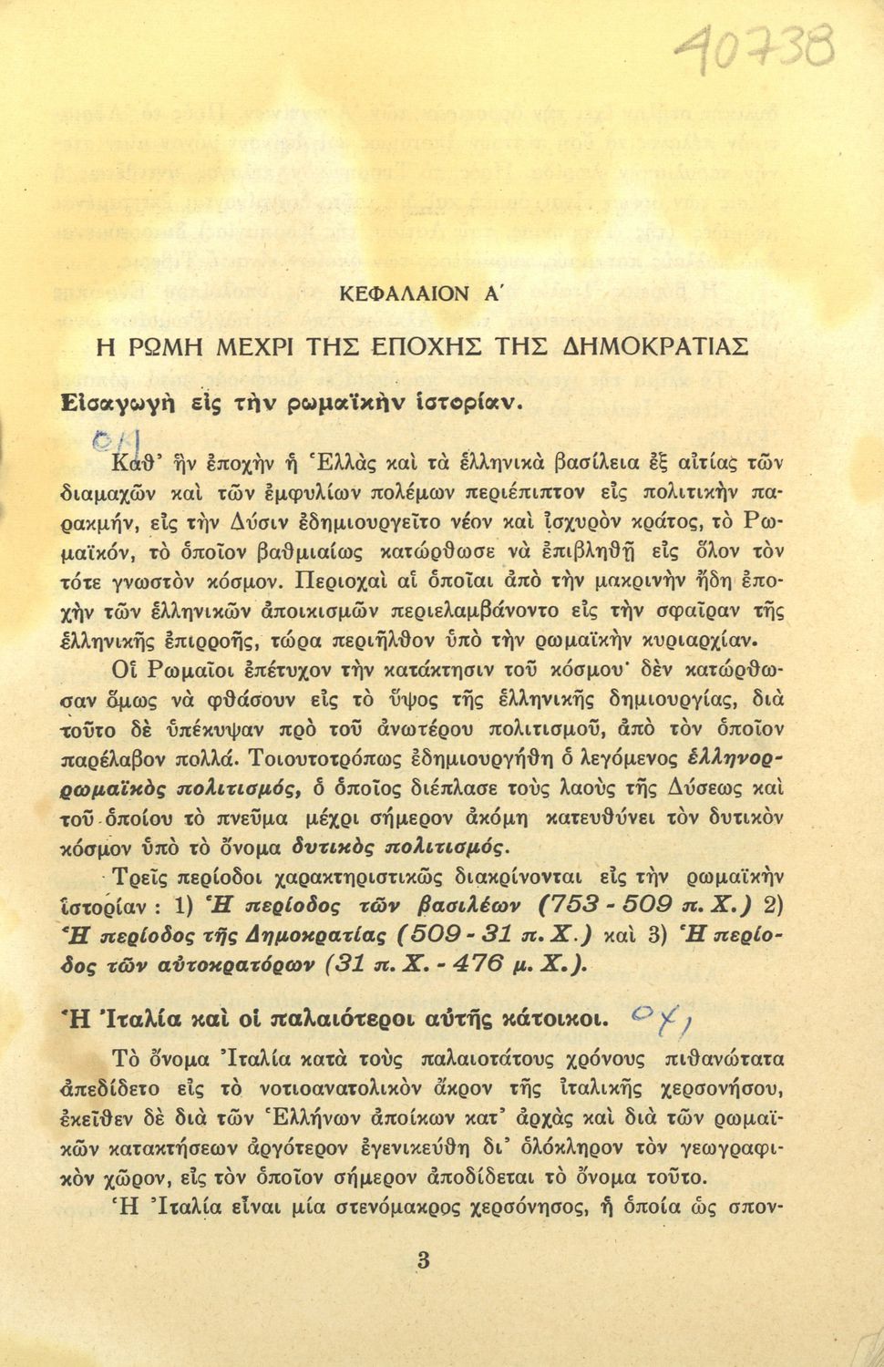 Τίτλος: Ιστορία ρωμαϊκή και βυζαντινή δια την Β΄ τάξιν των Γυμνασίων