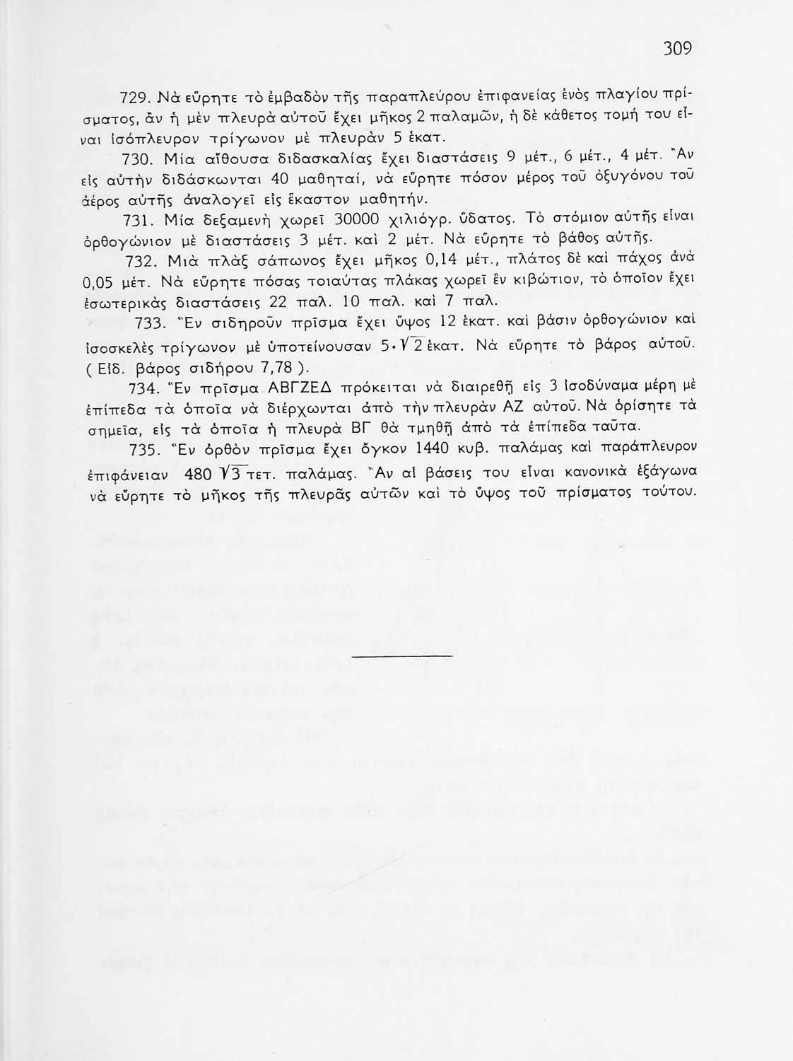 Σχολικό εγχειρίδιο Γεωμετρίας για τις Γ΄, Δ΄, Ε΄, ΣΤ΄ Γυμνασίου που περιλαμβάνει θεωρία και ασκήσεις και είναι χωρισμένο σε Επιπεδομετρία και Στερεομετρία. Φέρει το σύμβολο της δικτατορίας.