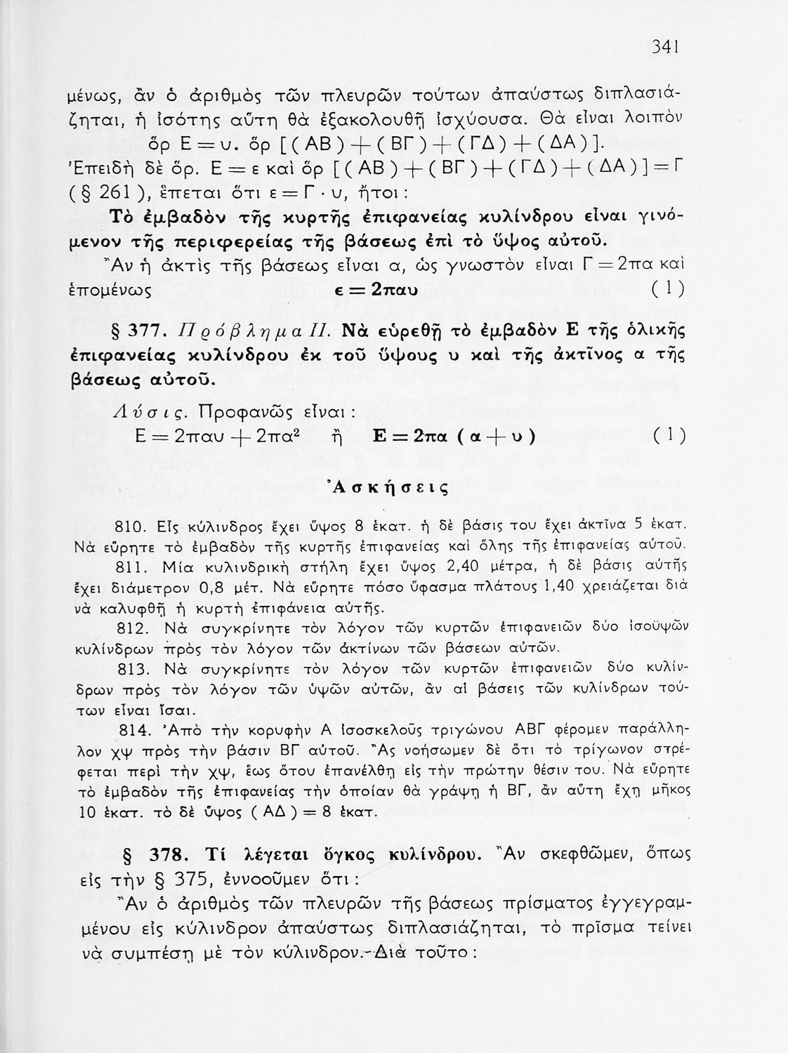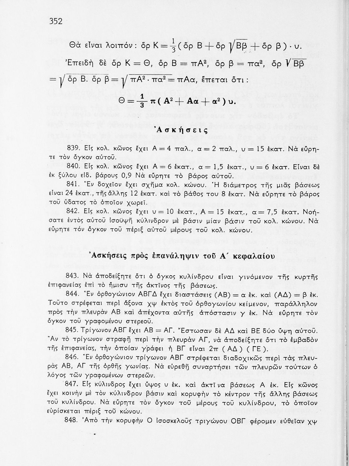 Σχολικό εγχειρίδιο Γεωμετρίας για τις Γ΄, Δ΄, Ε΄, ΣΤ΄ Γυμνασίου που περιλαμβάνει θεωρία και ασκήσεις και είναι χωρισμένο σε Επιπεδομετρία και Στερεομετρία.