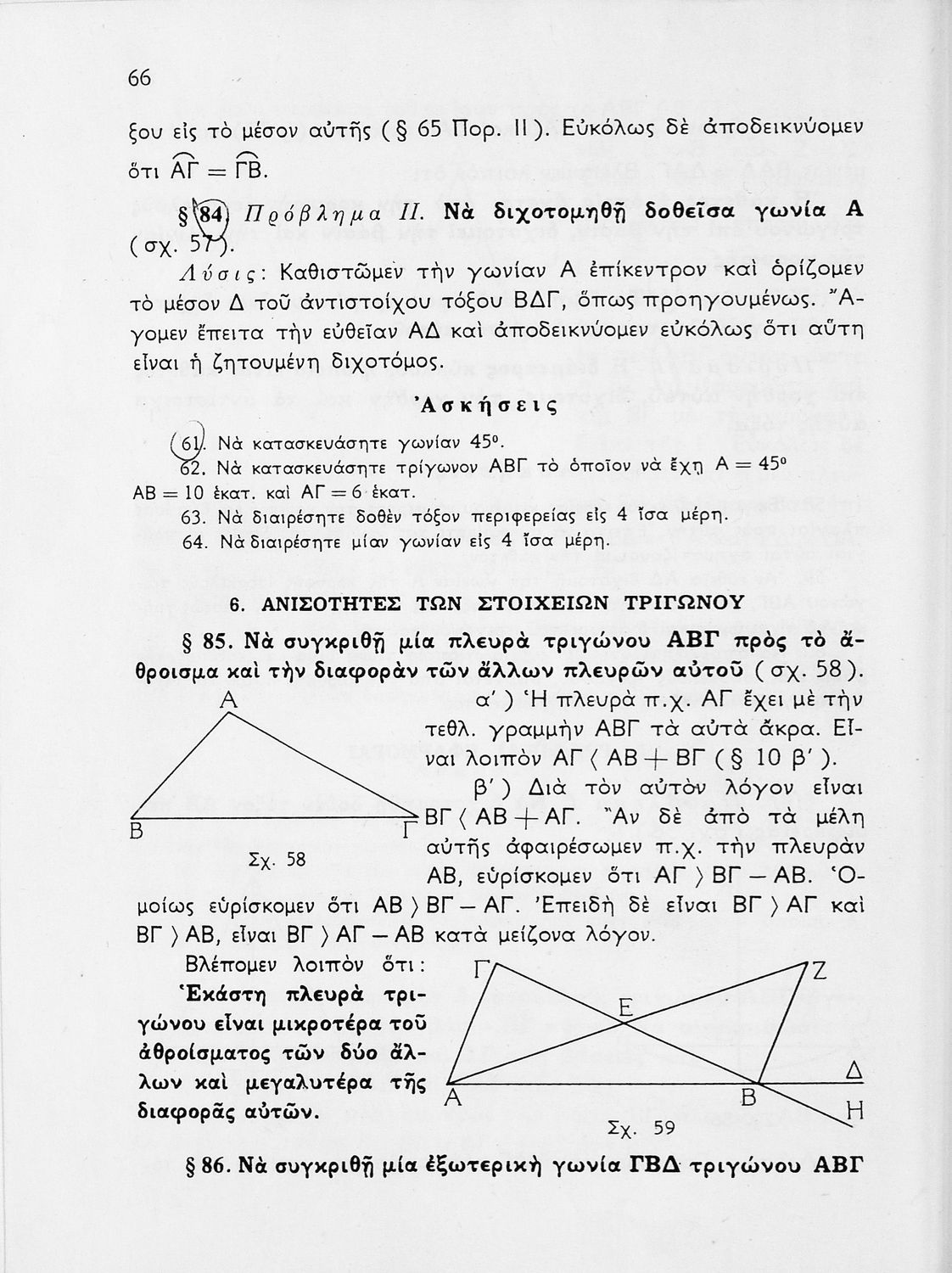 Σχολικό εγχειρίδιο Γεωμετρίας για τις Γ΄, Δ΄, Ε΄, ΣΤ΄ Γυμνασίου που περιλαμβάνει θεωρία και ασκήσεις και είναι χωρισμένο σε Επιπεδομετρία και Στερεομετρία.