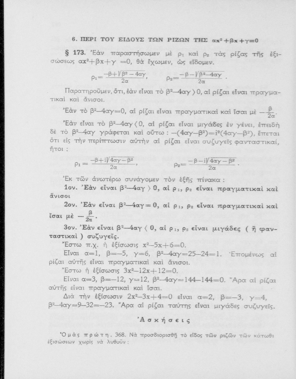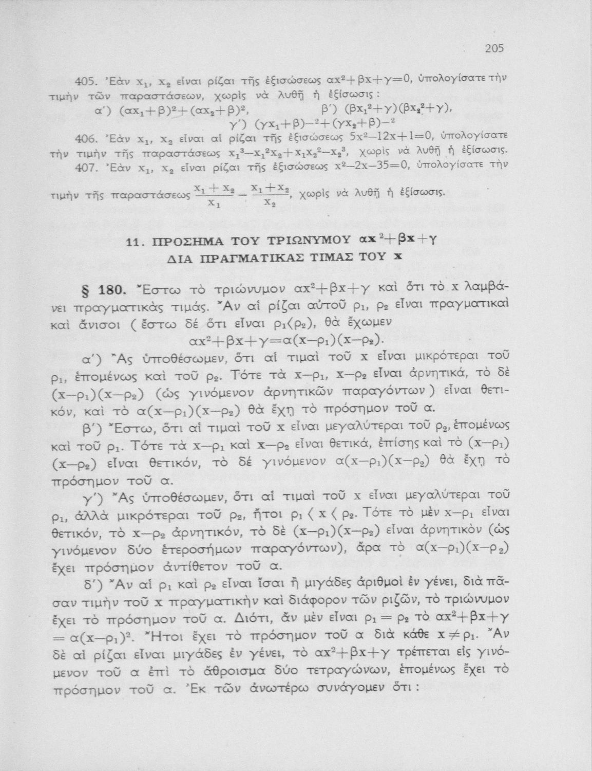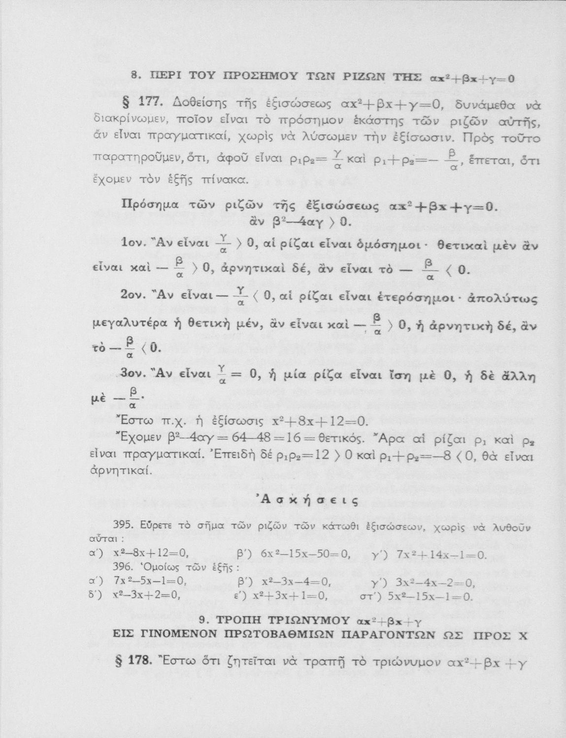 Άλγεβρα δια τας ανωτέρας τάξεις των Γυμνασίων