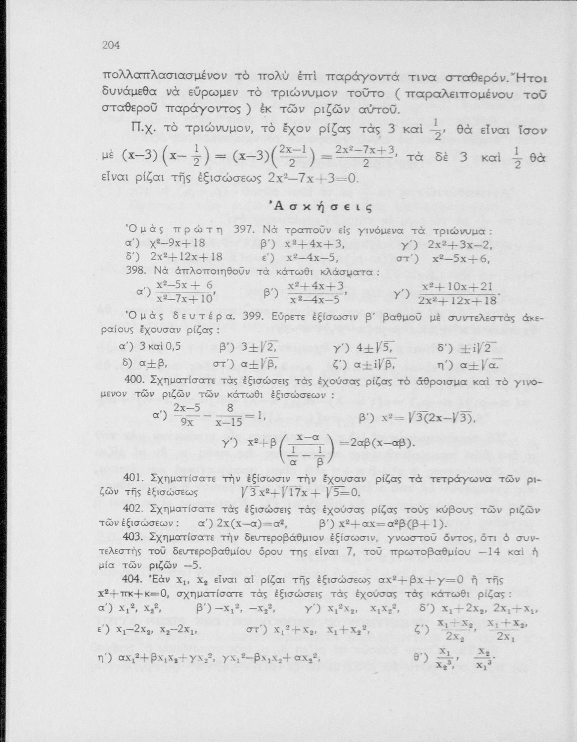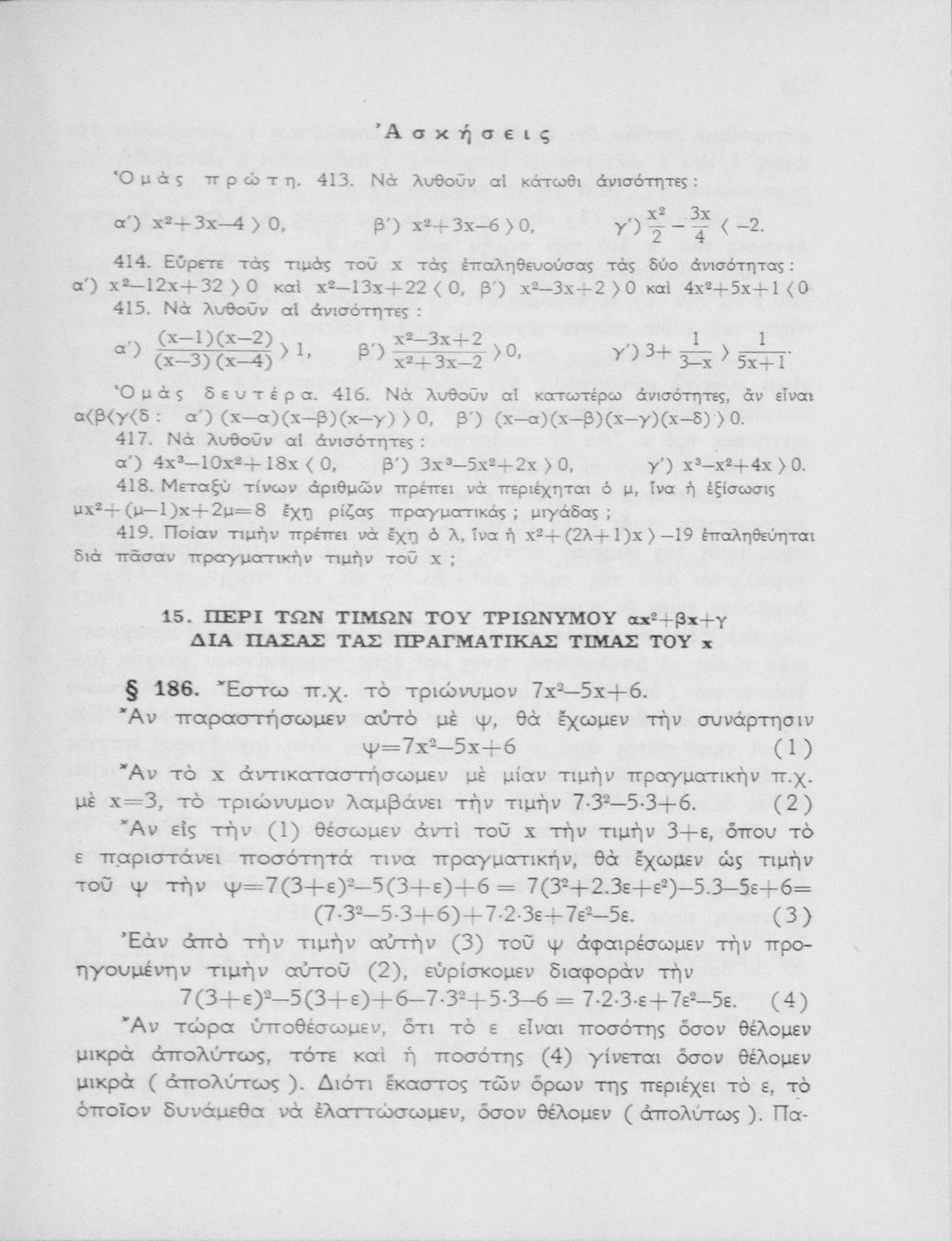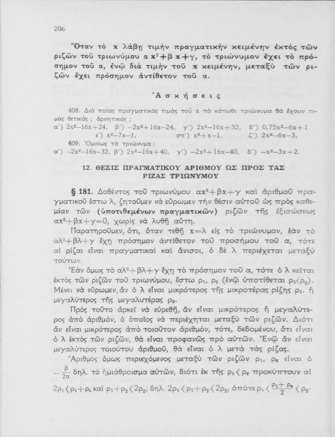Άλγεβρα δια τας ανωτέρας τάξεις των Γυμνασίων