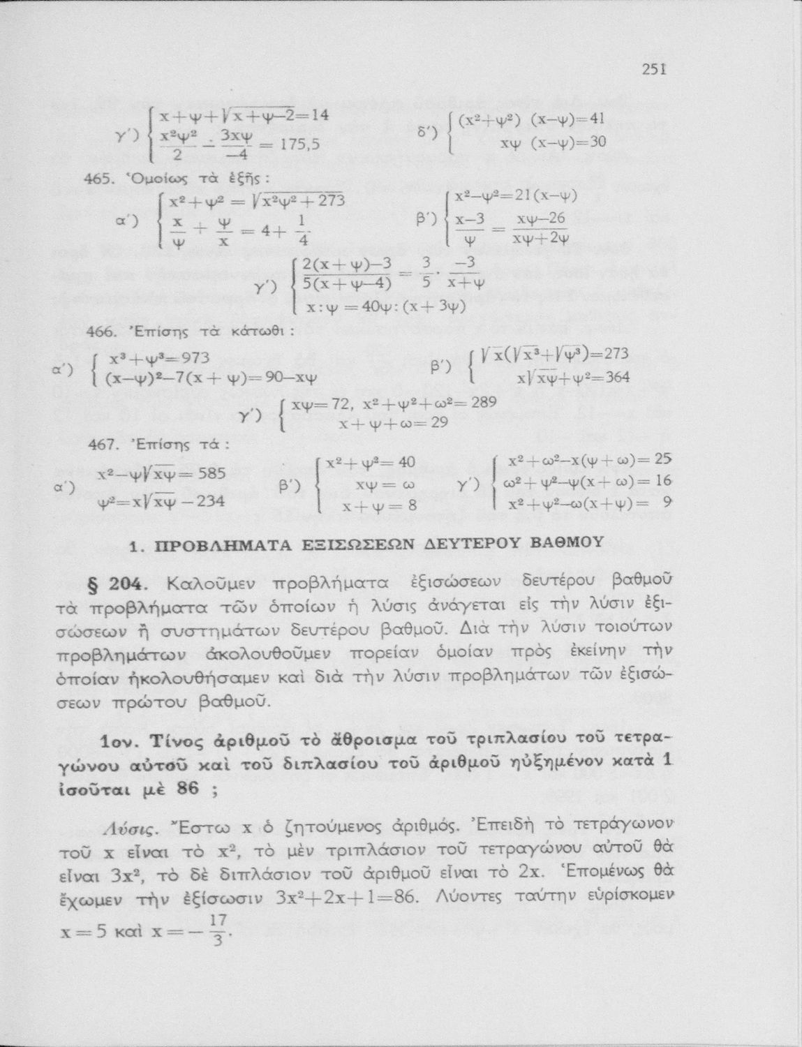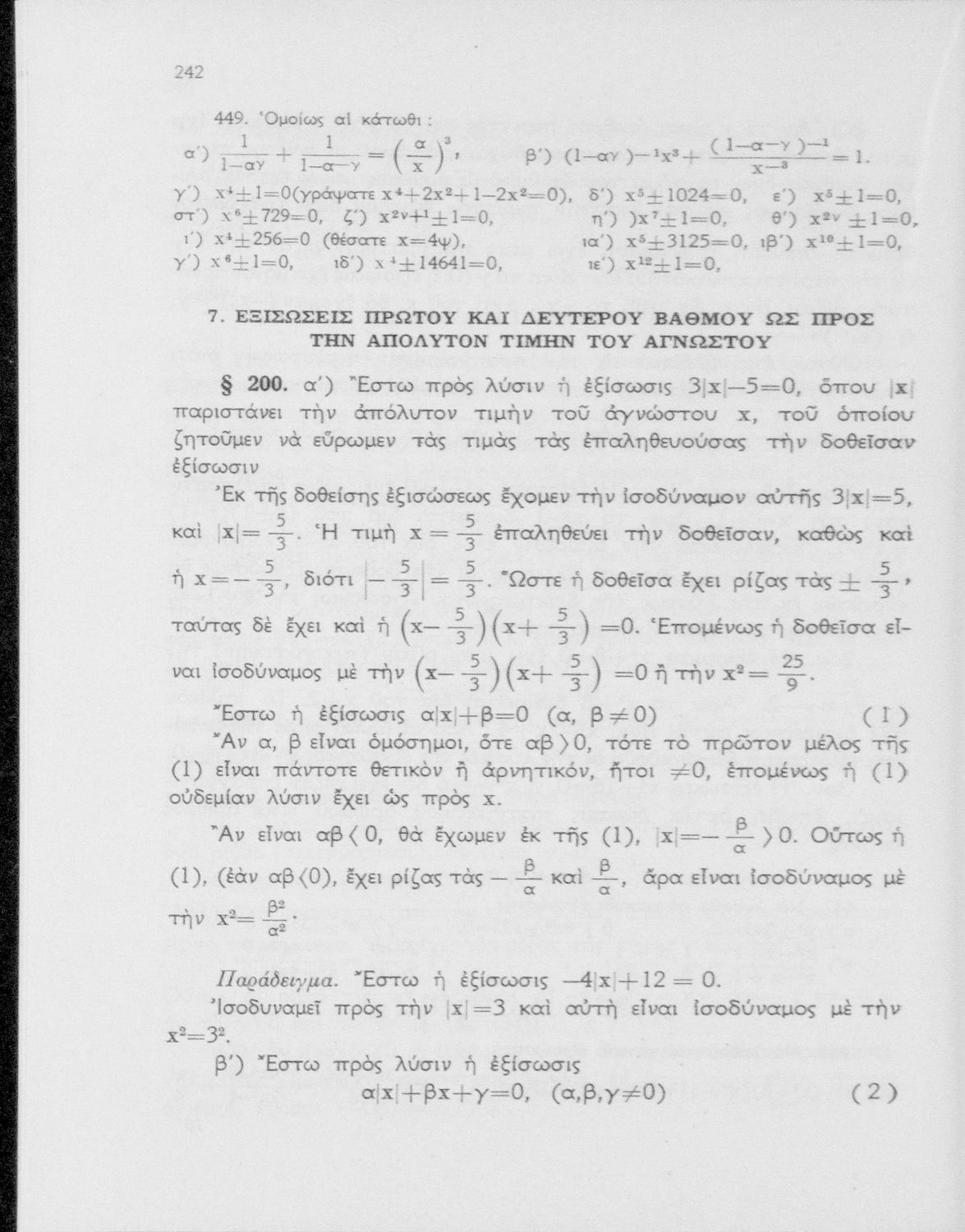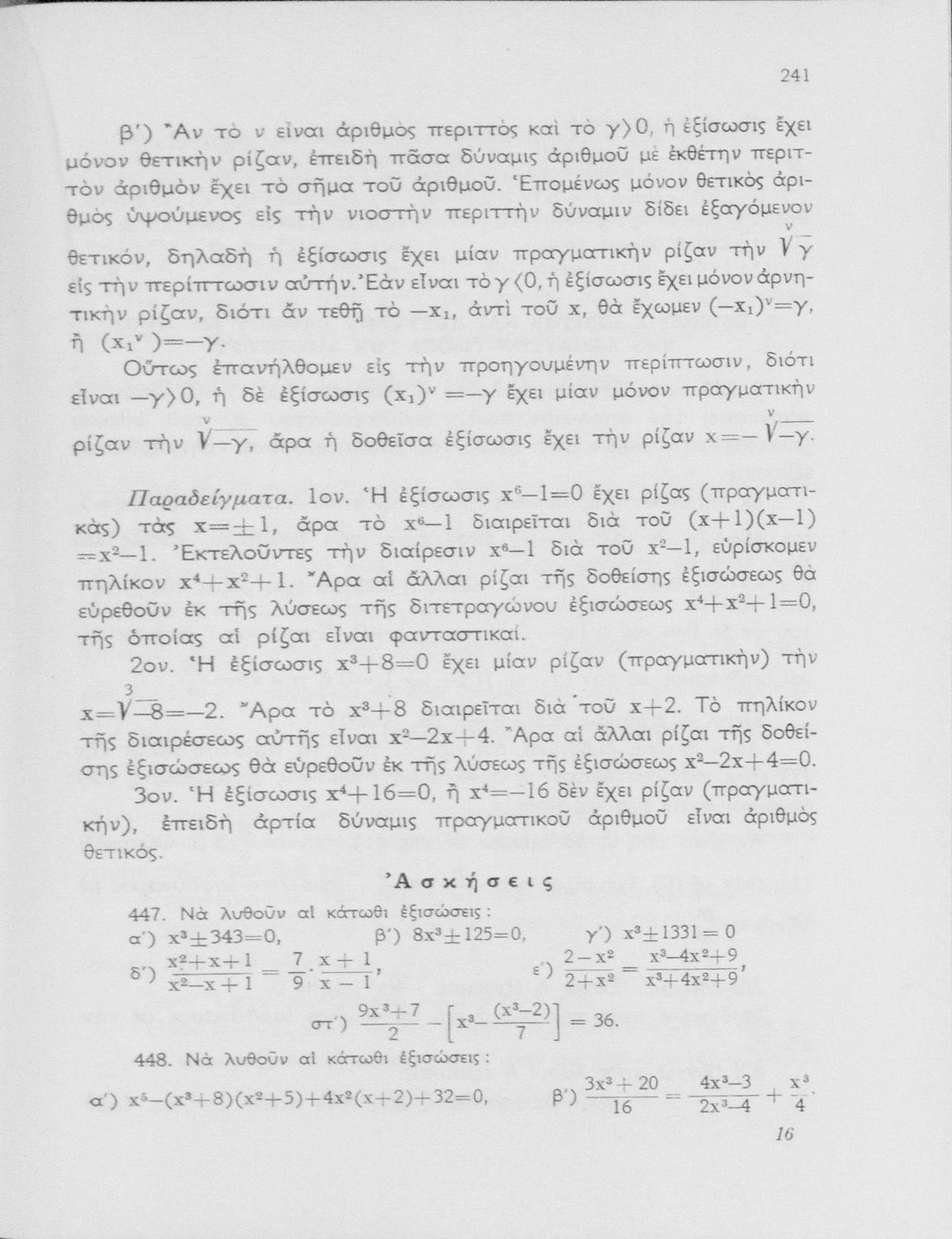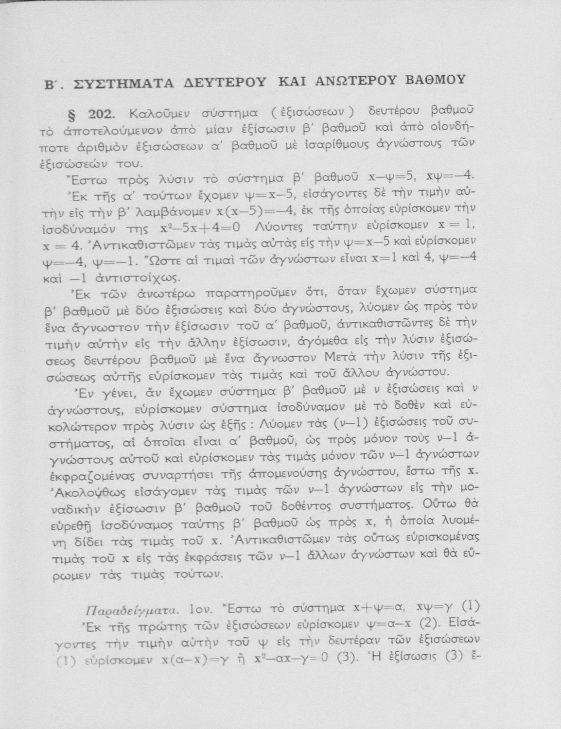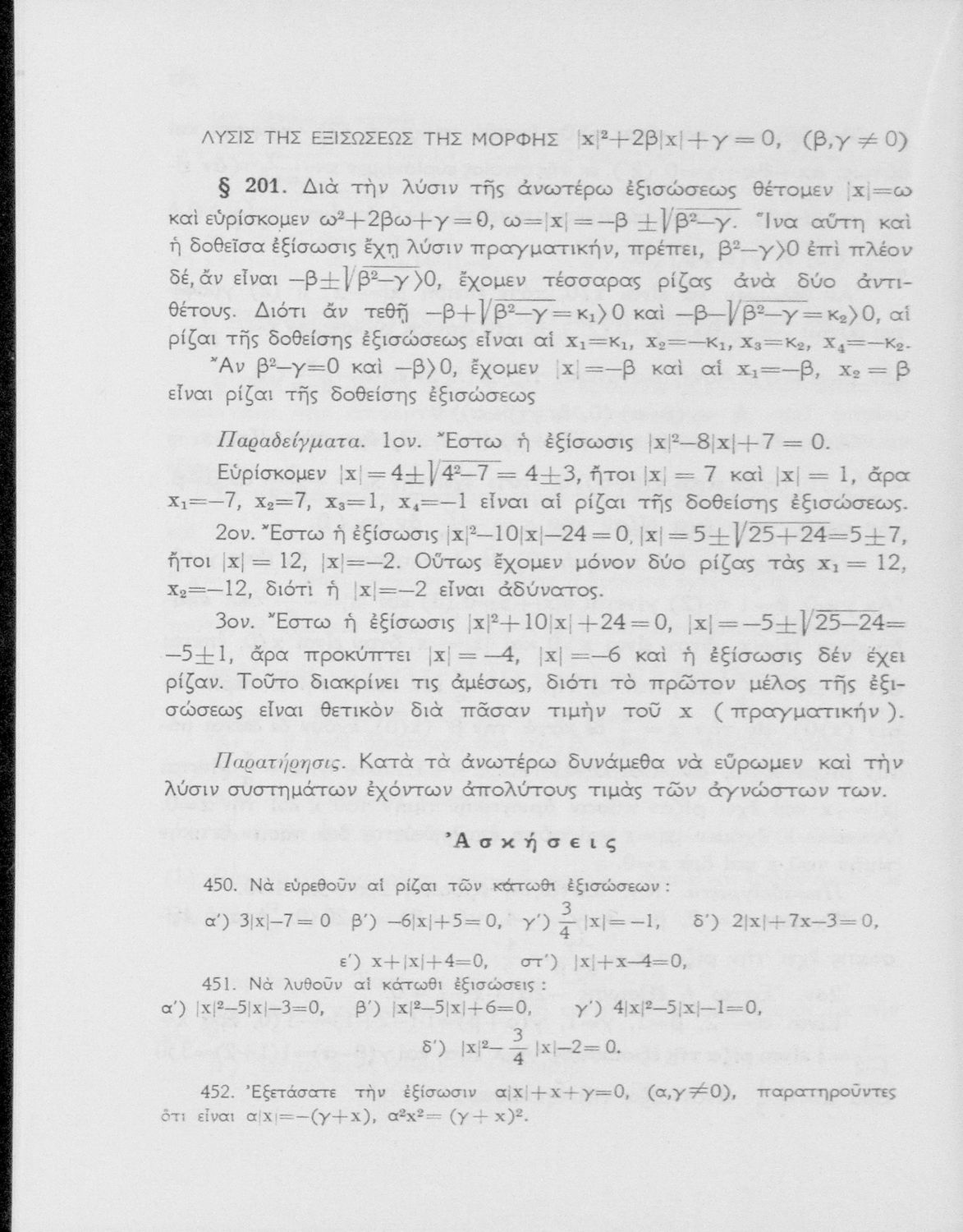 Άλγεβρα δια τας ανωτέρας τάξεις των Γυμνασίων