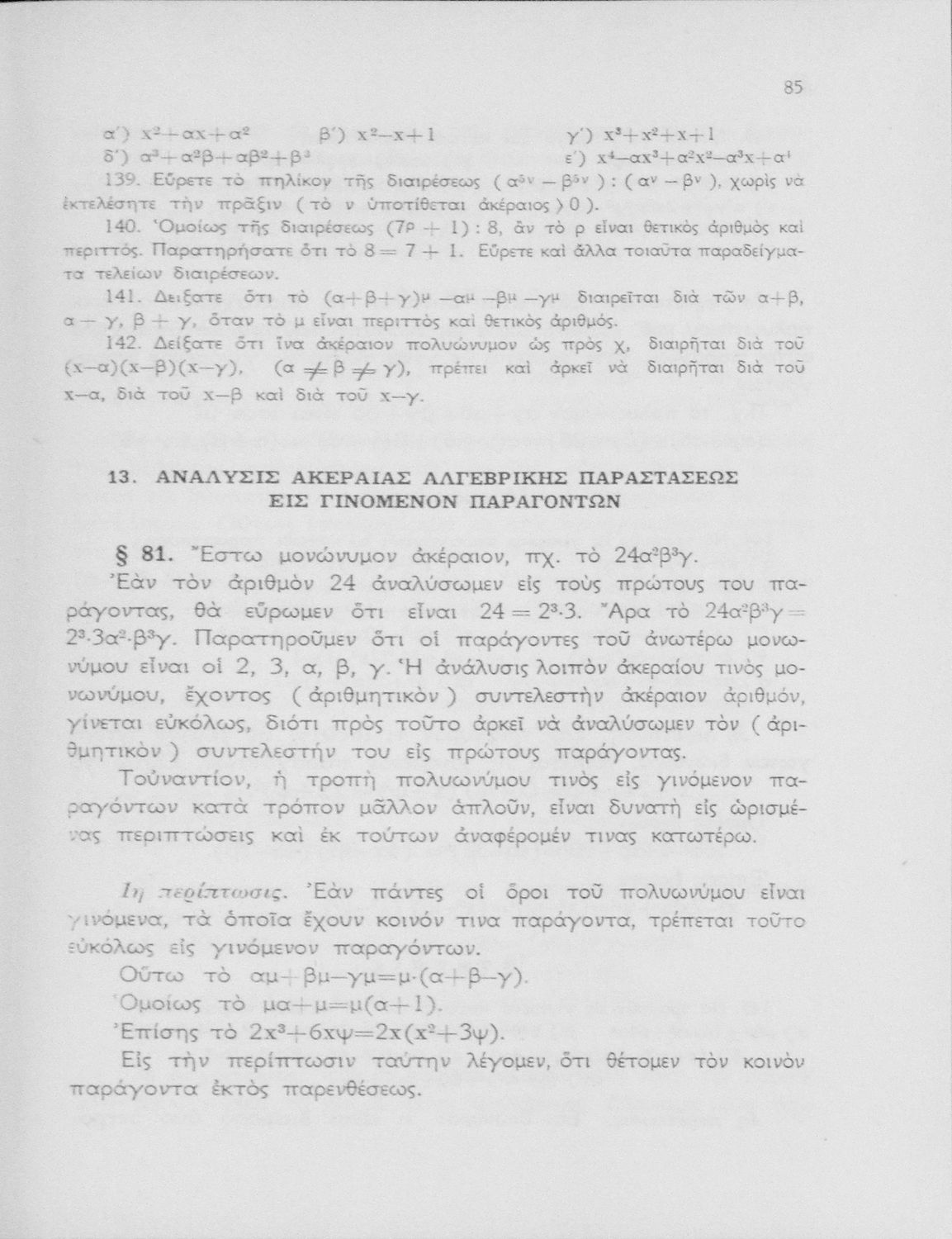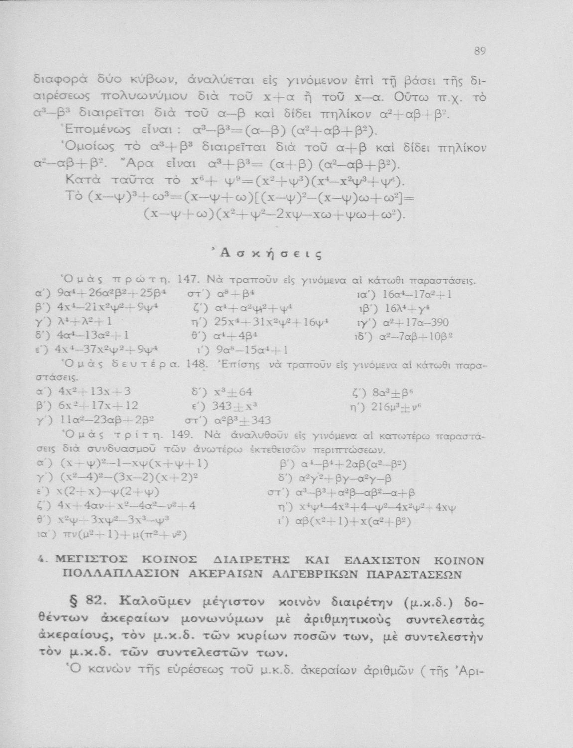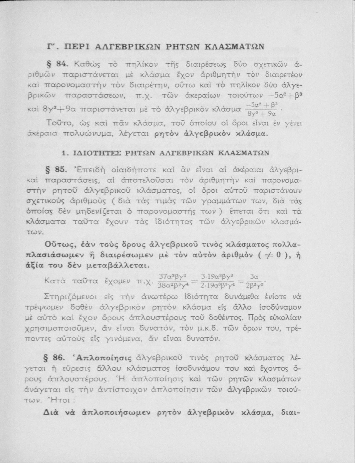 Άλγεβρα δια τας ανωτέρας τάξεις των Γυμνασίων