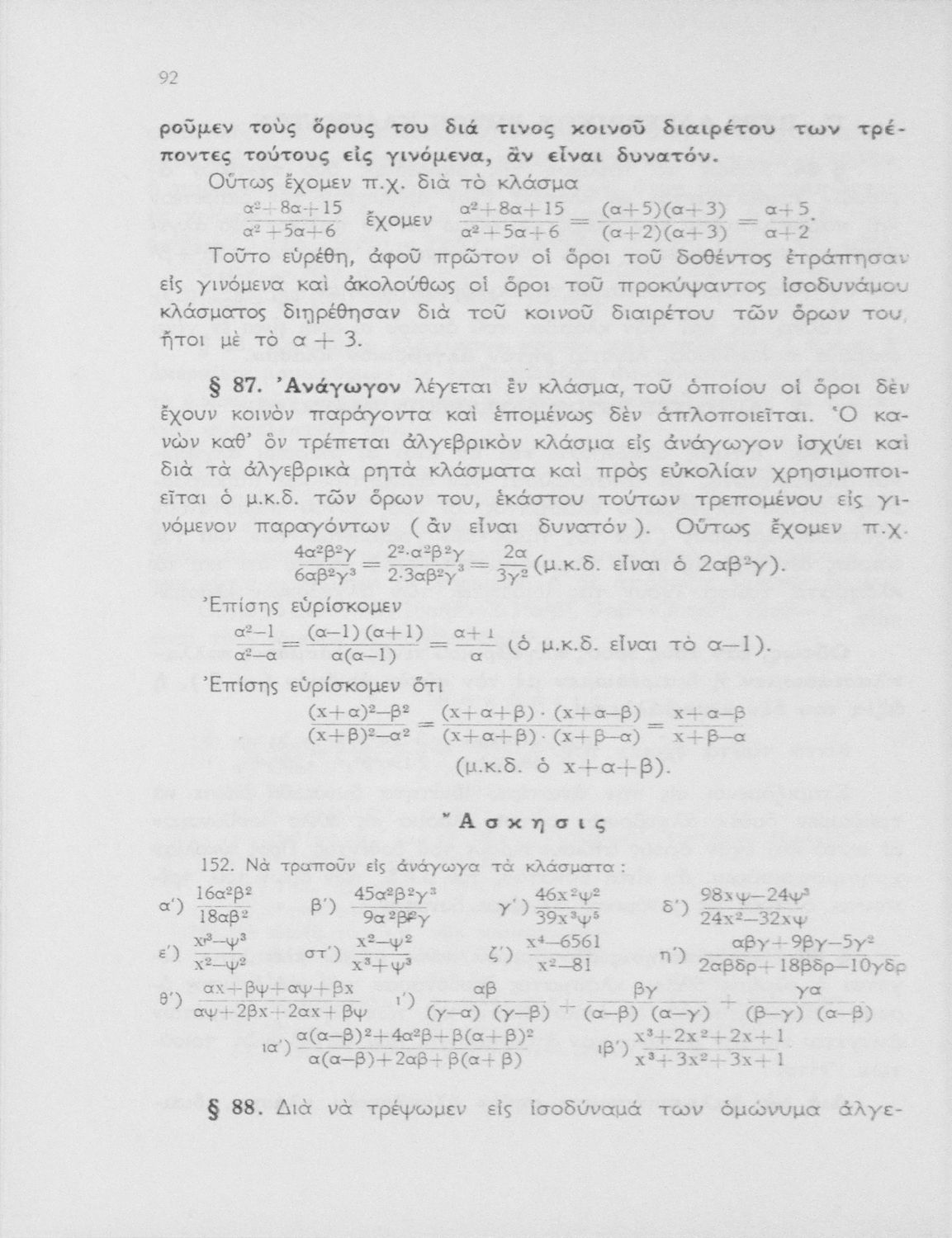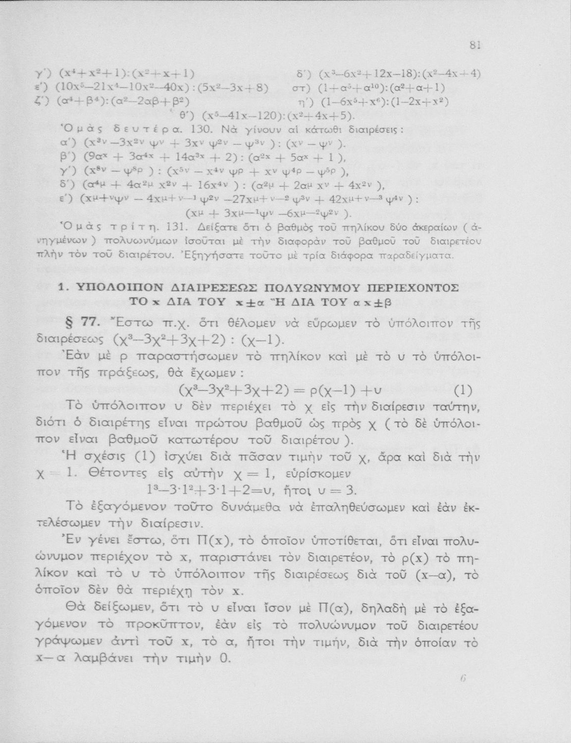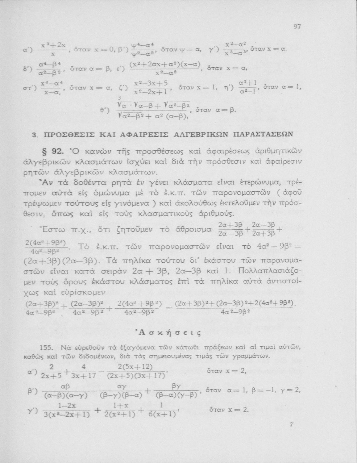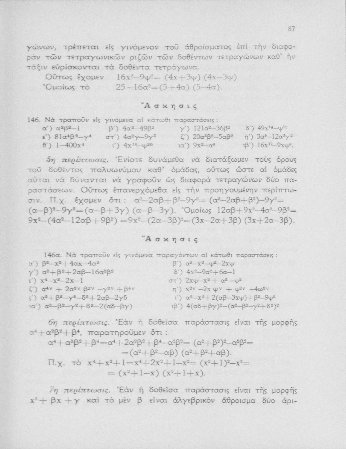 Άλγεβρα δια τας ανωτέρας τάξεις των Γυμνασίων