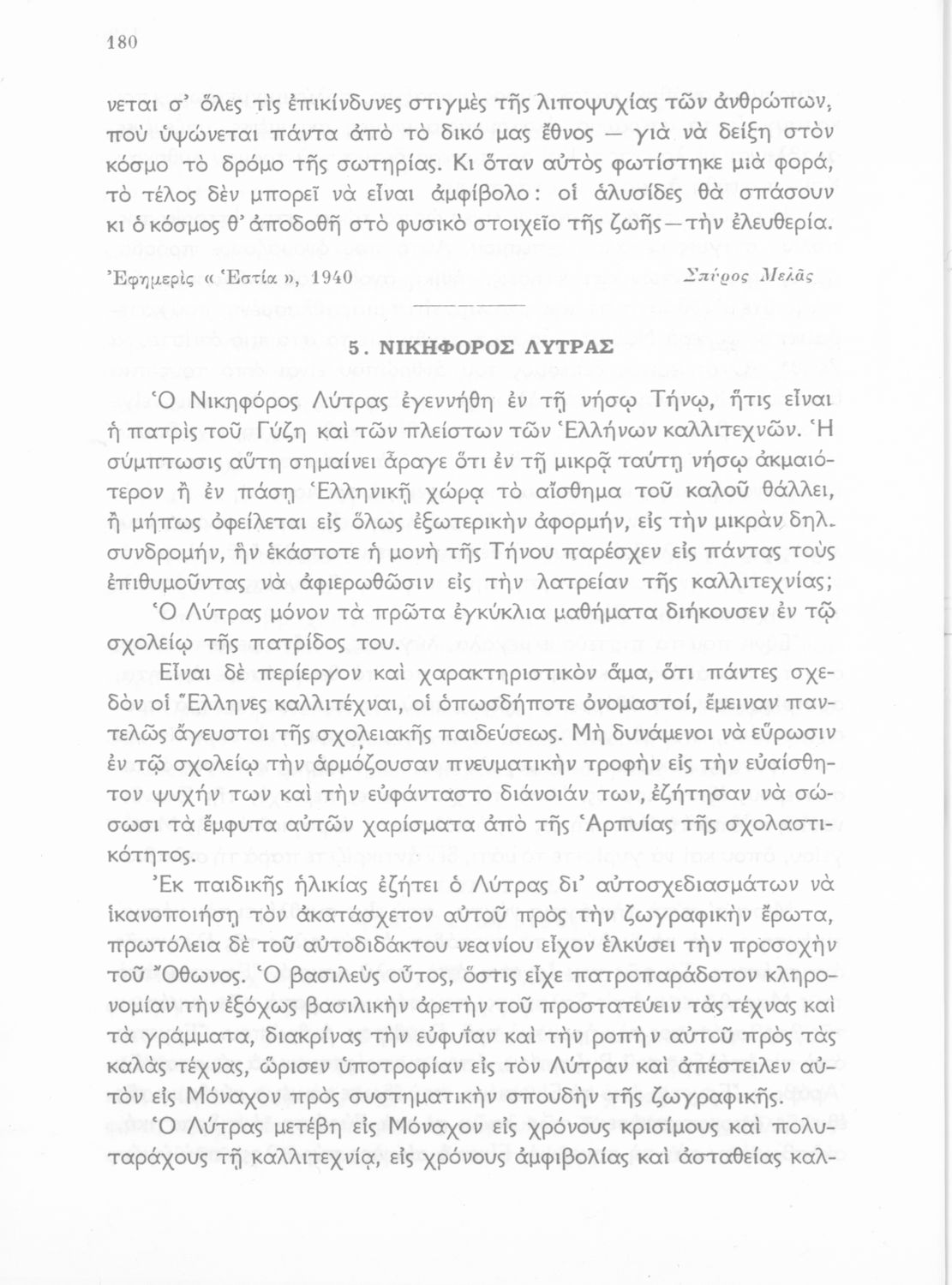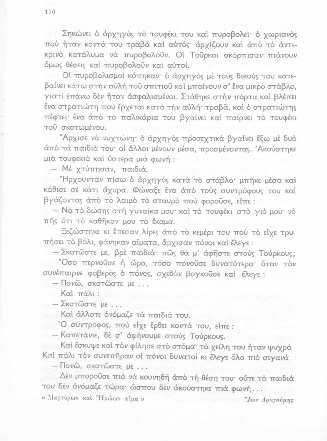 Σχολικό εγχειρίδιο Νέων Ελληνικών Ε΄ Γυμνασίου που περιέχει πεζά και ποιήματα συγγραφέων της βυζαντινής και μεταβυζαντινής περιόδου πατριωτικού και θρησκευτικού περιεχομένου. Περιλαμβάνει και κείμενα Ελλήνων συγγραφέων και δημοτικά τραγούδια πατριωτικού περιεχομένου και παράρτημα με βιογραφίες των συγγραφέων και λεξιλόγιο.