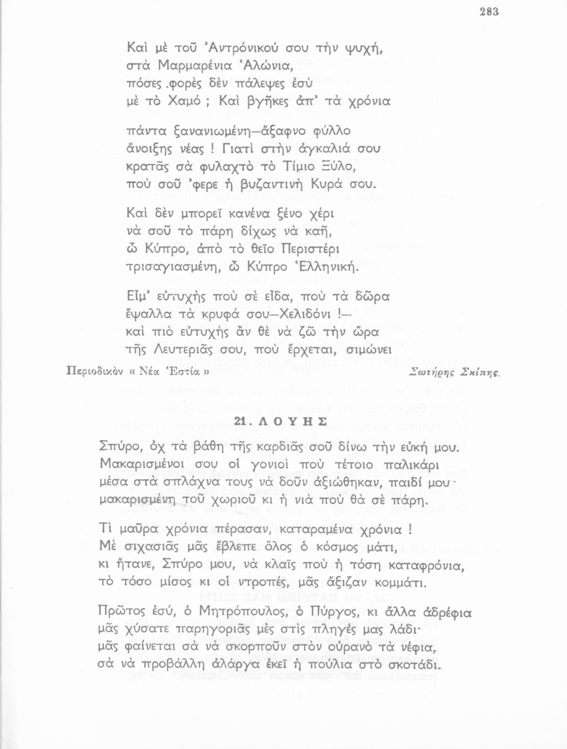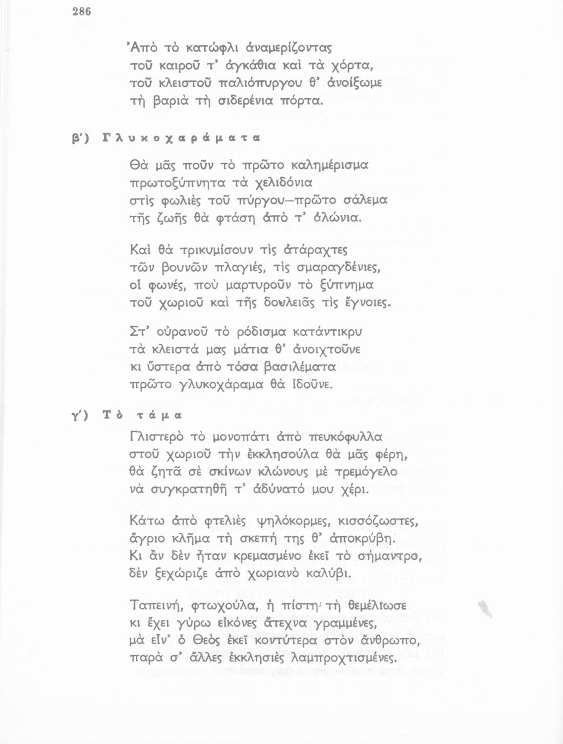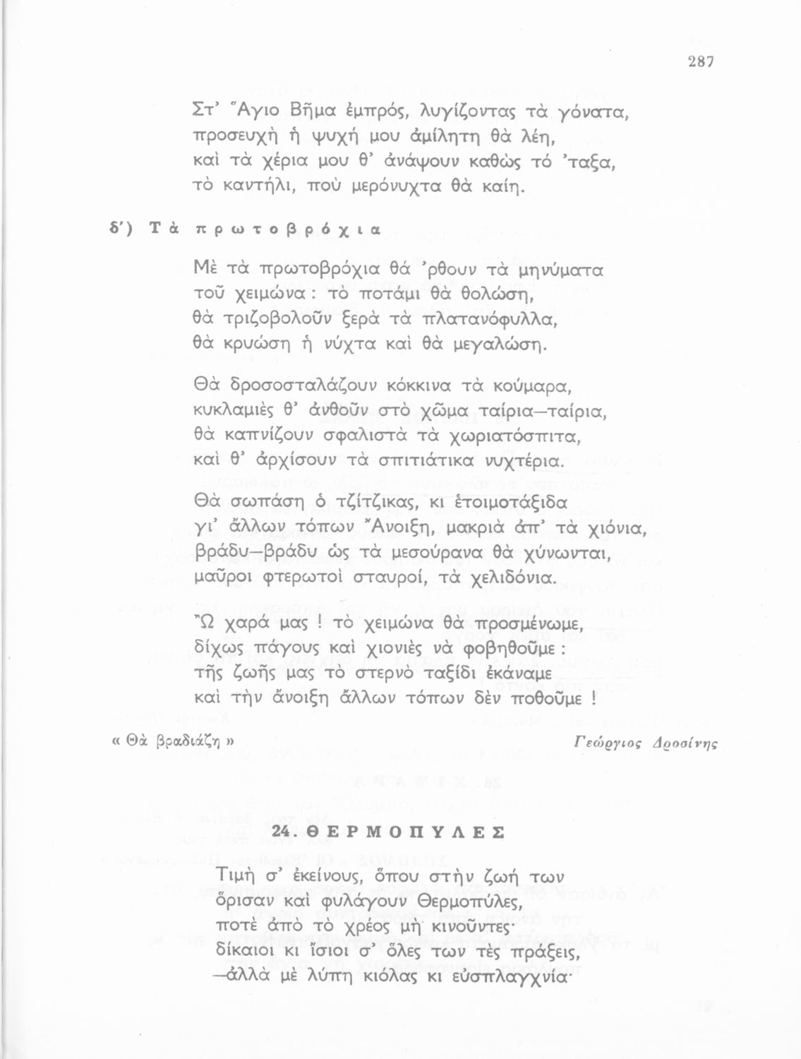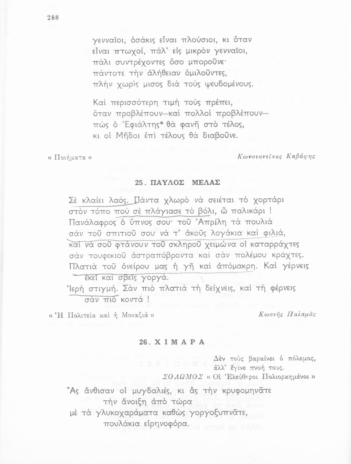 Σχολικό εγχειρίδιο Νέων Ελληνικών Ε΄ Γυμνασίου που περιέχει πεζά και ποιήματα συγγραφέων της βυζαντινής και μεταβυζαντινής περιόδου πατριωτικού και θρησκευτικού περιεχομένου. Περιλαμβάνει και πεζά και ποιήματα