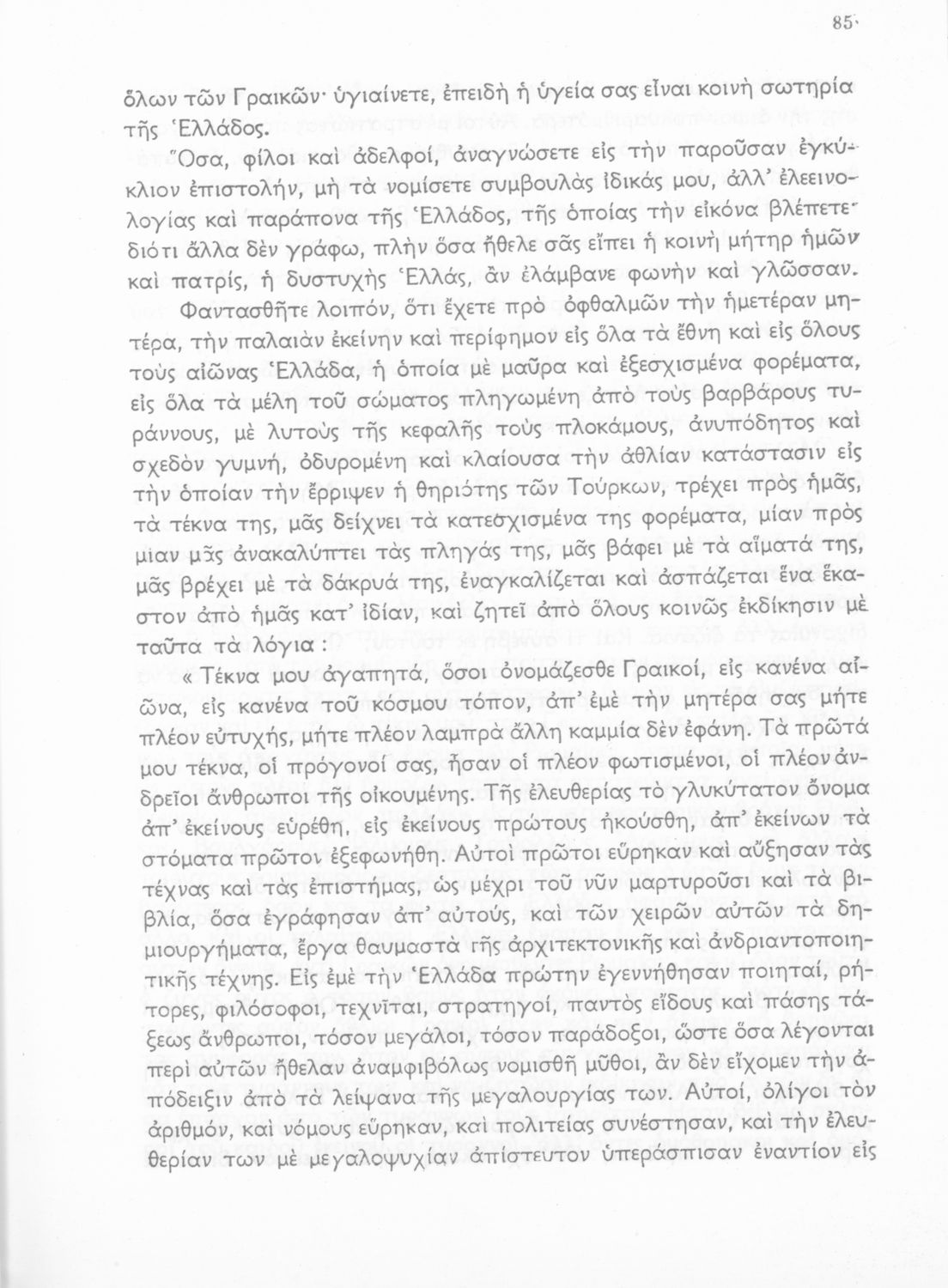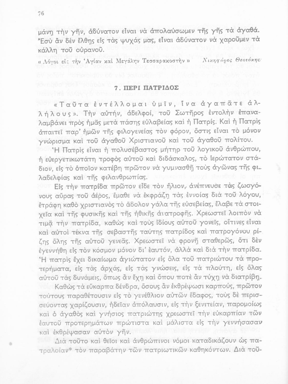 Σχολικό εγχειρίδιο Νέων Ελληνικών Ε΄ Γυμνασίου που περιέχει πεζά και ποιήματα συγγραφέων της βυζαντινής και μεταβυζαντινής περιόδου πατριωτικού και θρησκευτικού περιεχομένου. Περιλαμβάνει και κείμενα Ελλήνων συγγραφέων και δημοτικά τραγούδια πατριωτικού περιεχομένου και παράρτημα με βιογραφίες των συγγραφέων και λεξιλόγιο.