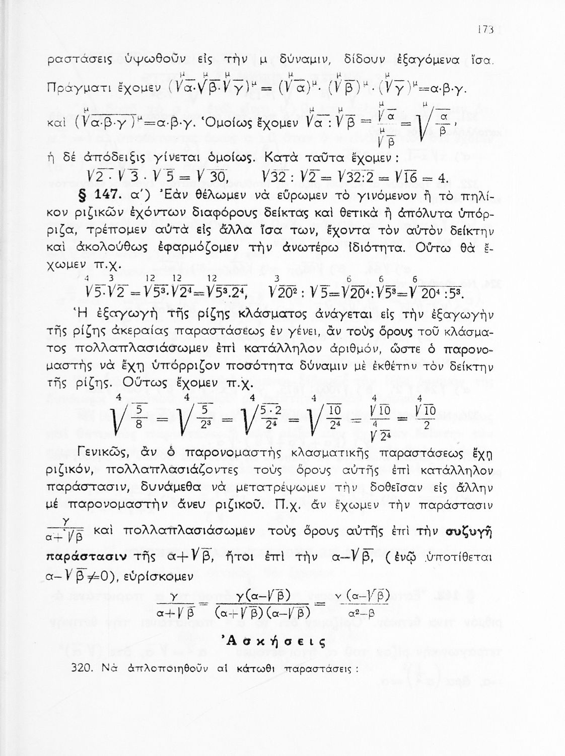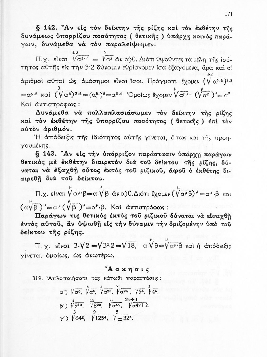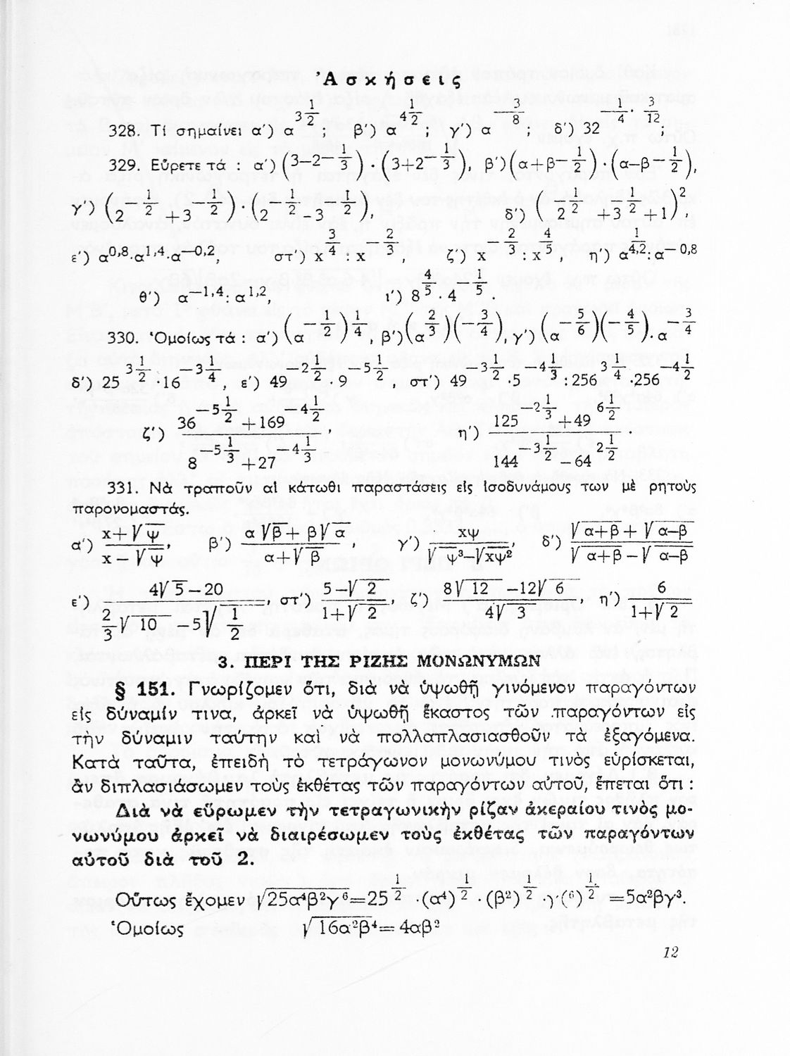 Άλγεβρα Δ΄ Γυμνασίου   [1969, 11η Έκδοση]