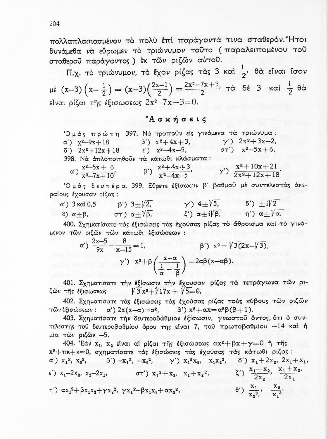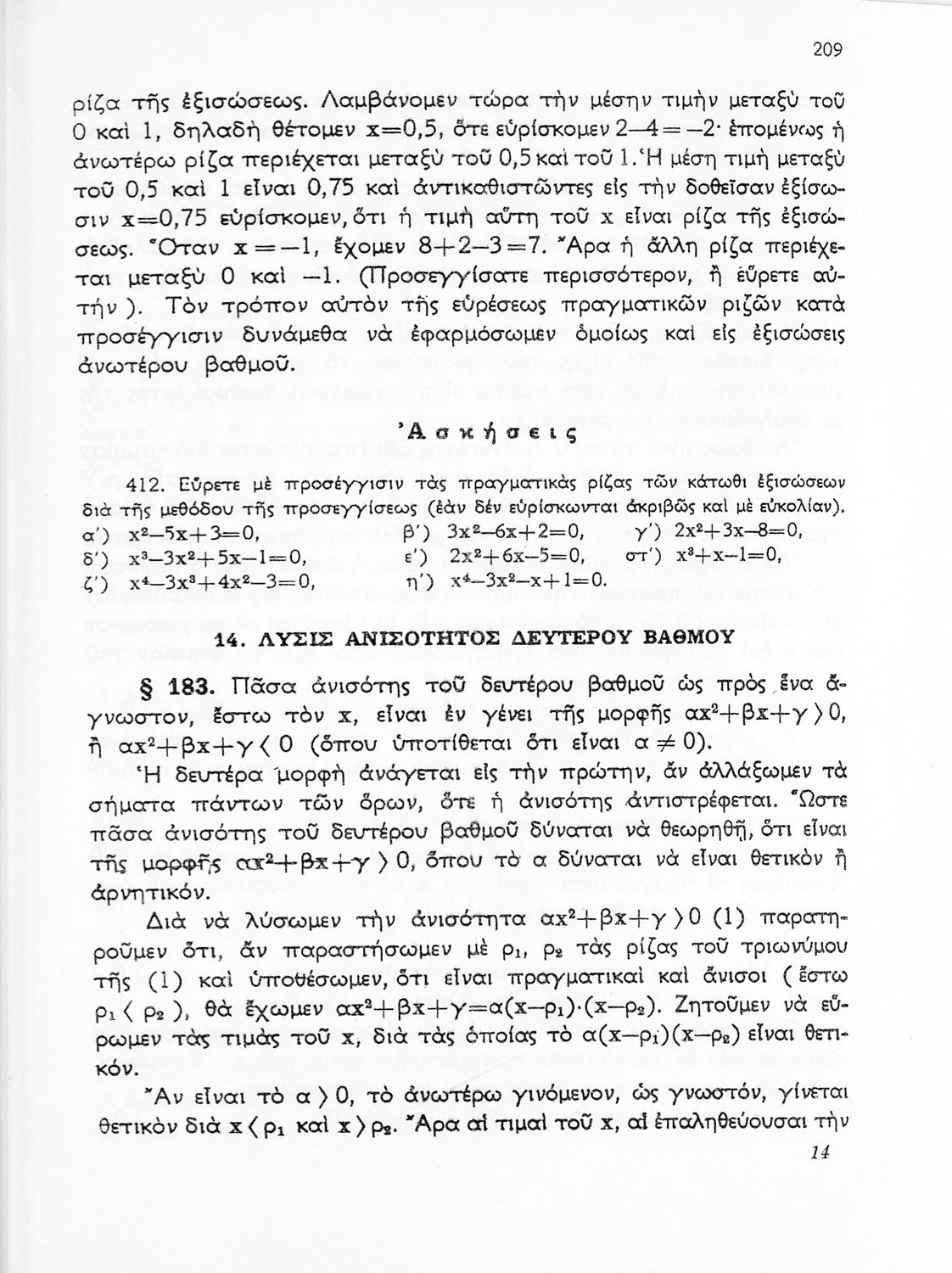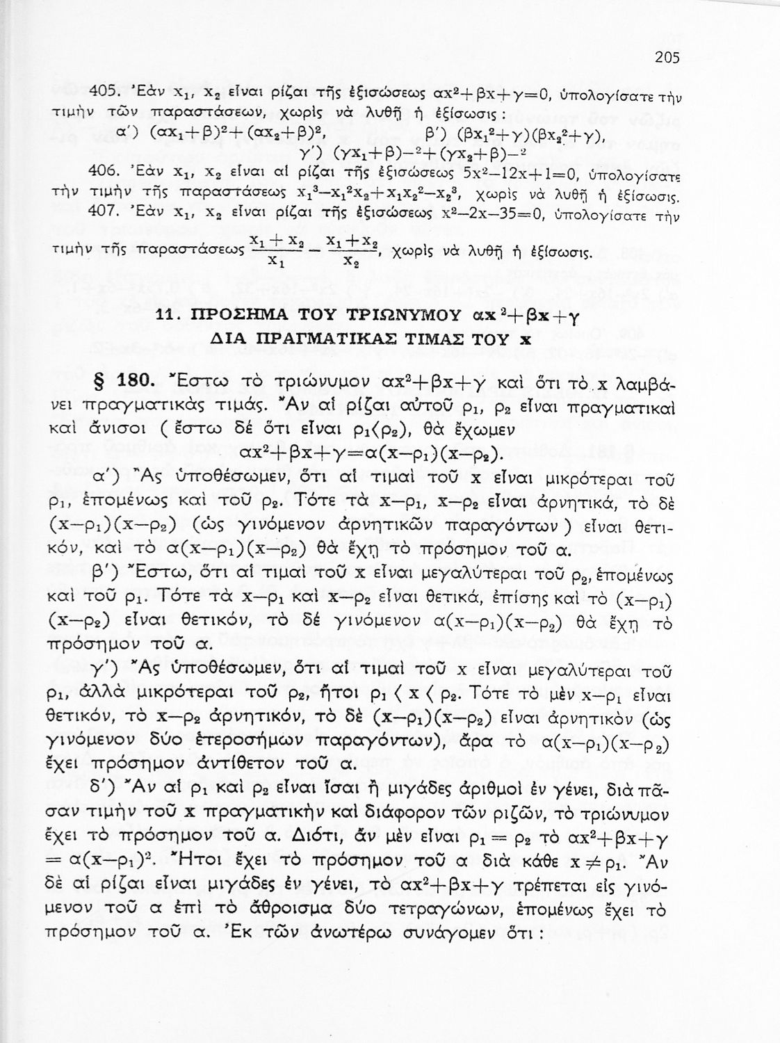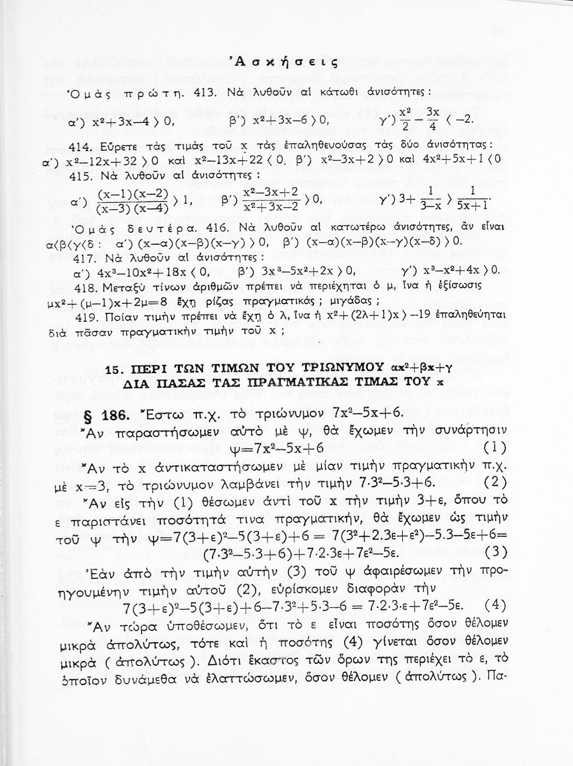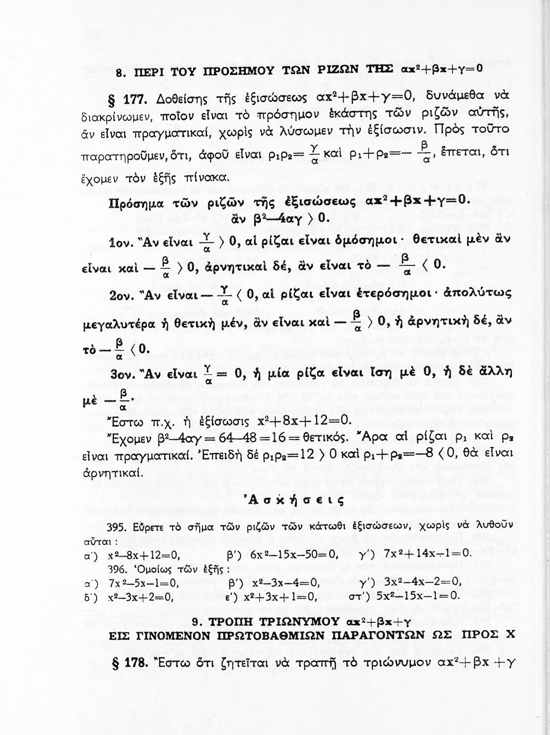 Άλγεβρα Δ΄ Γυμνασίου   [1969, 11η Έκδοση]