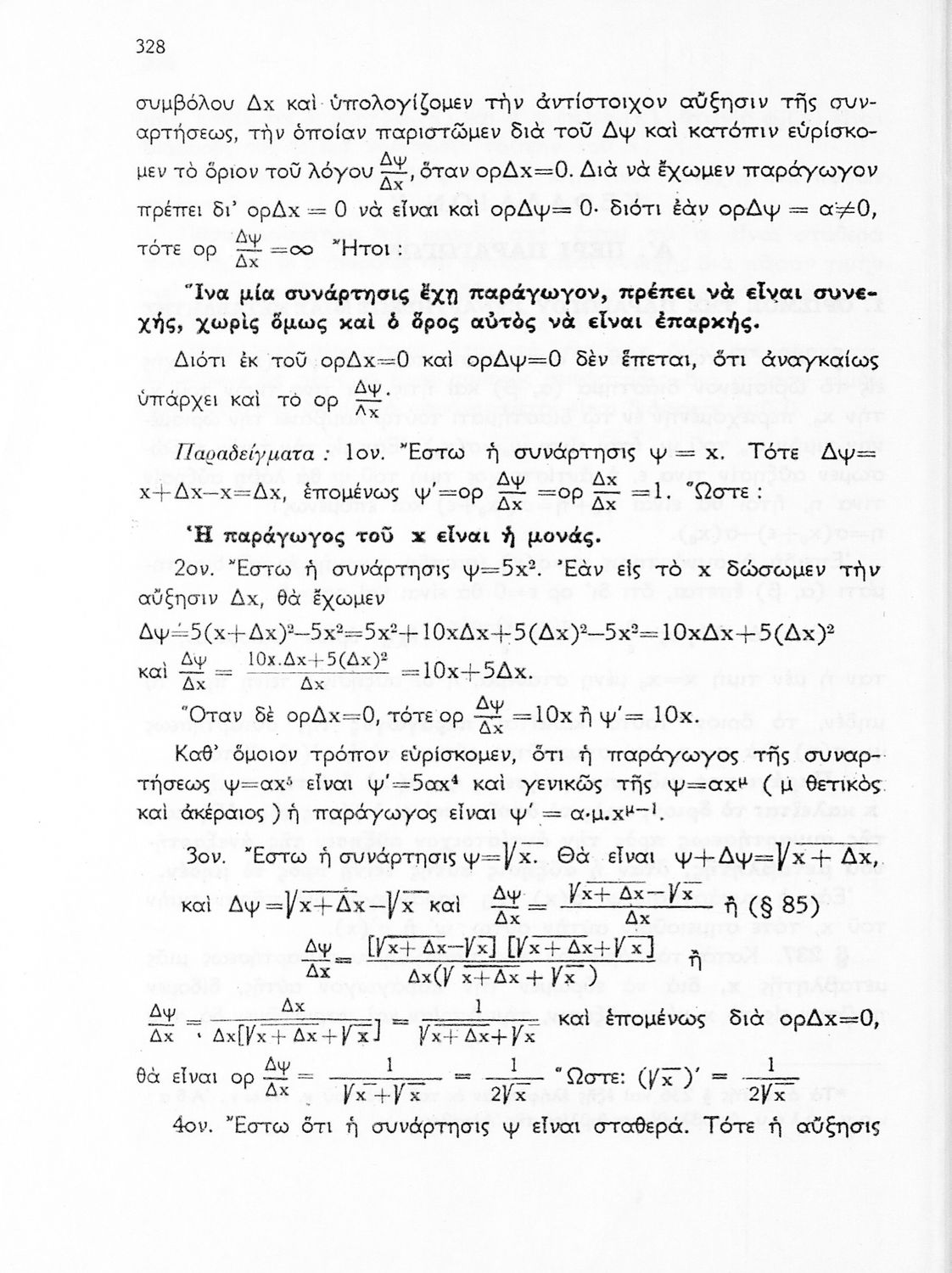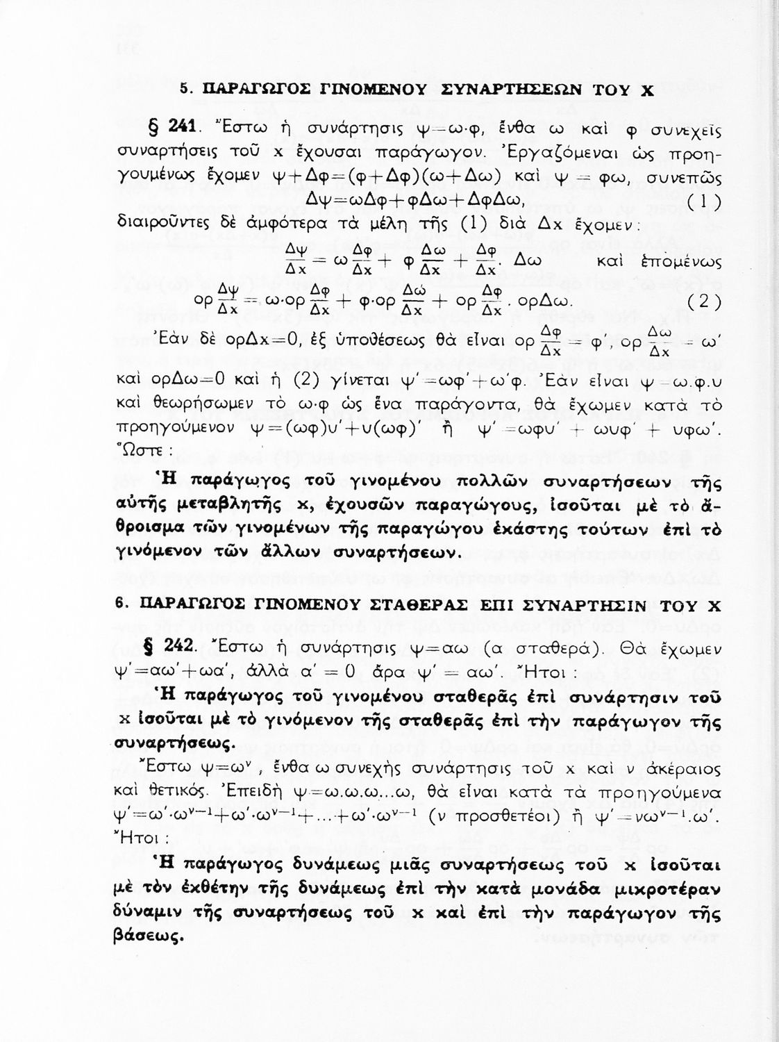 Σχολικό εγχειρίδιο Άλγεβρας Δ΄ Γυμνασίου που εστιάζει στις ιδιότητες των αριθμών, στις εξισώσεις, στους λογάριθμους και στις παραγώγους. Ο συγγραφέας ήταν καθηγητής στο Πανεπιστήμιο. Φέρει το σύμβολο της ...
