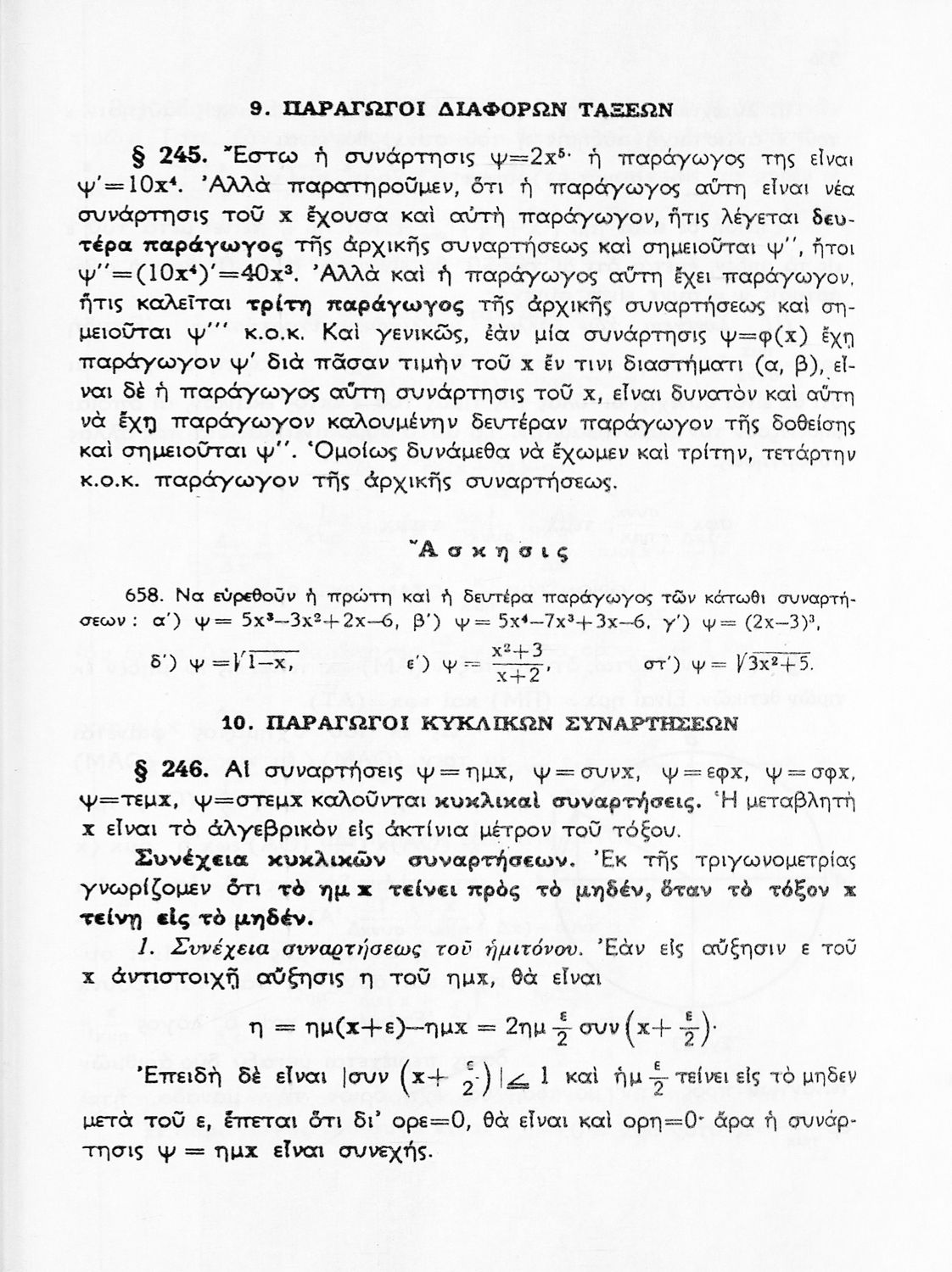 Σχολικό εγχειρίδιο Μαθηματικών Γ΄ Λυκείου που είναι χωρισμένο σε θεωρήματα, παραδείγματα και ασκήσεις και περιλαμβάνει στοιχεία Ανώτερης Άλγεβρας και Μαθηματικής Ανάλυσης.