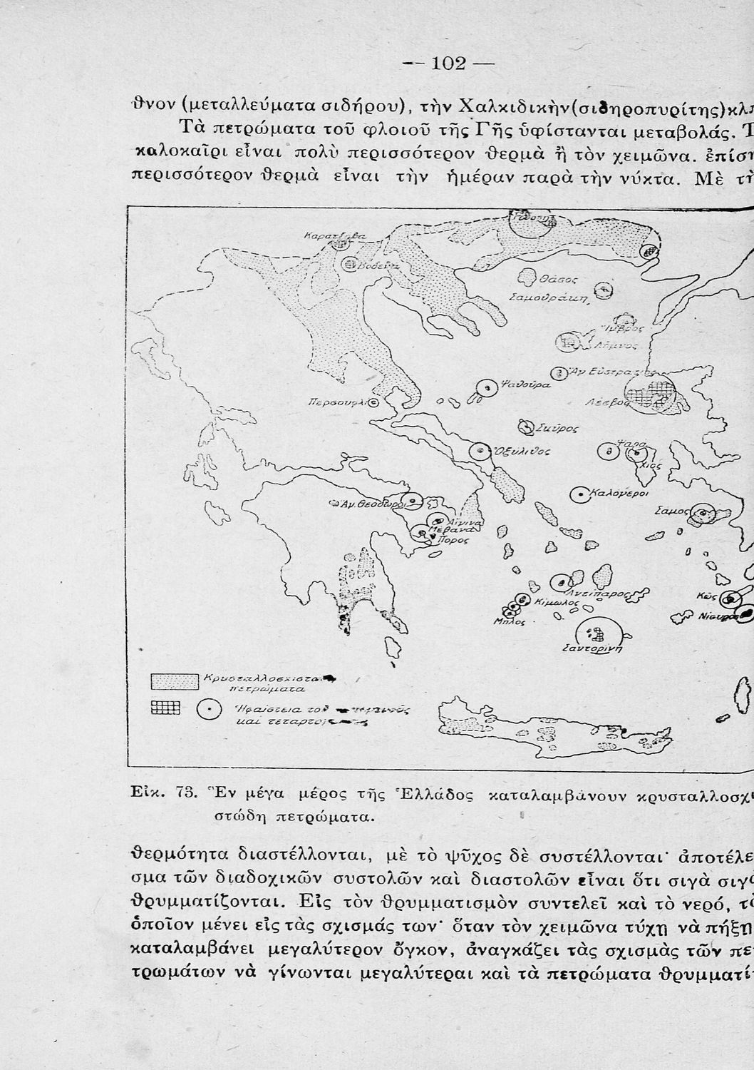 Σχολικό εγχειρίδιο Γεωγραφίας Δ' Γυμνασίου που περιλαμβάνει στοιχεία φυσικής και μαθηματικής γεωγραφίας και γεωλογίας.